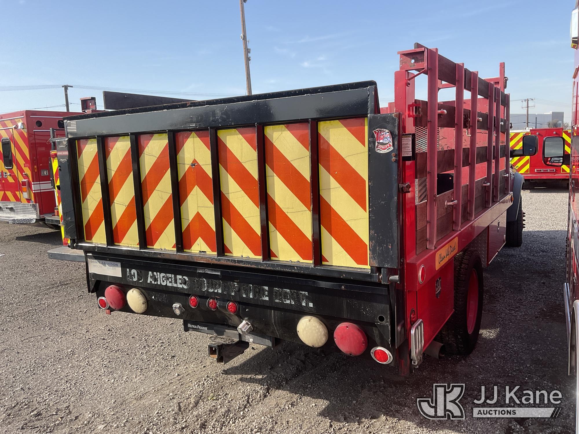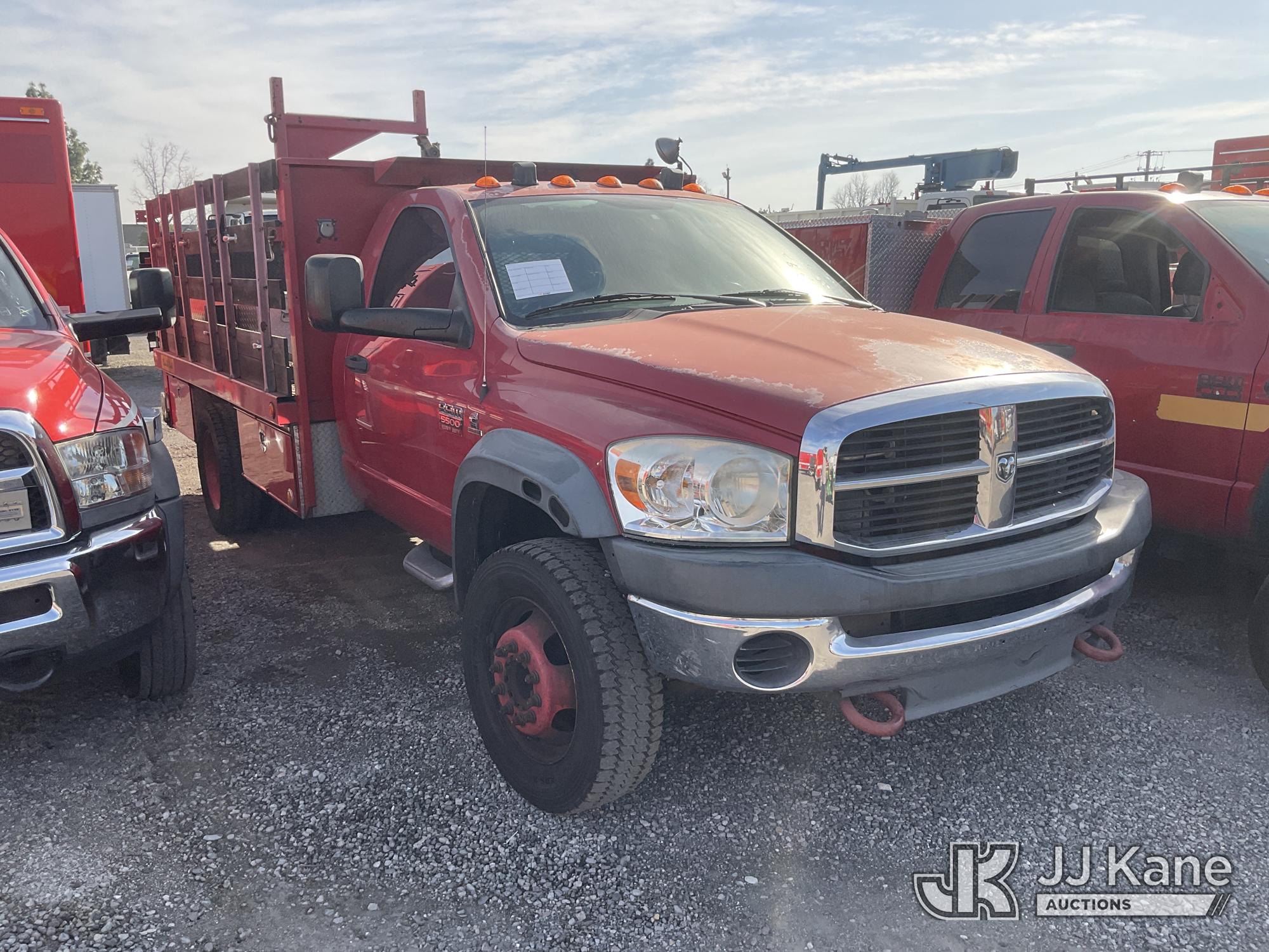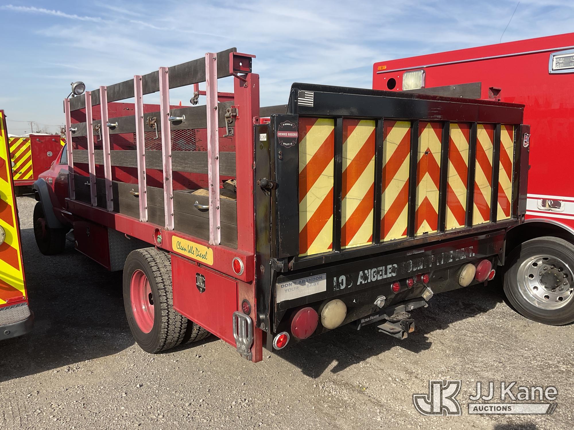 2009 Dodge Ram 5500 Stake Truck, 6.7L Turbo Diesel Auto, A/C, with 12FT Stake Bed, Liftgate, (194,780 miles) (Runs & Moves) (Bad Charging System, Engine Light On) (Bidding Restricted to Licensed Vehicle Dealers Only), Subject to CARB Regs,CARB non Compliant,Cannot Operate on CA Roads/Highways until Compliant This is a Titled Item*