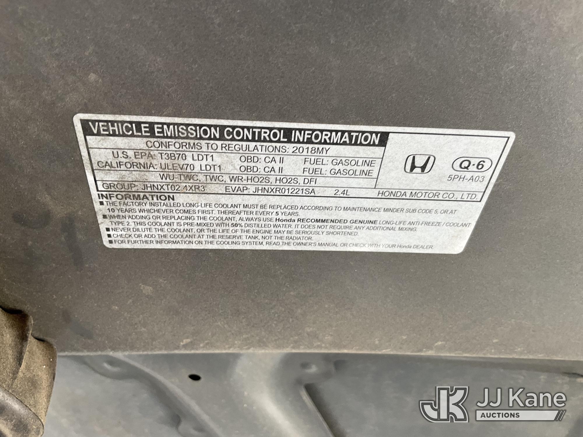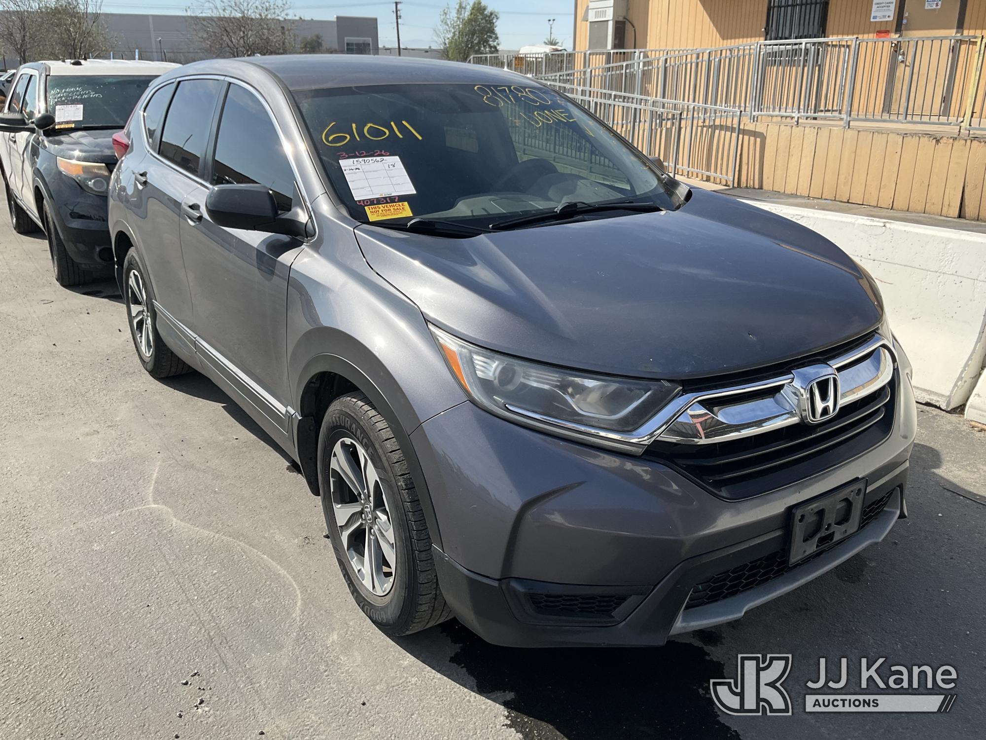 2018 Honda CR-V LX 2WD 4-Door Sport Utility Vehicle, s/n 2HKRW5H35JH407317, 2.4L L4 DOHC 16V FWD, GAS, Continuously Variable Transmission, A/C, (144,817 miles) (Runs & Moves)(Vehicle previously used with a 'cold plate' or protected record registration. Due to the prior status, VIN may not appear in NMVTIS, which could affect DMV title/registration processing. Buyer acknowledges and accepts this) This is a Titled Item*