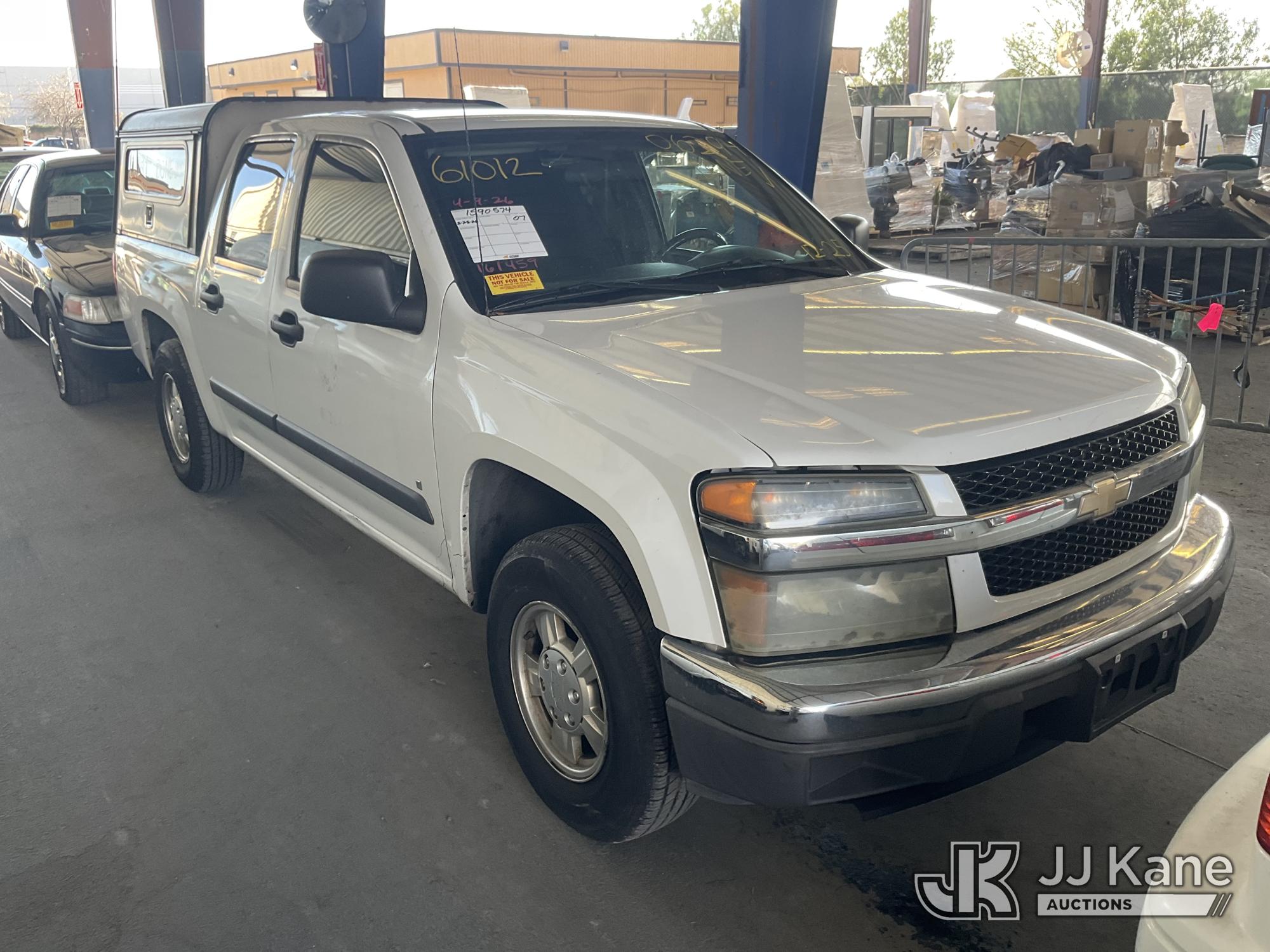2007 Chevrolet Colorado Crew-Cab Pickup Truck, 6-cyl gas, 4-Speed Automatic, A/C, with Camper Shell, (144,091 miles) (Runs & Moves) (Missing Catalytic Converter) (Bidding Restricted to Licensed Vehicle Dealers Only), This is a Titled Item*
