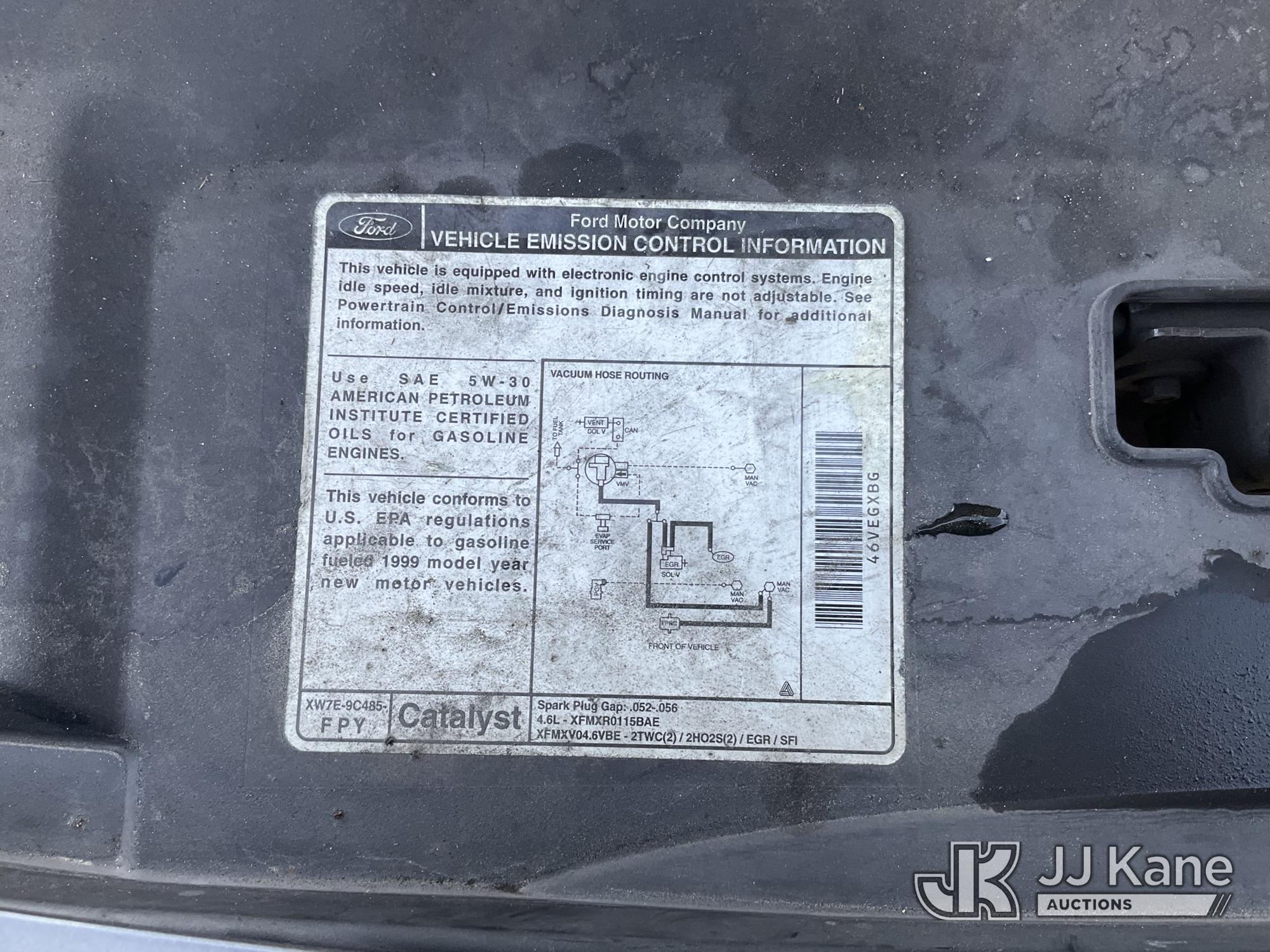 1999 Ford Crown Victoria Police Interceptor 4-Door Sedan, 4.6L V8 SOHC 16V RWD, GAS, 4-Speed Automatic, A/C, (Exempt from Odometer Disclosure - Reads 153,779 miles) (Runs & Moves, Engine Light On, Battery Light On, Missing Catalytic Converter, Interior Stripped Of Parts)(Vehicle previously used with a 'cold plate' or protected record registration. Due to the prior status, VIN may not appear in NMVTIS, which could affect DMV title/registration processing. Buyer acknowledges and accepts this) (Bidding Restricted to Licensed Vehicle Dealers Only), This is a Titled Item*
