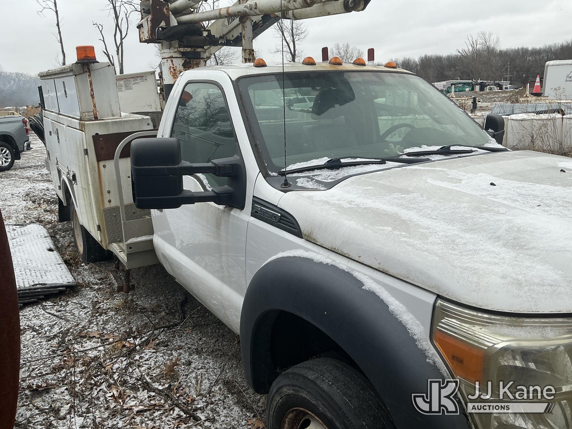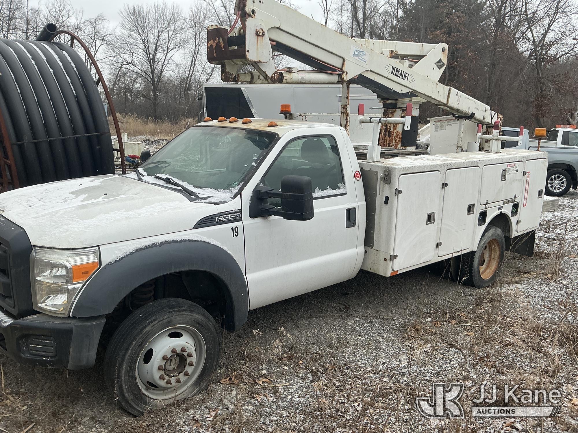Versalift SST40EIH-01, 45 ft, Articulating & Telescopic Bucket Truck with single-man bucket, rear mounted on 2013 Ford F-550 Regular Cab DRW 4WD Service Truck, 6.7L V8 OHV 16V DIESEL, a, A/C, True Mileage Unknown (Not Running, Condition Unknown, Bucket Damaged) This is a Titled Item*