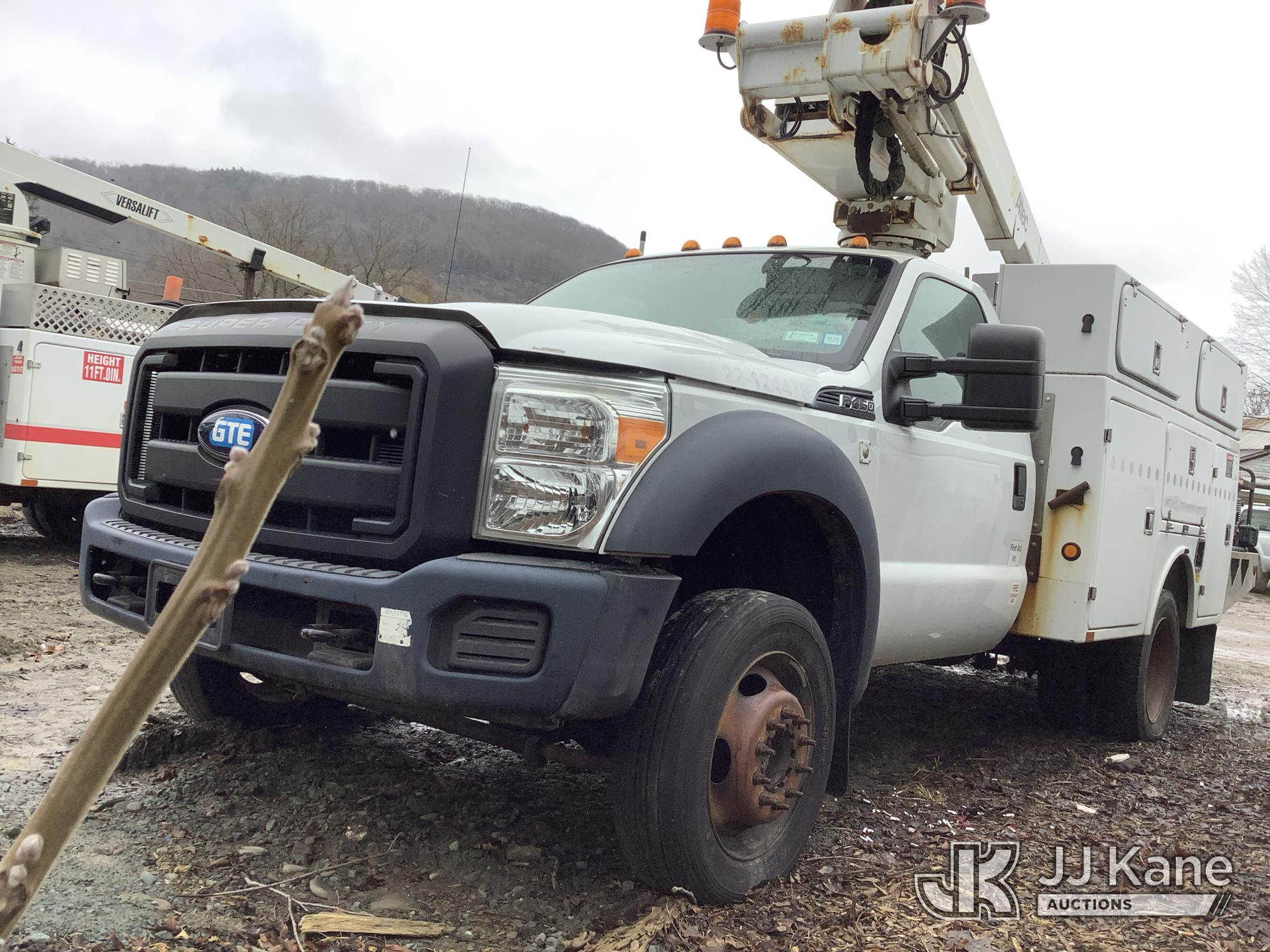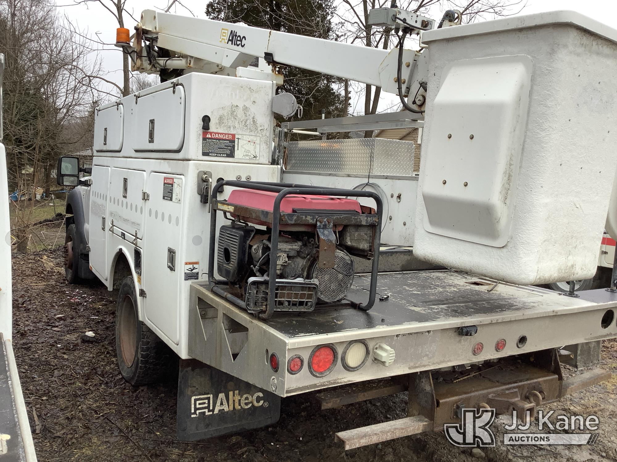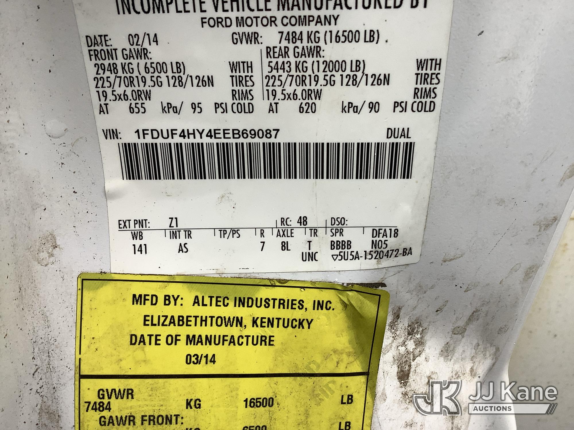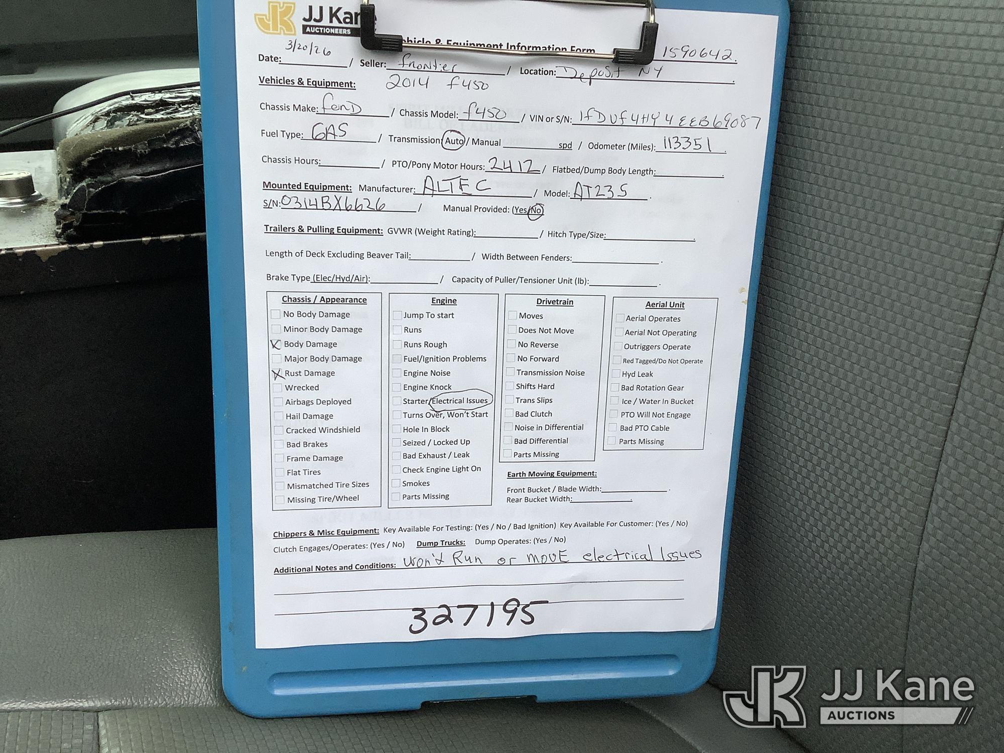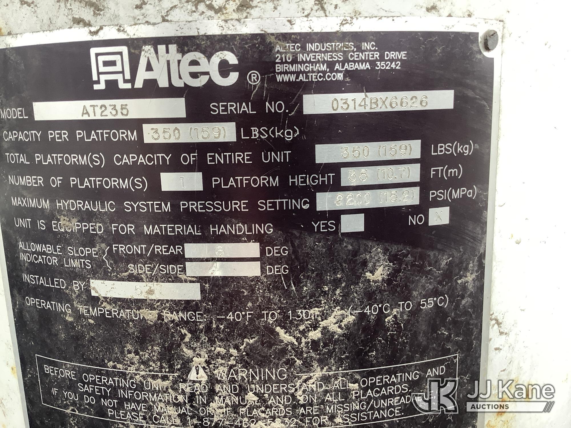 Altec AT235, 40 ft, Articulating & Telescopic Bucket Truck s/n 0314BX6626, with single-man bucket, mounted behind cab on 2014 Ford F-450 SD Regular Cab DRW 4WD 6.8L V10 SOHC 30V 4WD, GAS, A/C, (113,351 miles) (Not Running, Condition Unknown, Check Engine Light On, Electrical Issues, Body Damage) This is a Titled Item*
