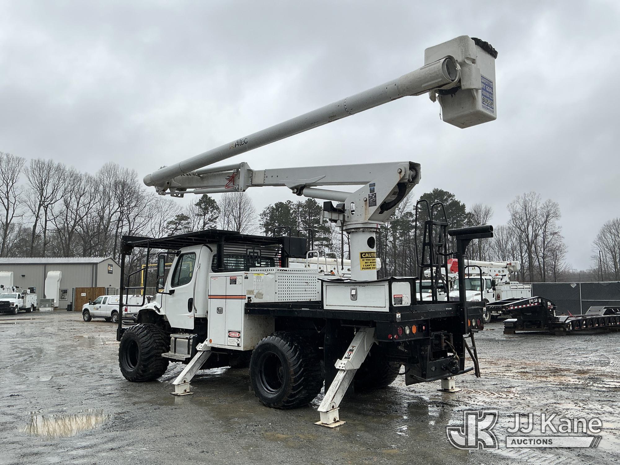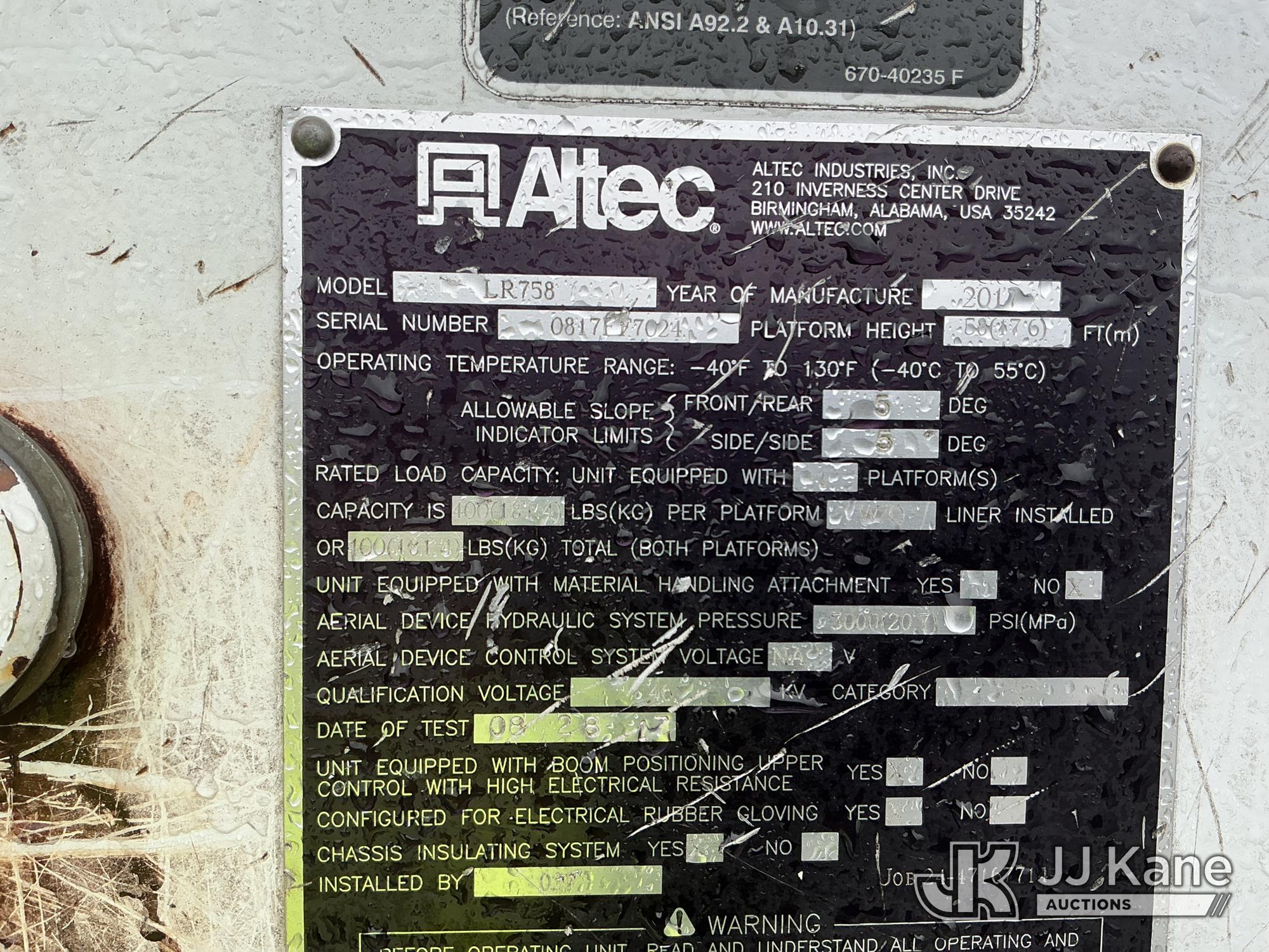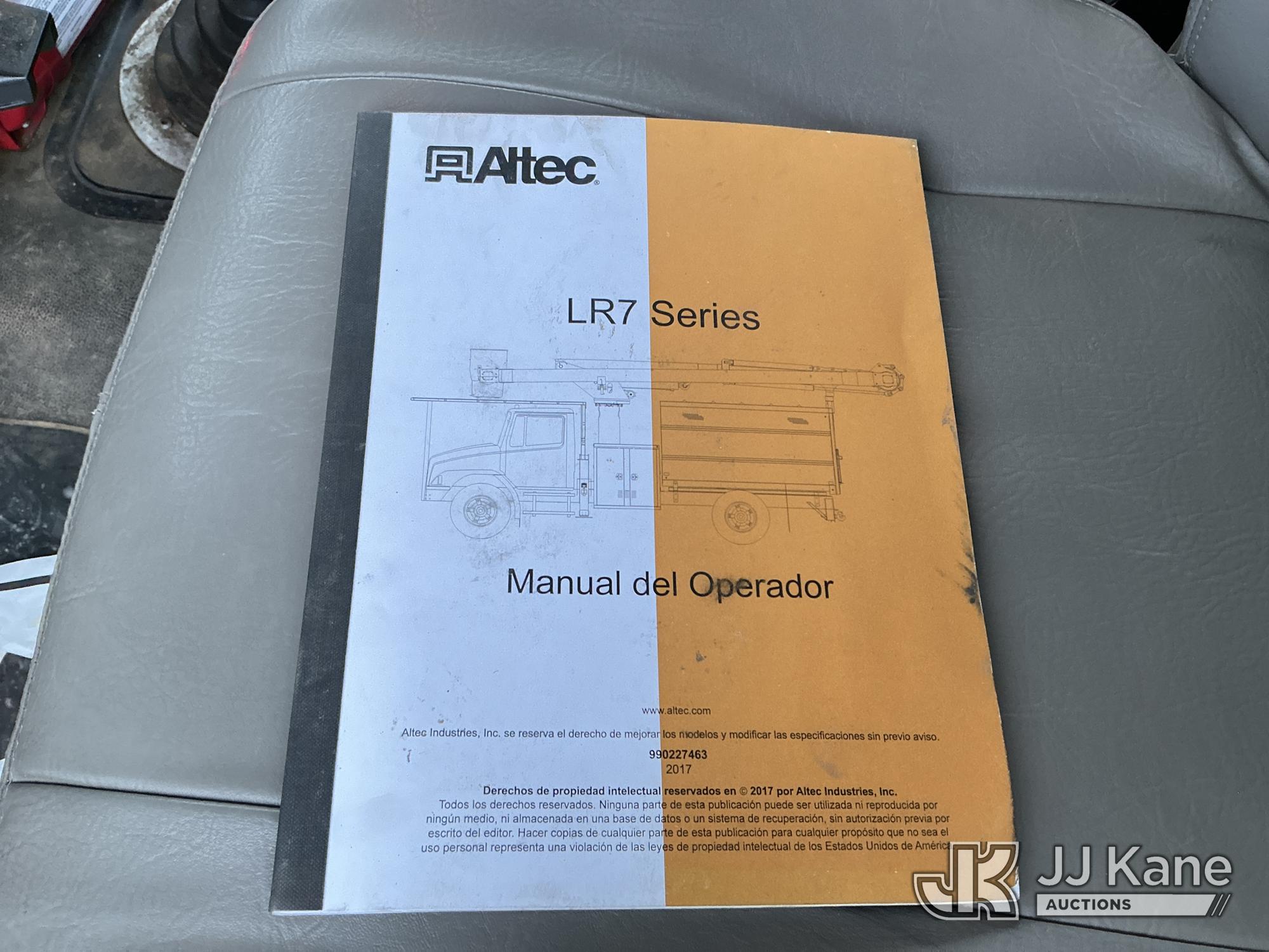Altec LR758RM, 63 ft, Articulating & Telescopic Bucket Truck s/n 0817FF7024, with single-man bucket, 4 hydraulic outriggers, rear mounted on 2018 Freightliner M2 Flatbed Truck, Cummins 6.7L Diesel 6-spd, A/C, with front & rear winch, 9 ft 7 in flatbed, (44,571 miles) (Runs, Moves & Upper Operates) (Jump To Star, Engine Light On, Engine Stop Light Light On) (Seller States: Needs New DEF System) This is a Titled Item*