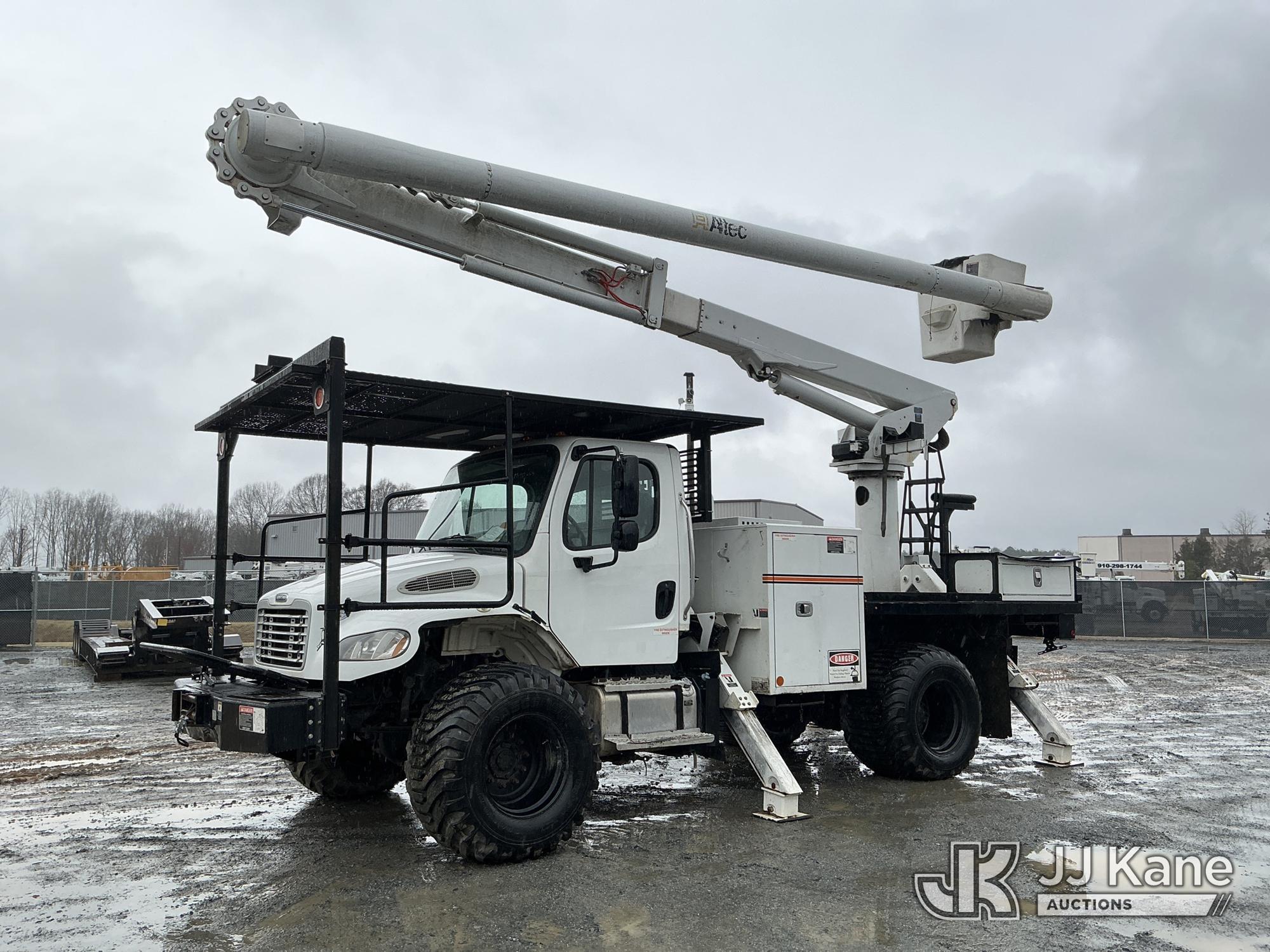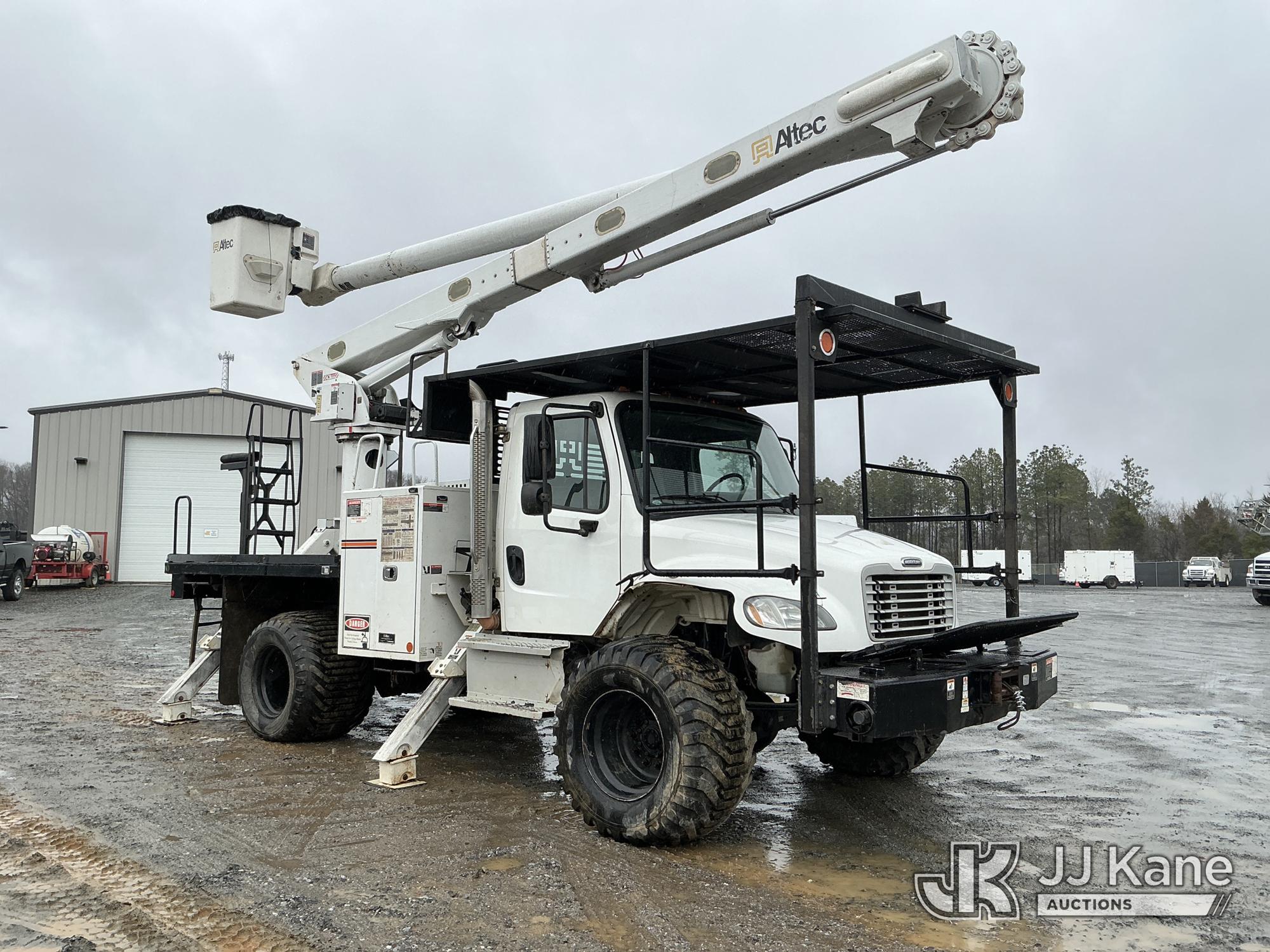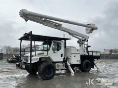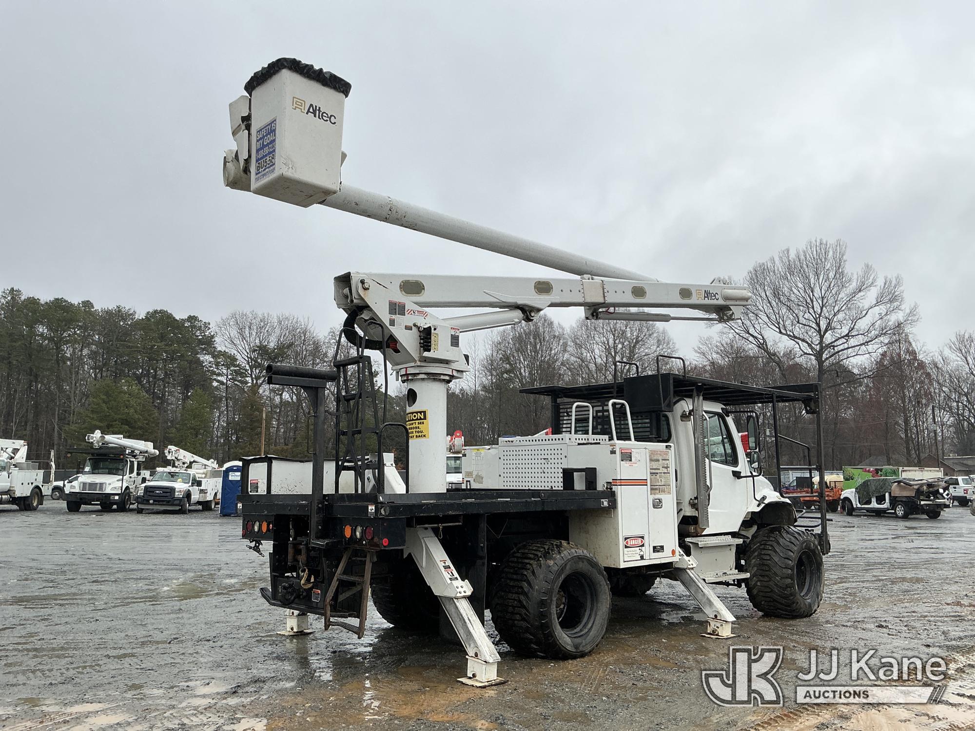 Altec LR758RM, 63 ft, Articulating & Telescopic Bucket Truck s/n 0817FF7024, with single-man bucket, 4 hydraulic outriggers, rear mounted on 2018 Freightliner M2 Flatbed Truck, Cummins 6.7L Diesel 6-spd, A/C, with front & rear winch, 9 ft 7 in flatbed, (44,571 miles) (Runs, Moves & Upper Operates) (Jump To Star, Engine Light On, Engine Stop Light Light On) (Seller States: Needs New DEF System) This is a Titled Item*