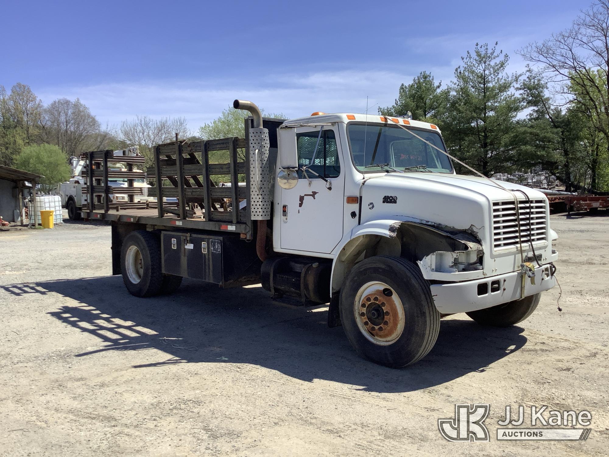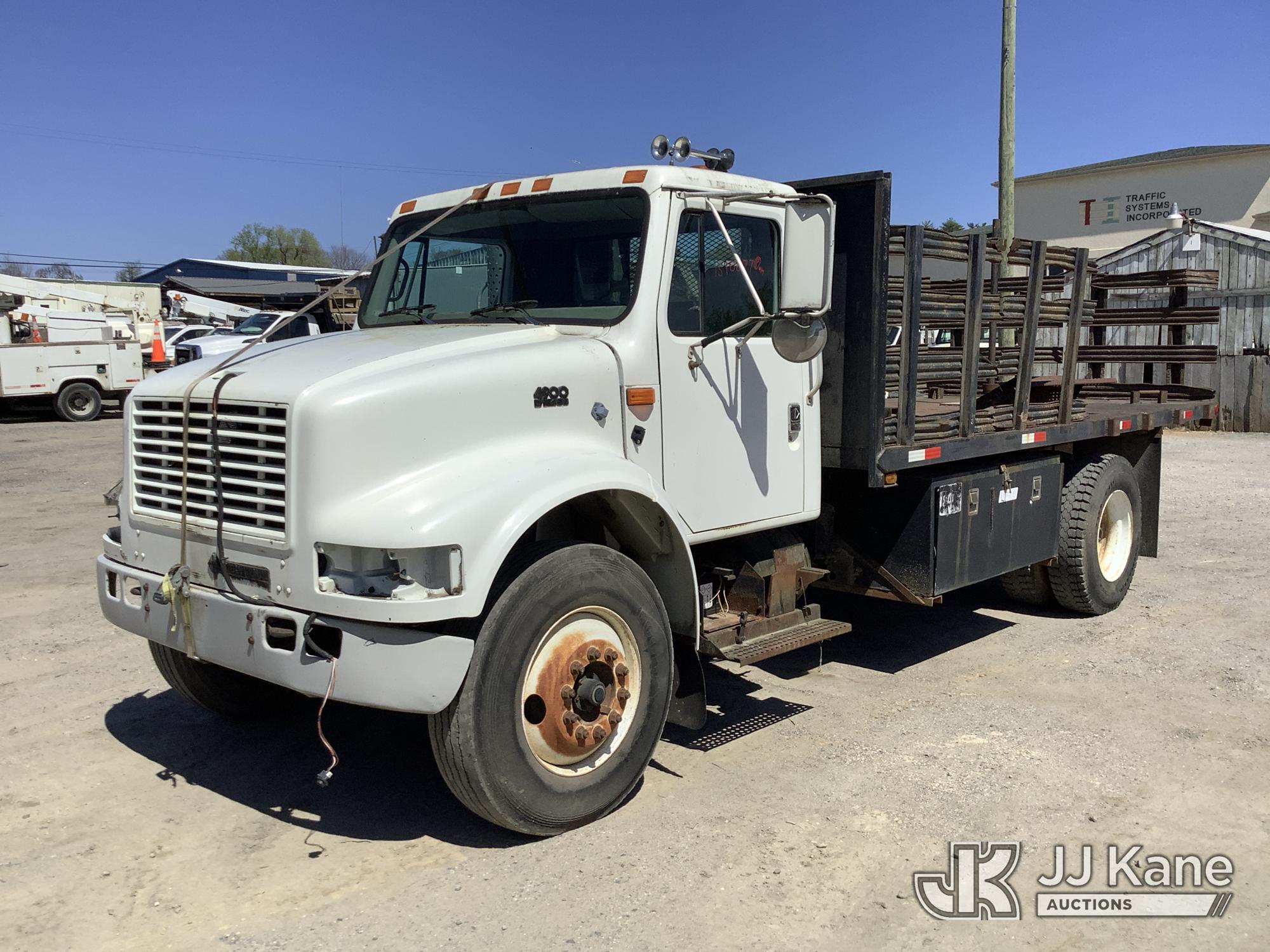 2000 International 4900 Flatbed/Stake Truck, 7.6L L6 Diesel, Auto, (Exempt from Odometer Disclosure - Reads 72,157 miles) (Runs & Moves, Body Has Multiple Issues) (Removal is by Appointment Only, Buyer MUST make a appointment prior to picking up, Buyer/Transporter Must have PAID IN FULL RELEASE. No onsite assistance available, Please Come prepared.) This is a Titled Item*