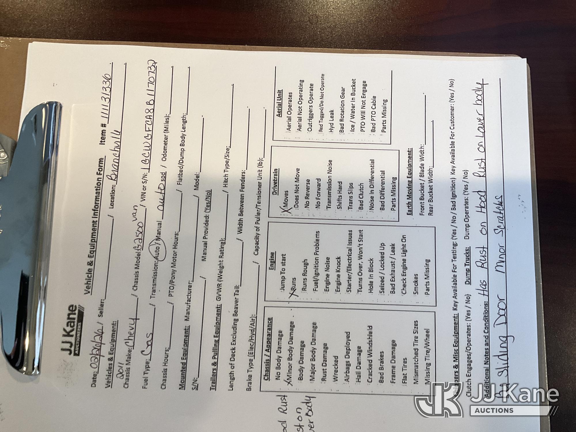 2011 Chevrolet Express G2500 Cargo Van, 8-cyl gas, Auto, A/C, (64,453 miles) (Runs & Moves) (Removal is by Appointment Only, Buyer MUST make a appointment prior to picking up, Buyer/Transporter Must have PAID IN FULL RELEASE. No onsite assistance available, Please Come prepared.) This is a Titled Item*