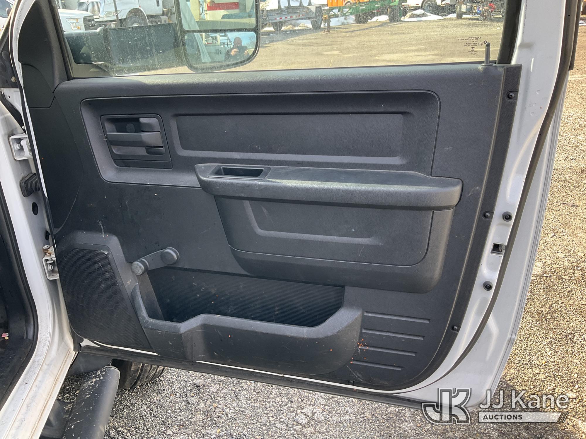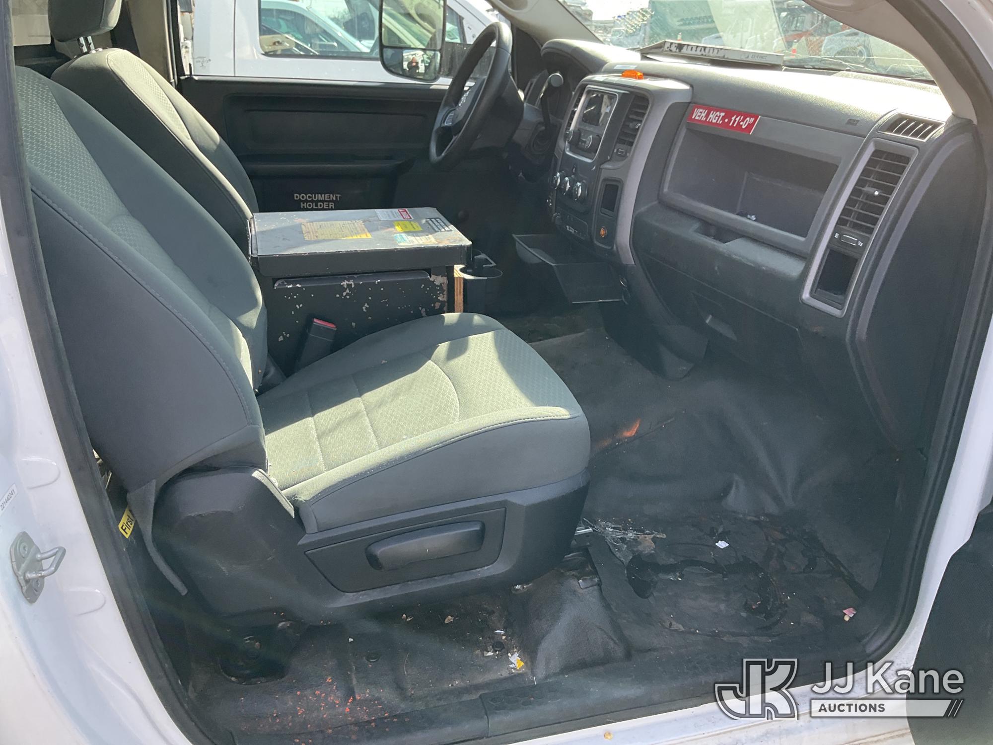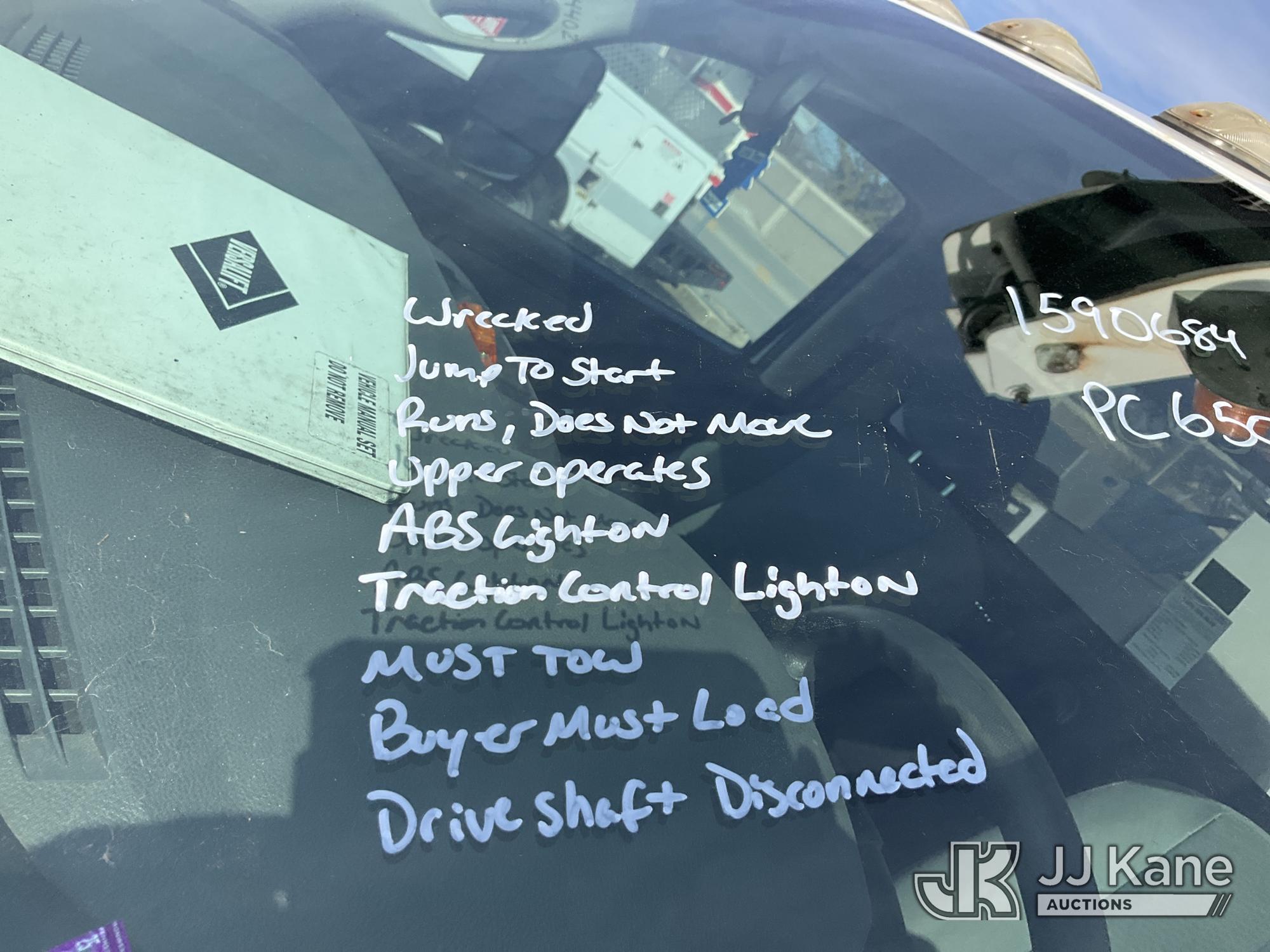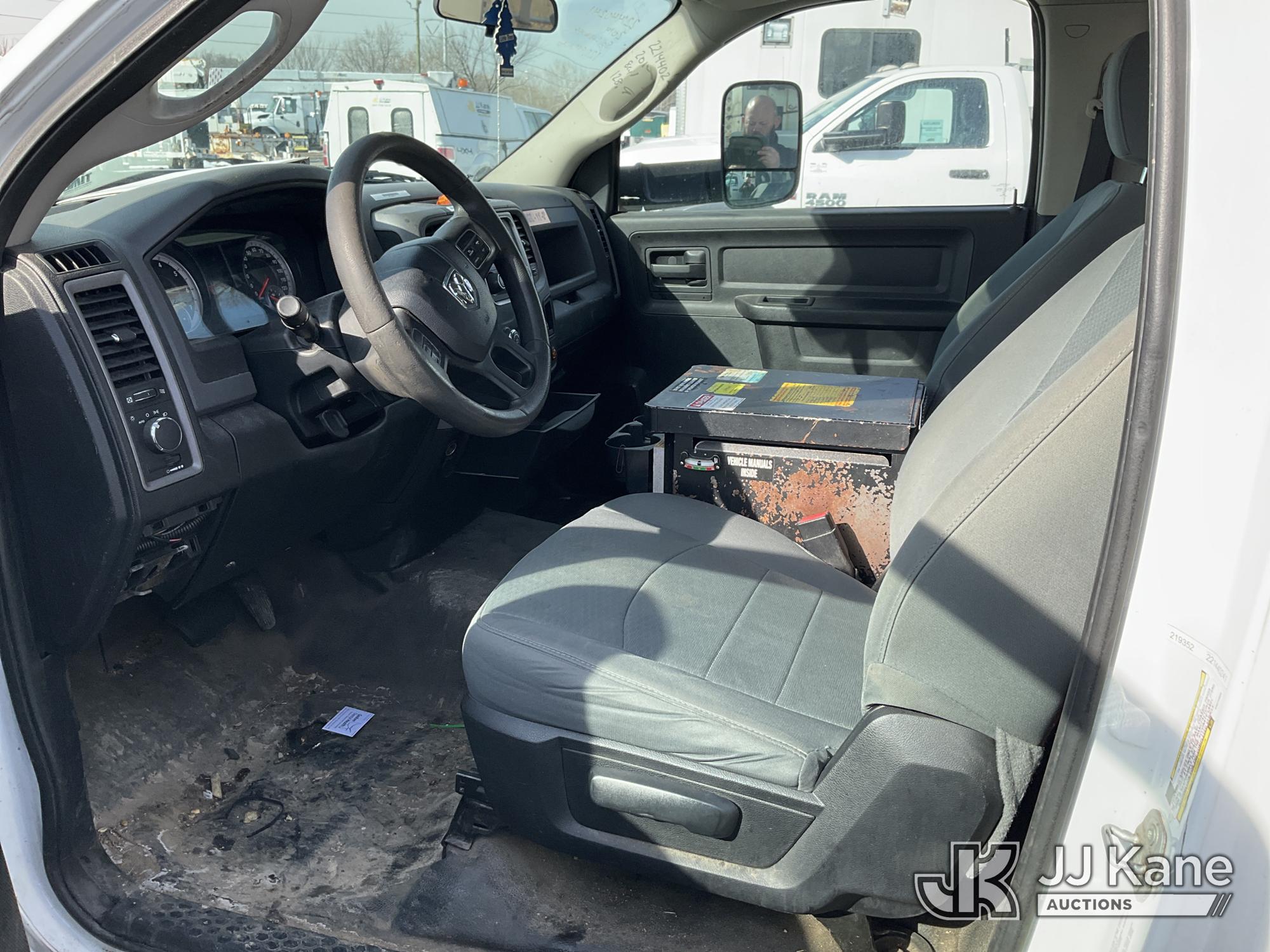 Versalift TEL29N03, 34 ft, Telescopic Non-Insulated Bucket Truck s/n AG140257, with single-man bucket, mounted behind cab on 2014 RAM 4500 Service Truck, 8-cyl gas, Auto, A/C, (128,996 miles) (Wrecked, Jump To Start, Runs, Does Not Move, Upper Operates, ABS Light On, Traction Control Light On, Must Tow, **Dealer Only** This item has been removed from service due to the listed safety repairs that were not completed. The safety items below must be completed by an approved upper OEM facility before the unit can return to service: UNIT WRECKED; REQUIRES MAJOR UNIT DAMAGE INSPECTION; COMPLETE ANY REQUIRED TESTING AND REPAIRS AFTER INSPECTIONS ARE COMPLETED. Buyer Must Load, Driveshaft Disconnected) (Bidding Restricted to Licensed Vehicle Dealers Only), This is a Titled Item*