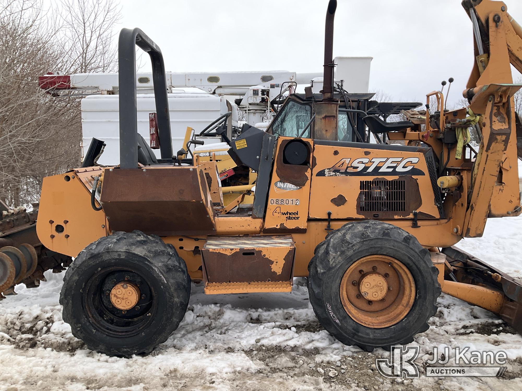 2005 Astec RT960 Rubber Tired Trencher, s/n RT960X45175, diesel, Hydrostatic, with trencher boom w/carbide teeth, backhoe attachment, backfill blade, 4 wheel steer & ROPS post, (Runs & Moves) (Starts W/ Jump, Seller States: Has Issues, Outriggers Won’t Stay Up, Conditions Unknown, Hours Unreadable) (Reads 2,537 hours)*