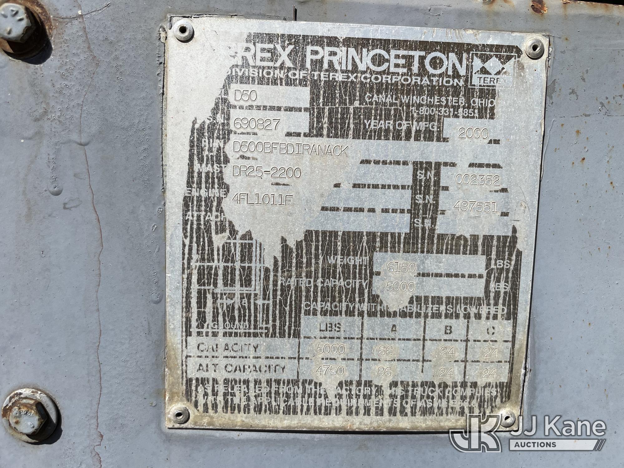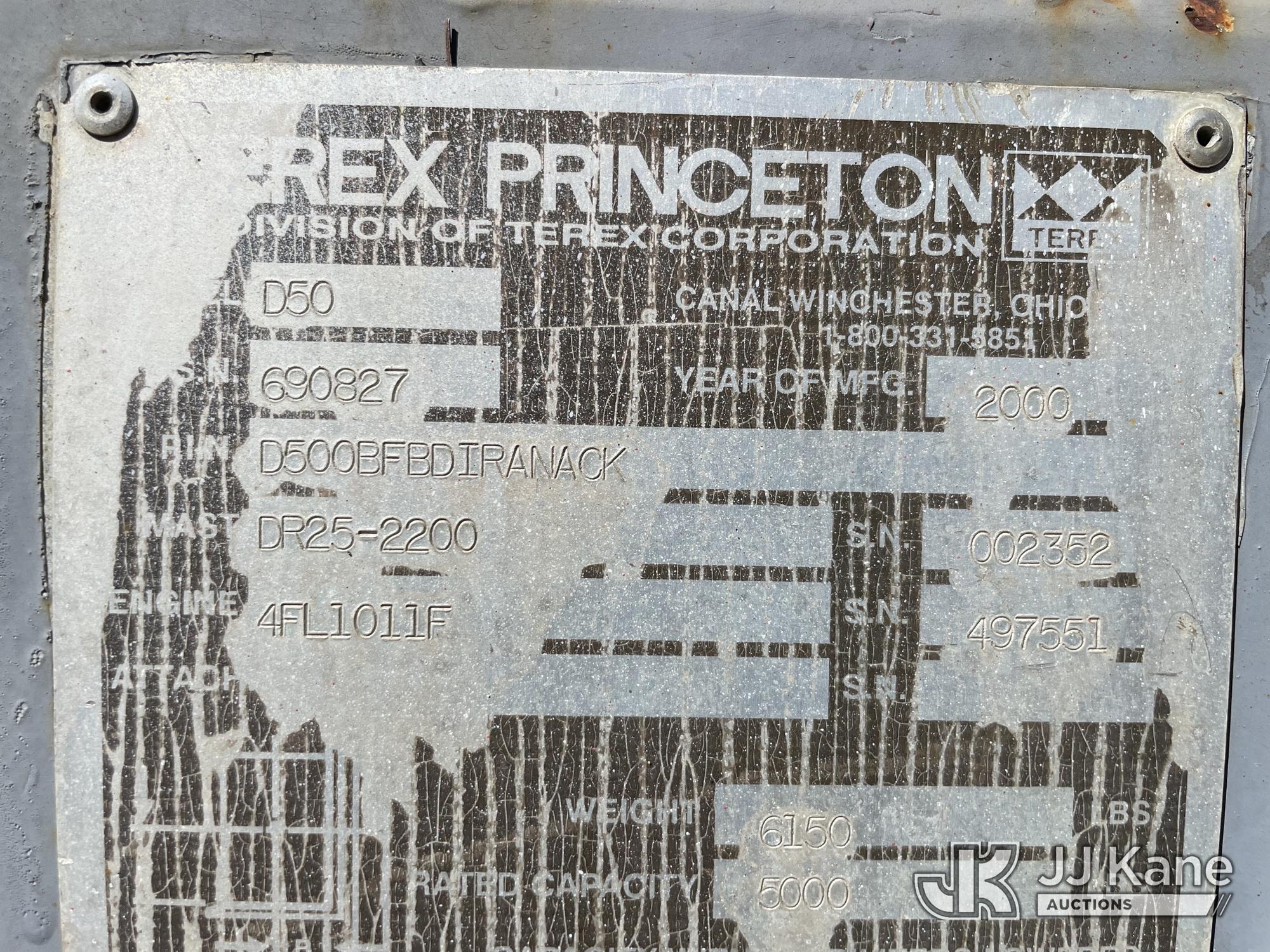 5,000 Lb 2000 Princeton D-50 Piggy Back Forklift, s/n 690827, Deutz diesel, Hydrostatic, with 5,000 lb. lift capacity, 120 in. 3-Stage Mast & ROPS, (Runs, Moves, and Operates. Rust on Body, Jump to Start.) (Reads 3,704 hours)*