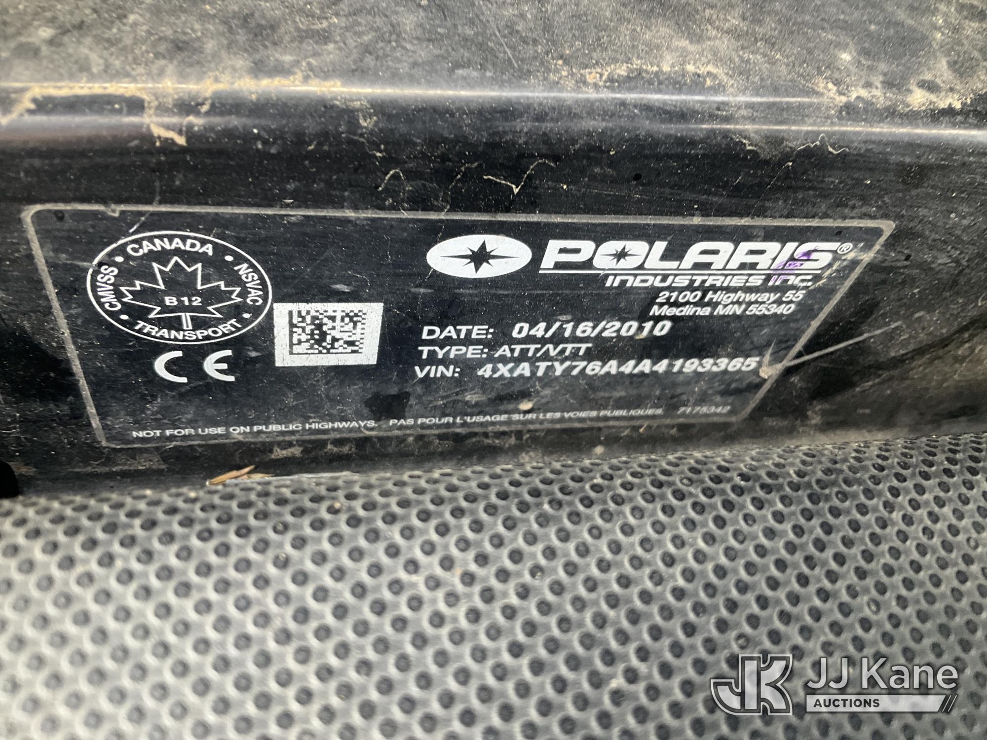 2010 Polaris Ranger XP All-Terrain Vehicle, s/n 4XATY76A4A4193365, 760cc gas, Auto, ((Non-Titled, Certificate of Origin)(Runs & Moves) (Seller States: Has a Hard Time Starting) (Reads 890 hours)*