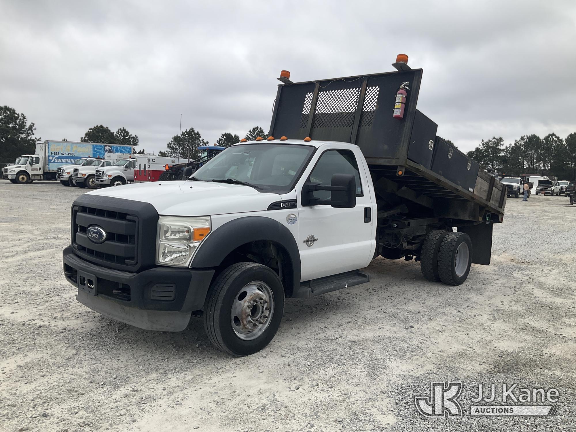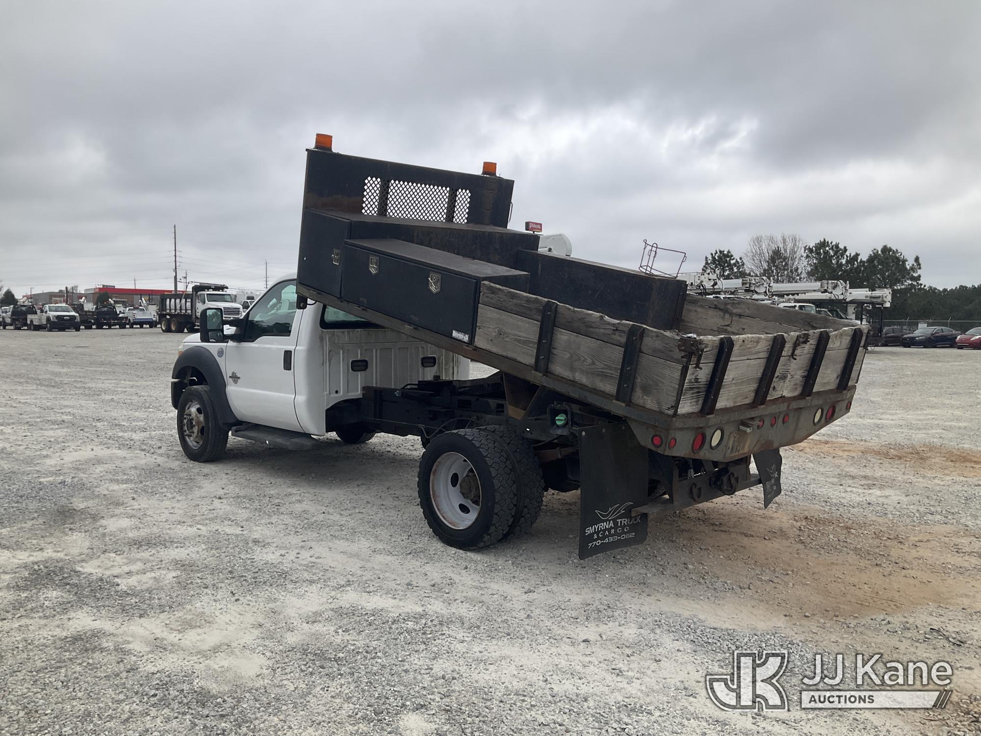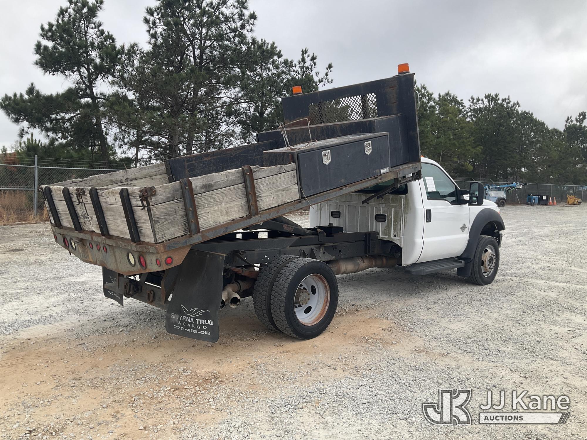 2013 Ford F-450 SD Flatbed/Dump Truck, 6.7L V8 OHV 16V DIESEL RWD, Auto, A/C, (127,224 miles) (Runs, Moves & Dump Operates) (Check Engine Light On) This is a Titled Item*