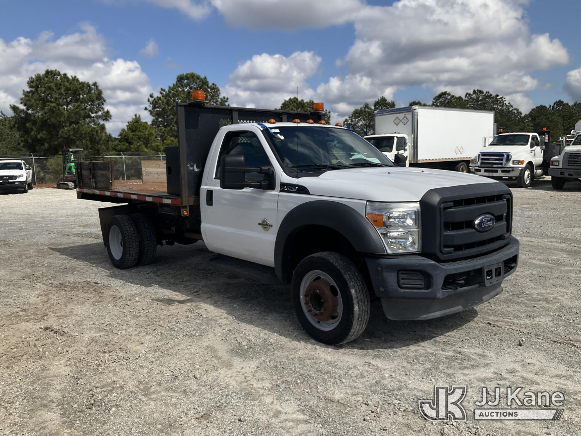2016 Ford F-450 SD Flatbed/Dump Truck, 6.7L V8 OHV 16V Diesel, RWD, Auto, A/C, (86,294 miles) (Runs, Moves & Dump Operates) (Runs Rough, Dies) This is a Titled Item*