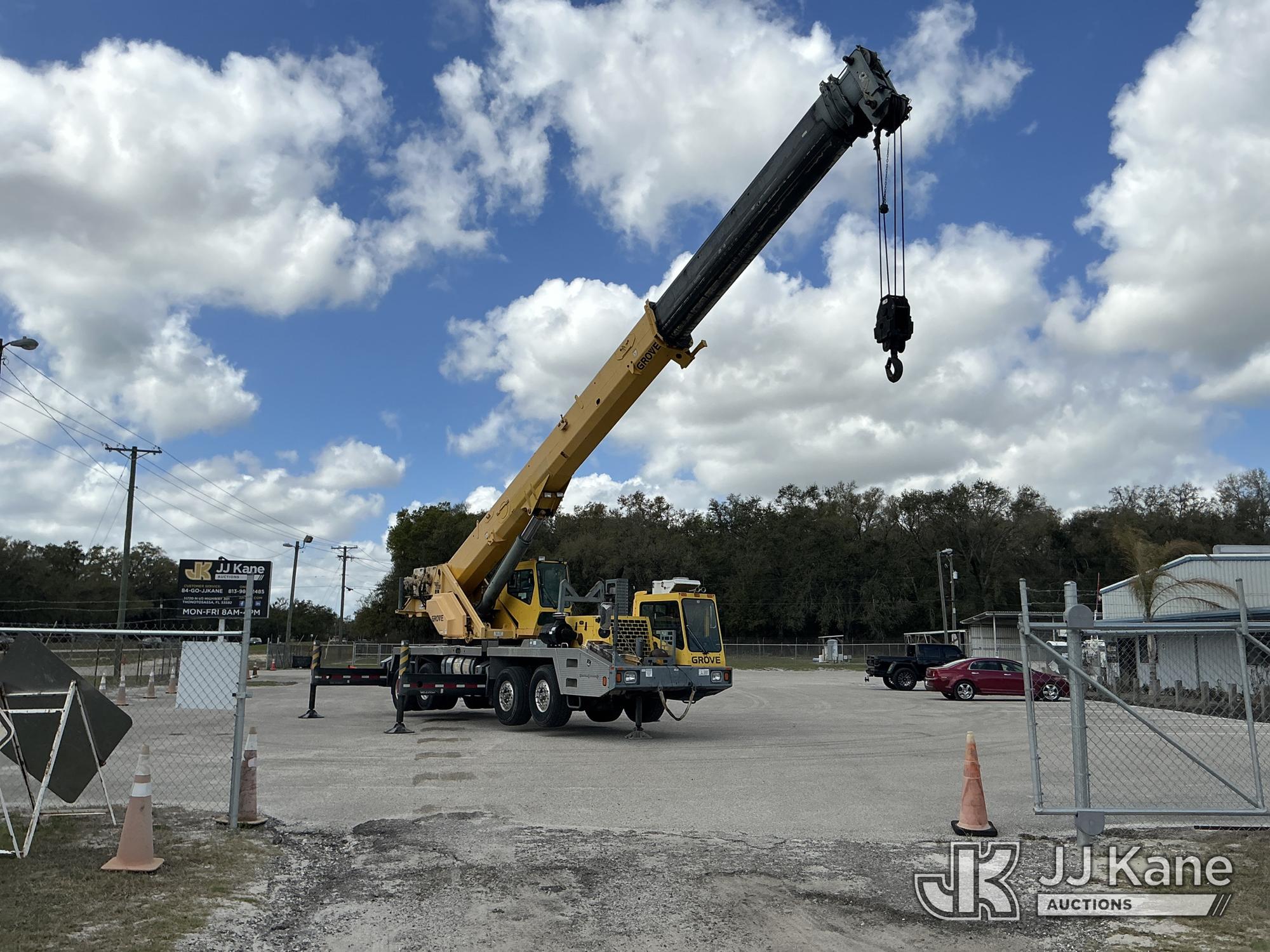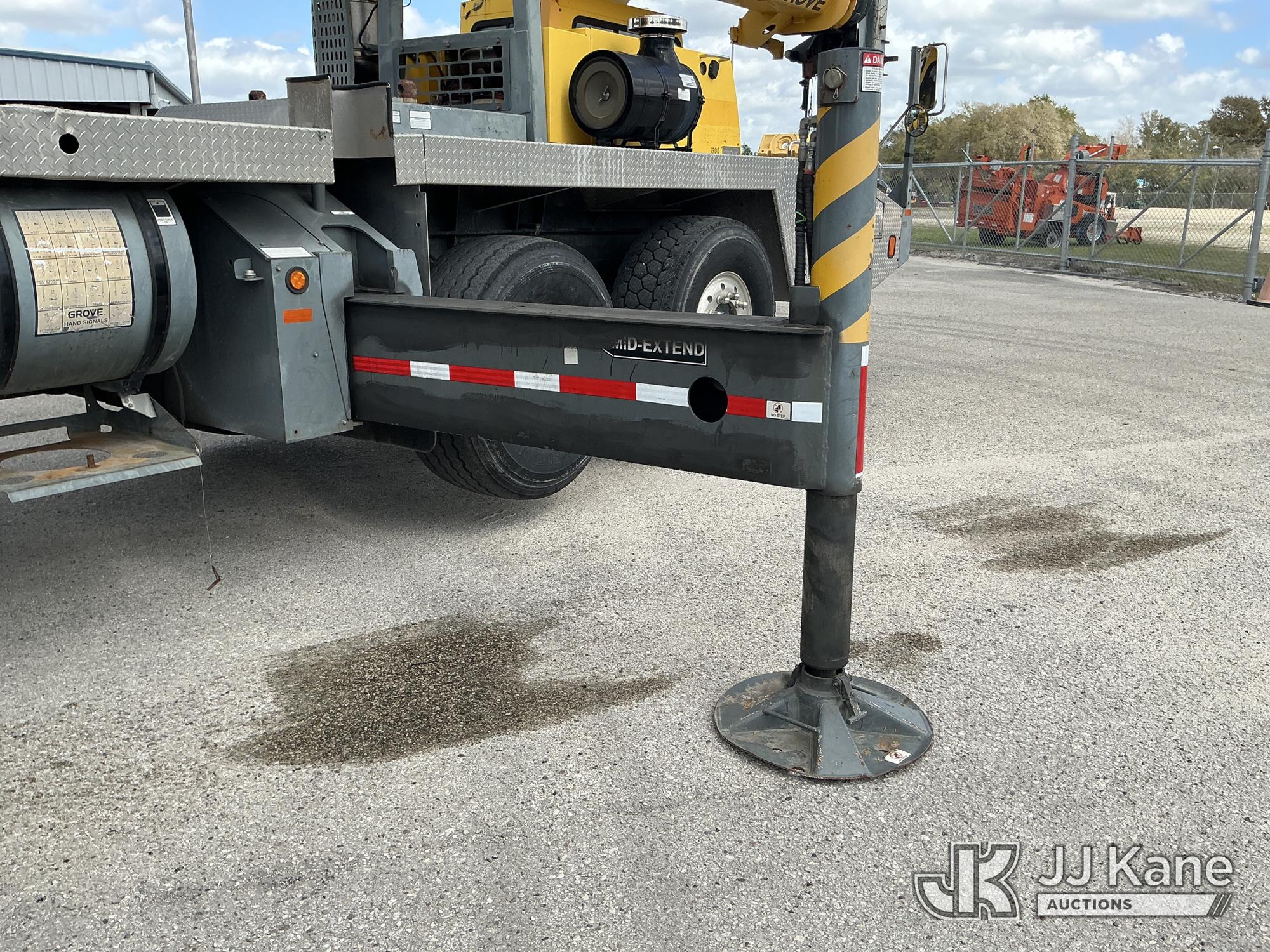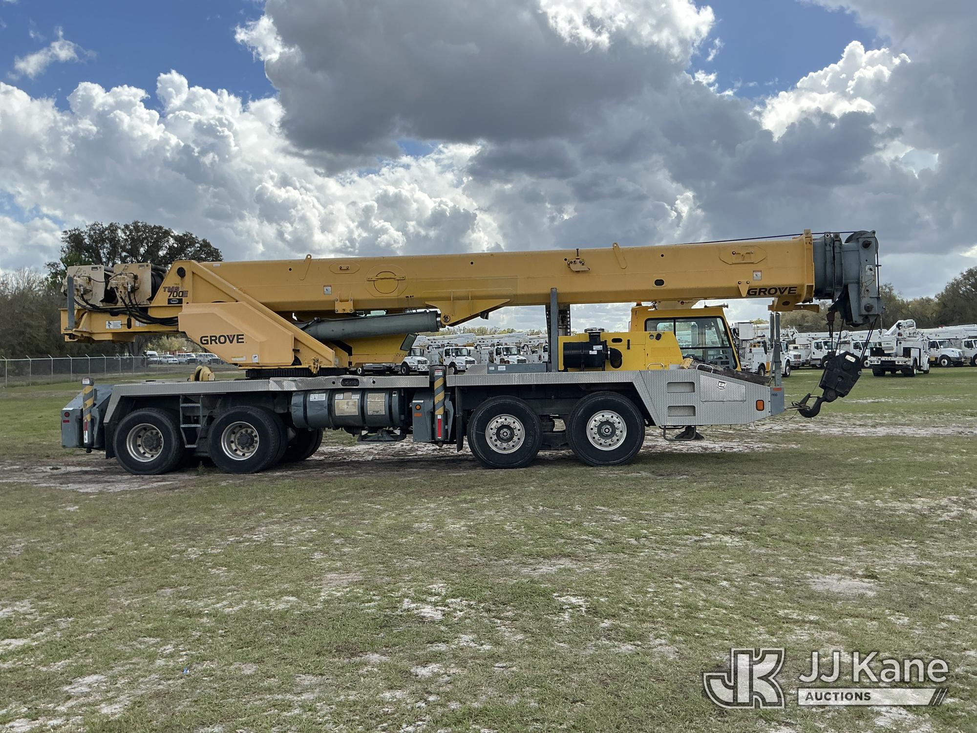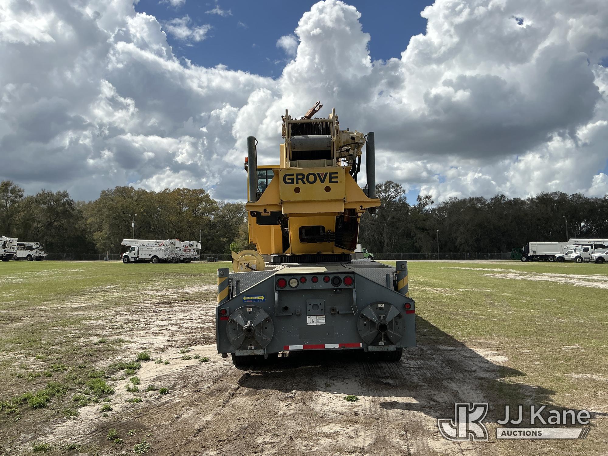 Grove TMS700E, 60-Ton Hydraulic Crane s/n 230030, with 36 ft. to 110 ft. 4 section main boom, 36 ft. to 56 ft. lattice jib, main heel winch, anti-two block system, 2 winches, aux boom head sheave block, 8.5 ton headache ball, 5 hyd outriggers & enclosed riding console, rear mounted on 2009 Grove 8460GE 8x4 Carrier, s/n 476S700E29S230030, Cummins diesel, Eaton/Fuller Auto Shift, A/C, with (3) 5.500 lbs. Crane Heavy Counterweight Package., (36,119 miles) (Runs, Moves & Operates)(FL Residents Purchasing Titled Items – tax, title & registration fees will be collected at the maximum rate of $400.00 under 25,999 and $800.00 for Over 26,000 and $250.00 trailers – Proof of insurance is mandatory; Out of State Residents Purchasing Title Items – tax will be collected based upon your state rate.) (Reads 5,544 hours) This is a Titled Item*