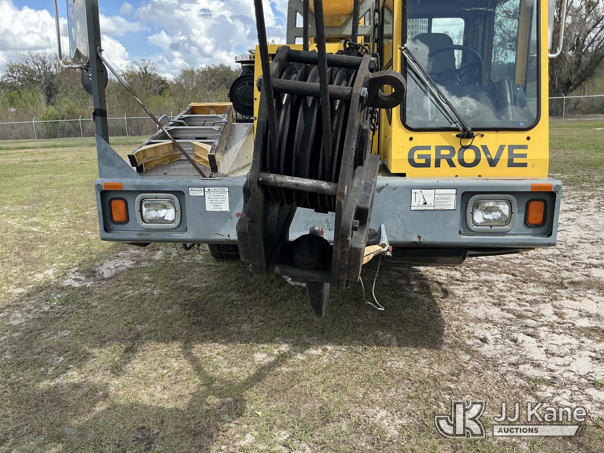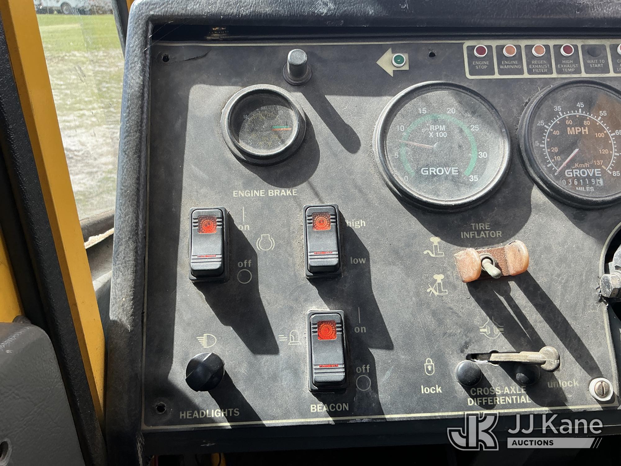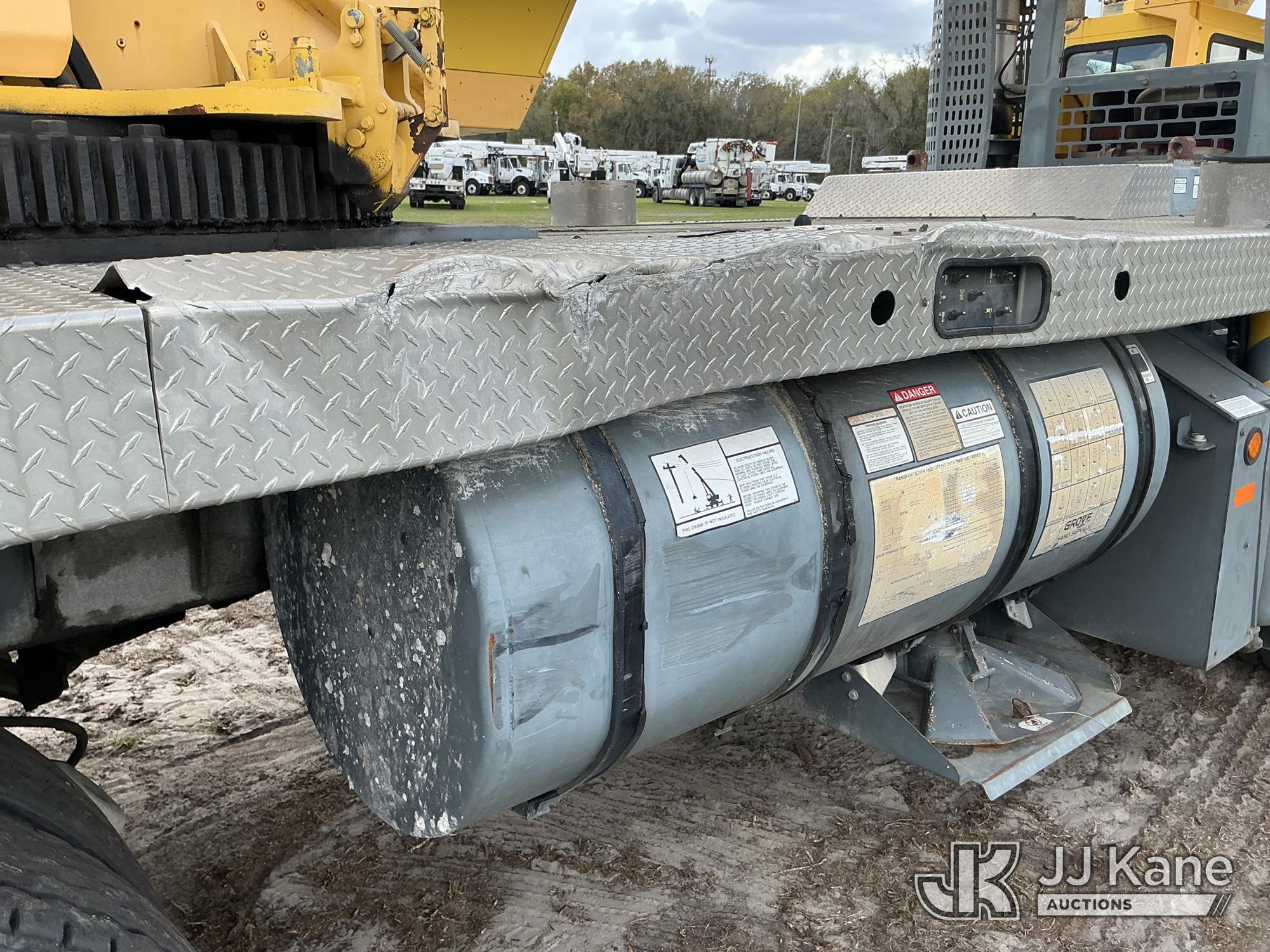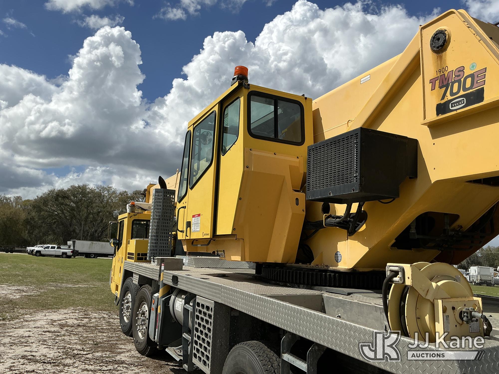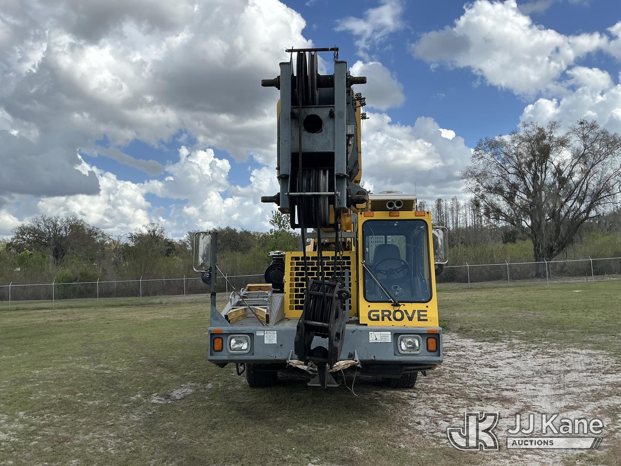 Grove TMS700E, 60-Ton Hydraulic Crane s/n 230030, with 36 ft. to 110 ft. 4 section main boom, 36 ft. to 56 ft. lattice jib, main heel winch, anti-two block system, 2 winches, aux boom head sheave block, 8.5 ton headache ball, 5 hyd outriggers & enclosed riding console, rear mounted on 2009 Grove 8460GE 8x4 Carrier, s/n 476S700E29S230030, Cummins diesel, Eaton/Fuller Auto Shift, A/C, with (3) 5.500 lbs. Crane Heavy Counterweight Package., (36,119 miles) (Runs, Moves & Operates)(FL Residents Purchasing Titled Items – tax, title & registration fees will be collected at the maximum rate of $400.00 under 25,999 and $800.00 for Over 26,000 and $250.00 trailers – Proof of insurance is mandatory; Out of State Residents Purchasing Title Items – tax will be collected based upon your state rate.) (Reads 5,544 hours) This is a Titled Item*