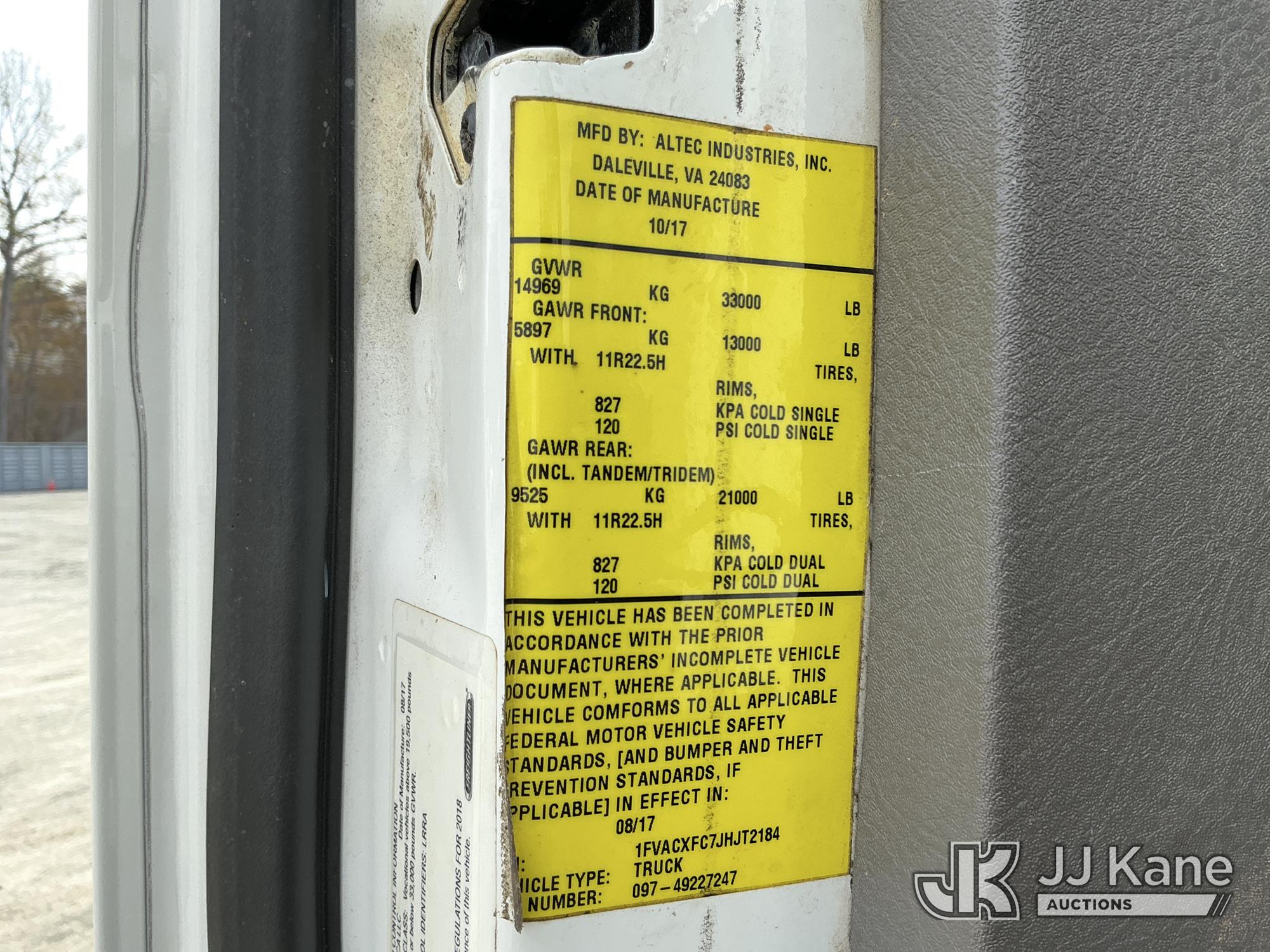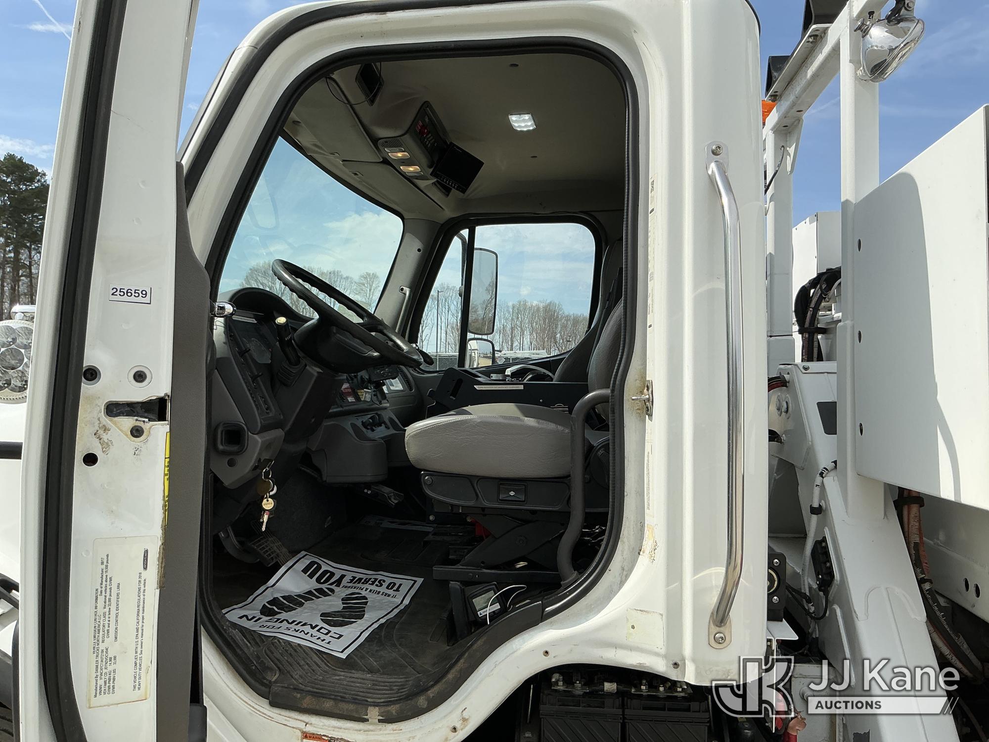 Altec AA55E-MH, 60 ft, Material Handling Bucket Truck s/n 0817FH4879, with JEMS unit, two man bucket, rear mounted on 2018 Freightliner M2 106 Utility Truck, Cummins 6.7L diesel, Auto, A/C, (77,936 miles) (Duke Unit) (Runs, Moves & Upper Operates) (Missing Data Plate ) This is a Titled Item*