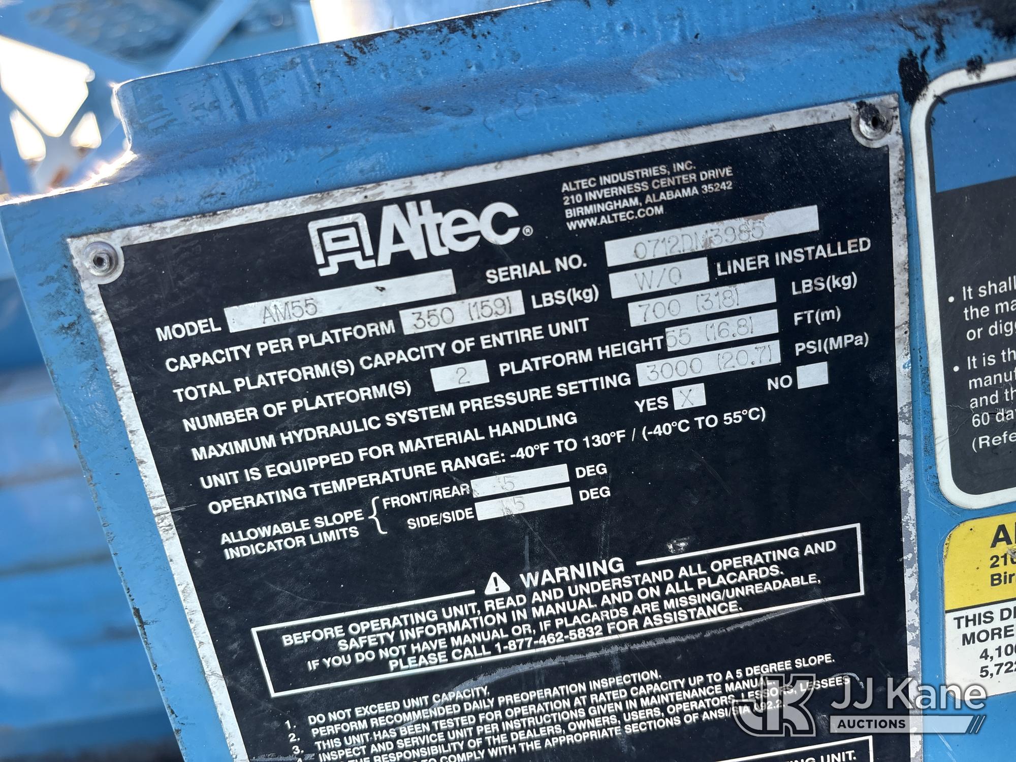 Altec AM55, 60 ft, Material Handling Bucket Truck s/n 0712DM3985, with 2 Single-Man Bucket, mounted behind cab on 2013 International 7500 Service Truck, 9.3L L6 DIESEL 6X6, Auto, A/C, (40,961 miles) (Runs, Moves & Upper Operates) (Reads 4,116 hours) May be subject to ARB Regulations This is a Titled Item*