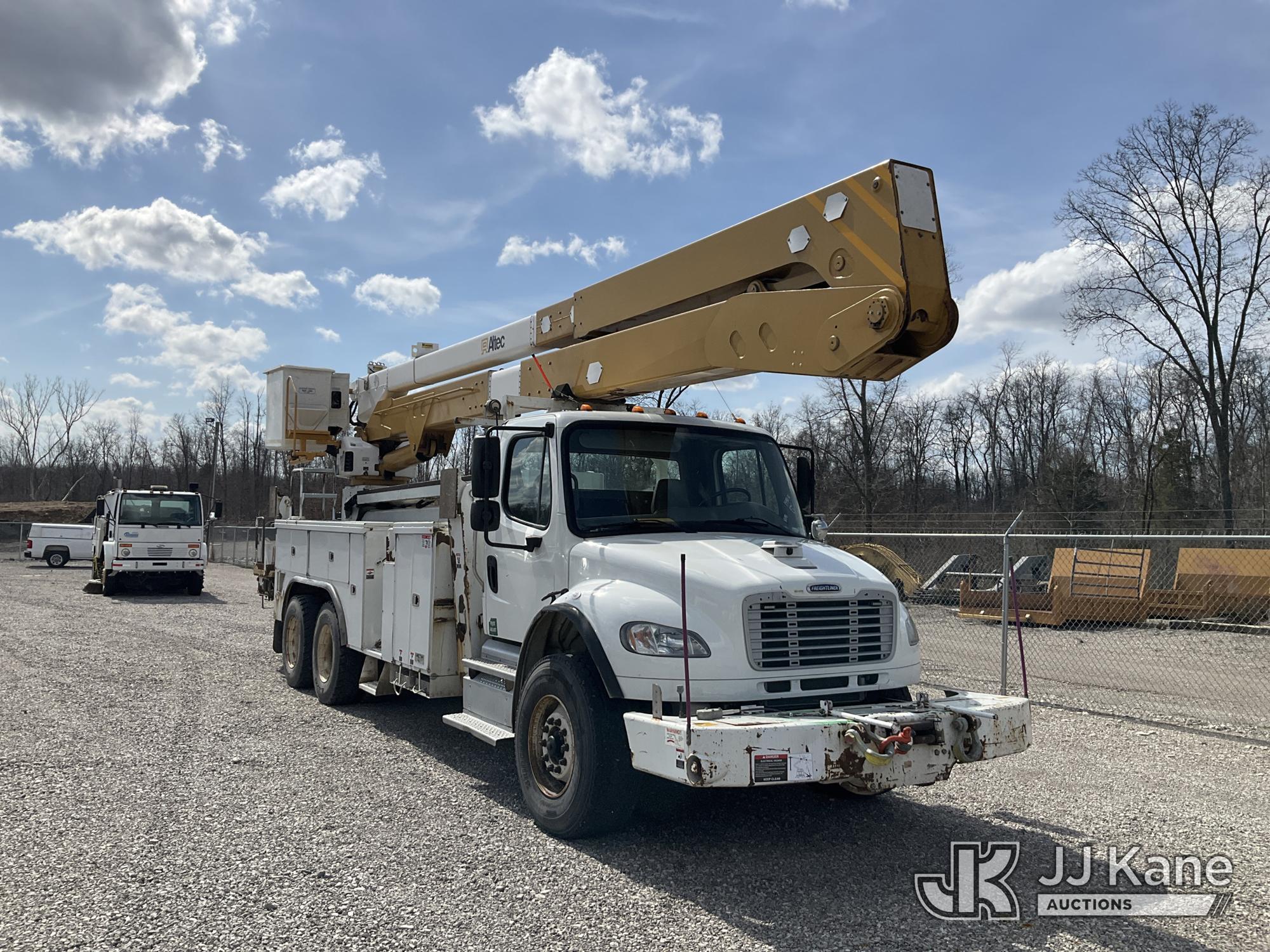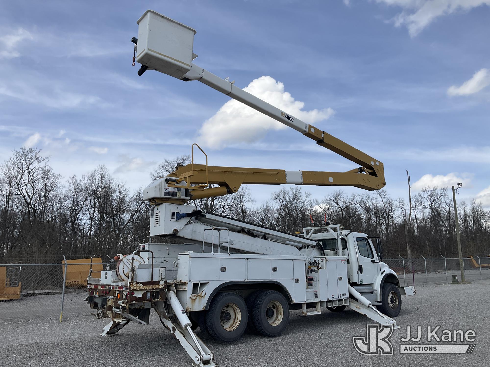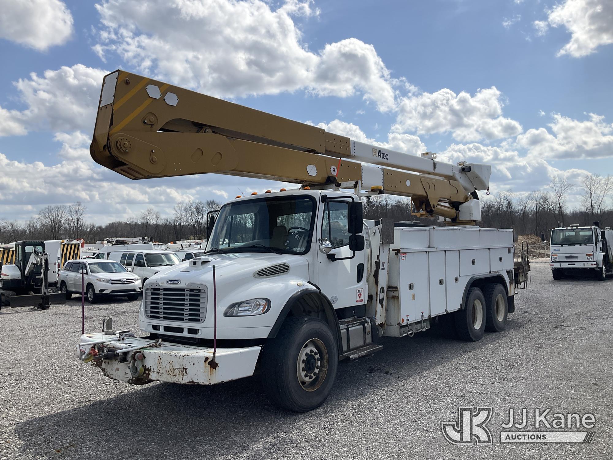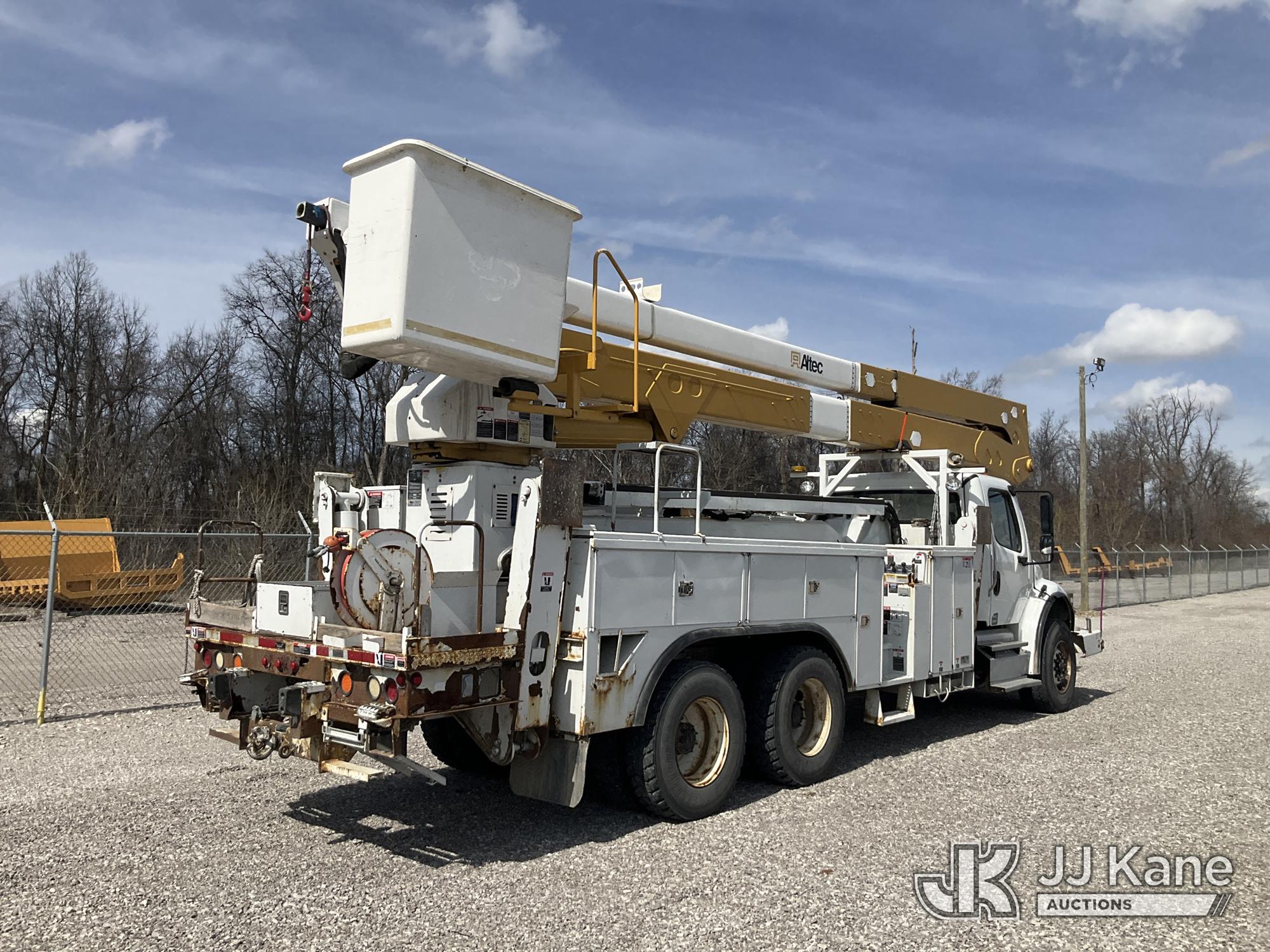 Altec A77T-E93, 98 ft, Articulating & Telescopic Material Handling Elevator Bucket Truck s/n 0313CT1762, with two-man bucket & 4 hyd outriggers, mounted behind cab on 2013 Freightliner M2 106 T/A Utility Truck, 8.3L L6 DIESEL Auto, A/C, (142,559 miles) (Duke Unit) (Runs, Moves & Upper Operates) (Rust Damage) The manufacturer has notified JJ Kane that this equipment is subject to an open recall. CSN 609 Pressure Switch Inspection CSN 612 Trailer Relay Module Circuit Breaker Change CSN 823 Overcenter Blocking Valve Update The equipment should not be operated until this is addressed. Buyer is responsible for reviewing the recall notice and contacting the manufacturer to schedule the recommended corrective actions. Associated costs may be covered by the manufacturer in some cases.) This is a Titled Item*