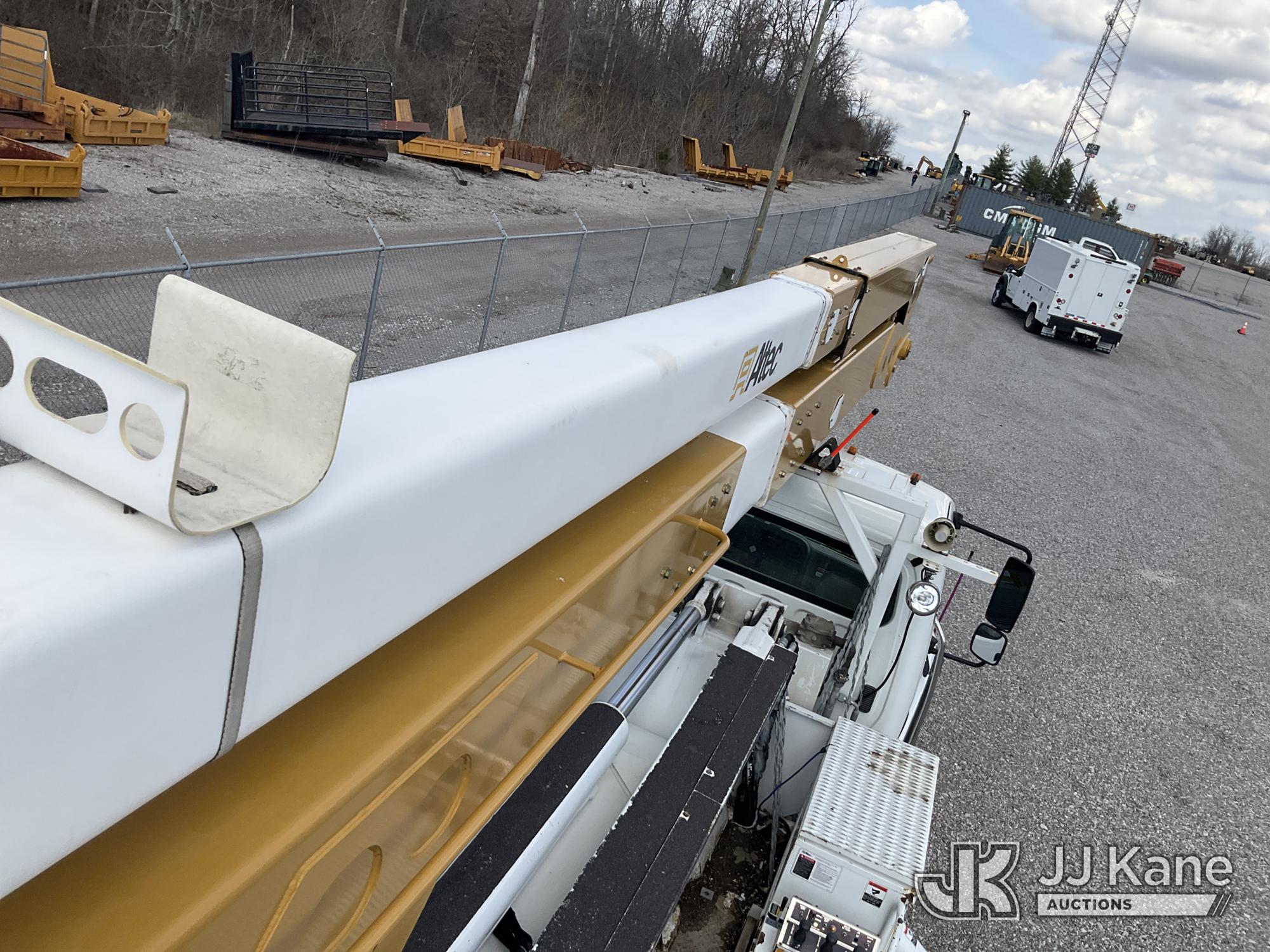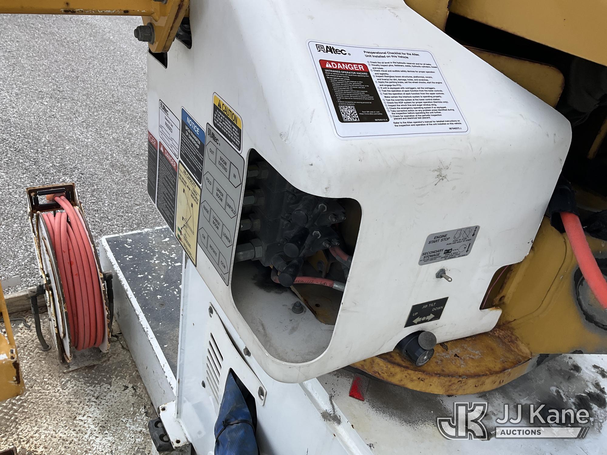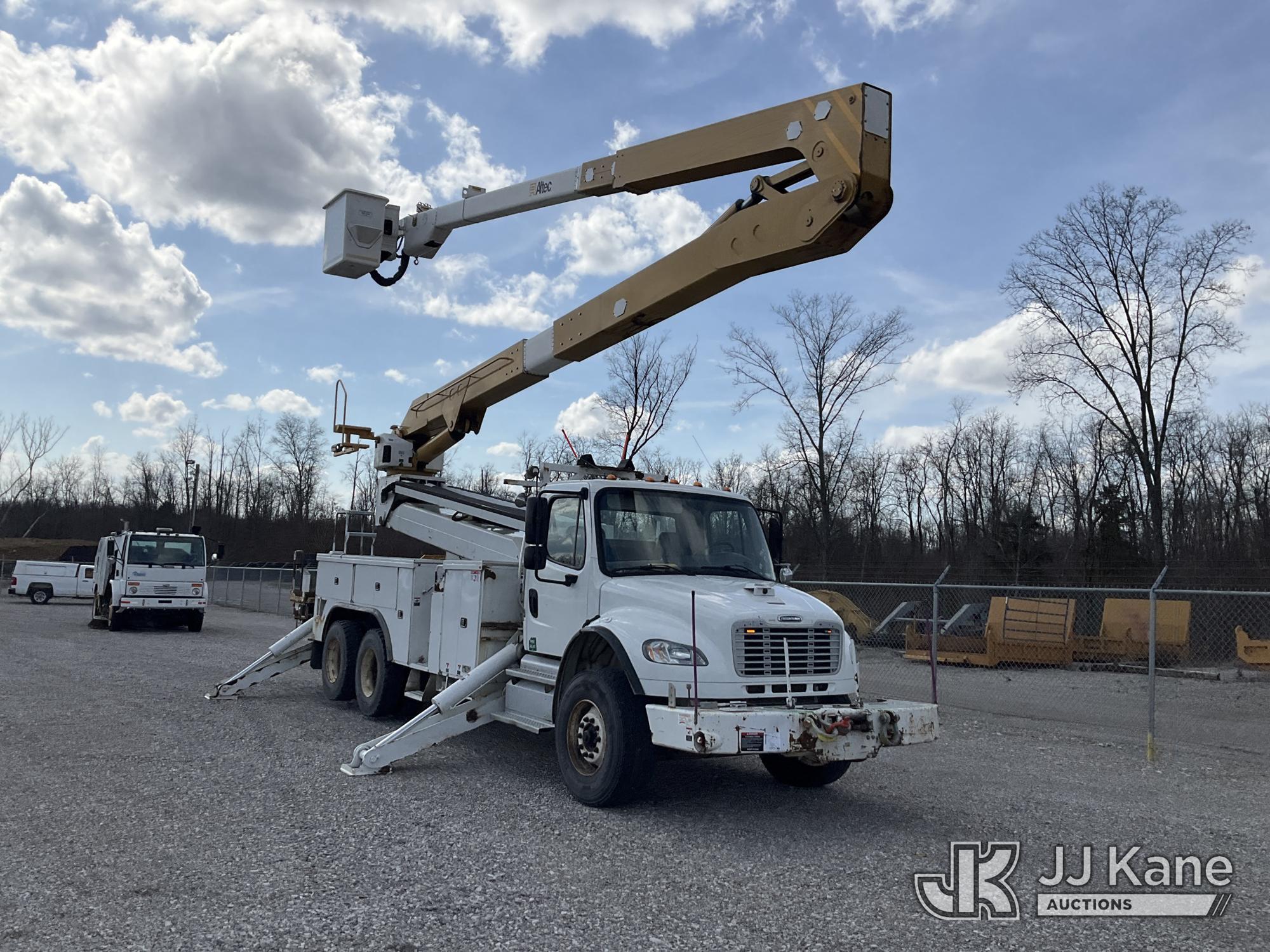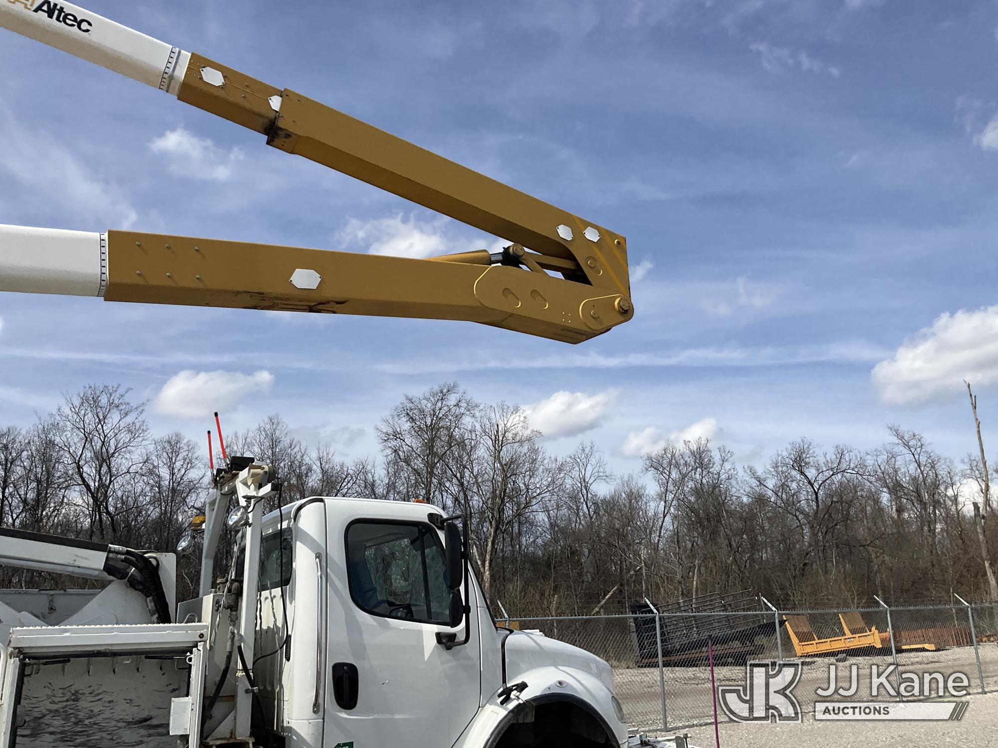 Altec A77T-E93, 98 ft, Articulating & Telescopic Material Handling Elevator Bucket Truck s/n 0313CT1762, with two-man bucket & 4 hyd outriggers, mounted behind cab on 2013 Freightliner M2 106 T/A Utility Truck, 8.3L L6 DIESEL Auto, A/C, (142,559 miles) (Duke Unit) (Runs, Moves & Upper Operates) (Rust Damage) The manufacturer has notified JJ Kane that this equipment is subject to an open recall. CSN 609 Pressure Switch Inspection CSN 612 Trailer Relay Module Circuit Breaker Change CSN 823 Overcenter Blocking Valve Update The equipment should not be operated until this is addressed. Buyer is responsible for reviewing the recall notice and contacting the manufacturer to schedule the recommended corrective actions. Associated costs may be covered by the manufacturer in some cases.) This is a Titled Item*