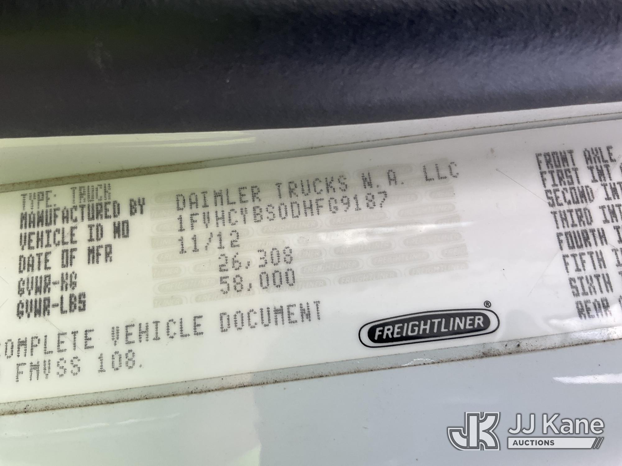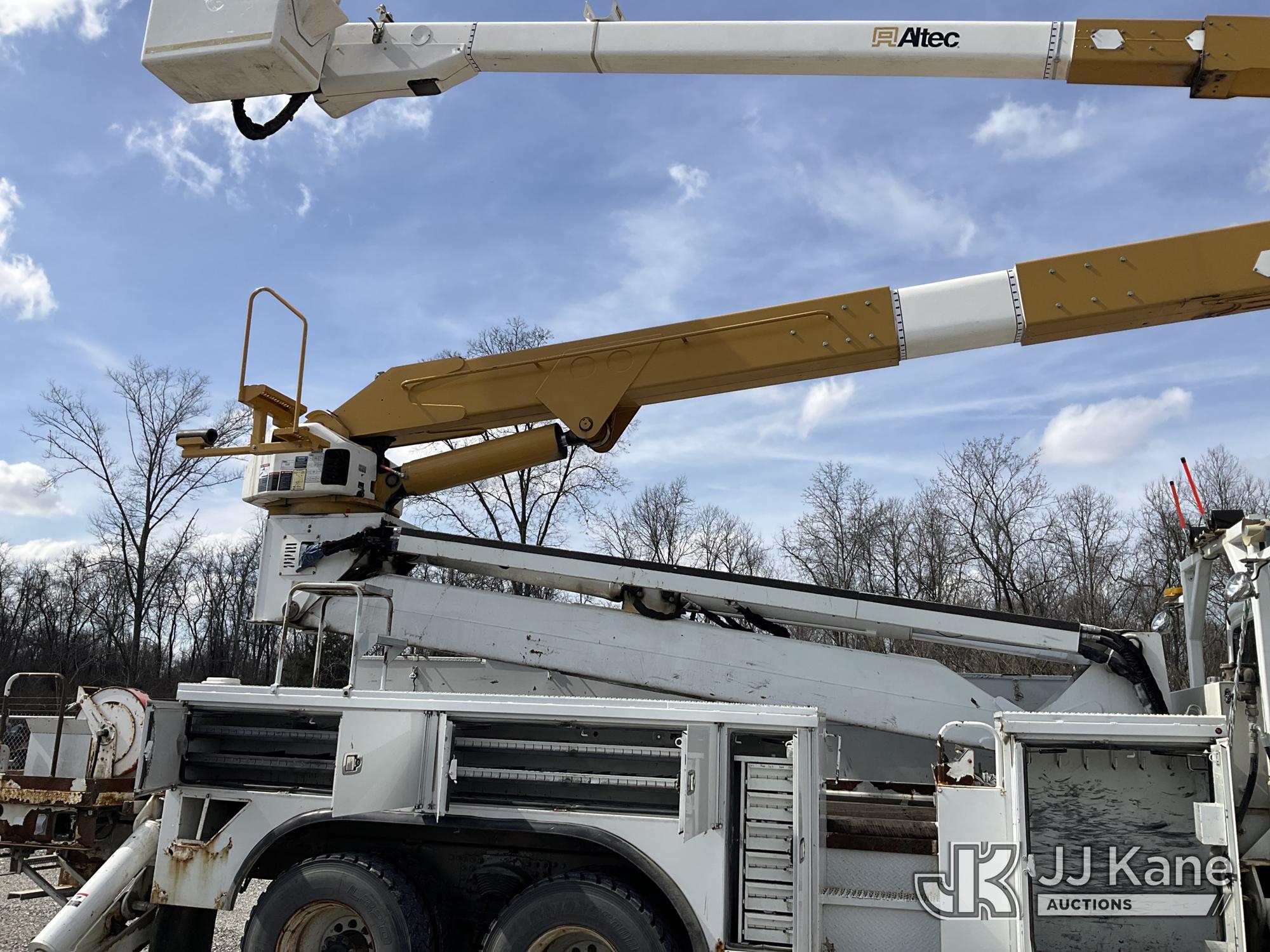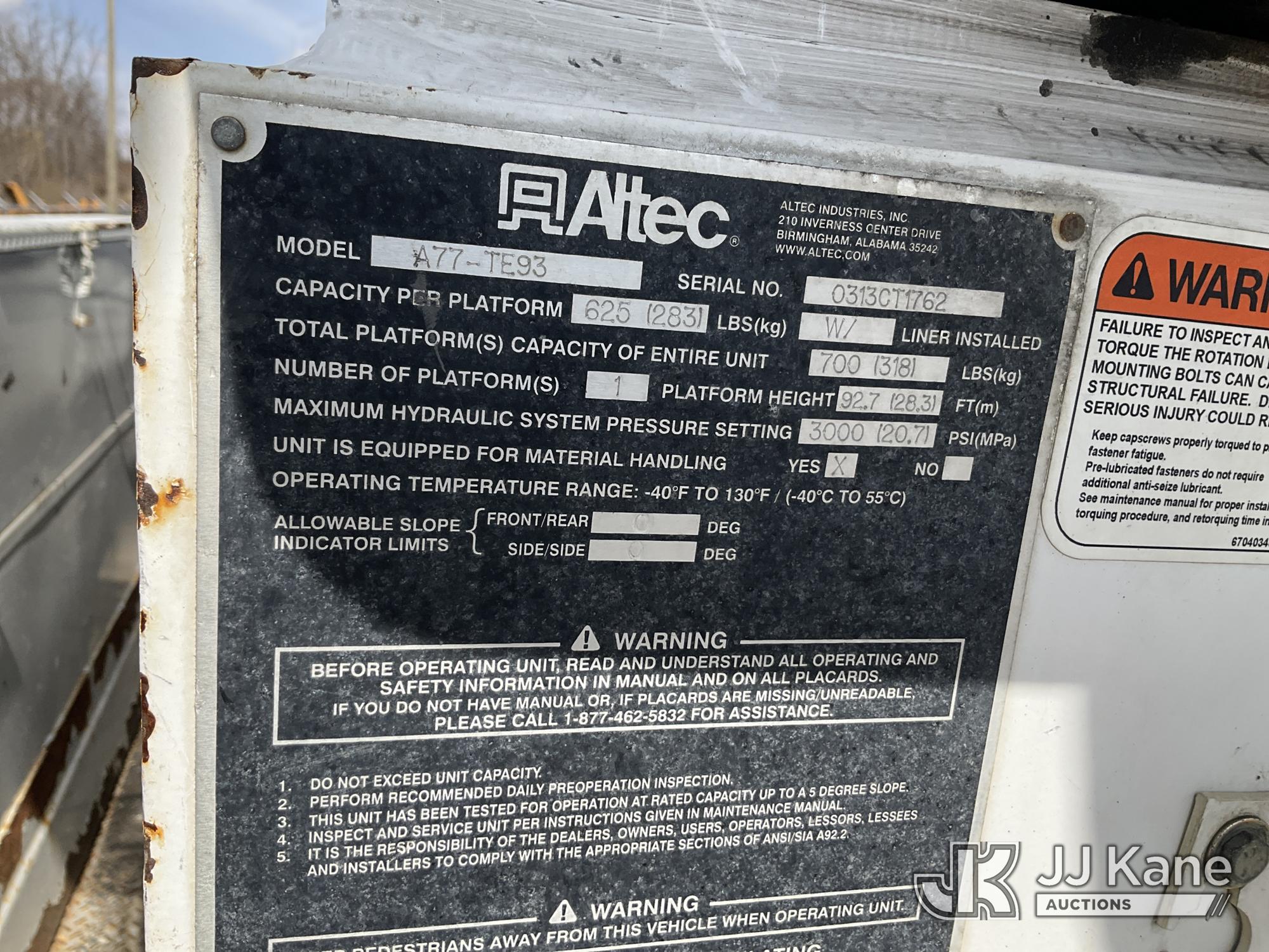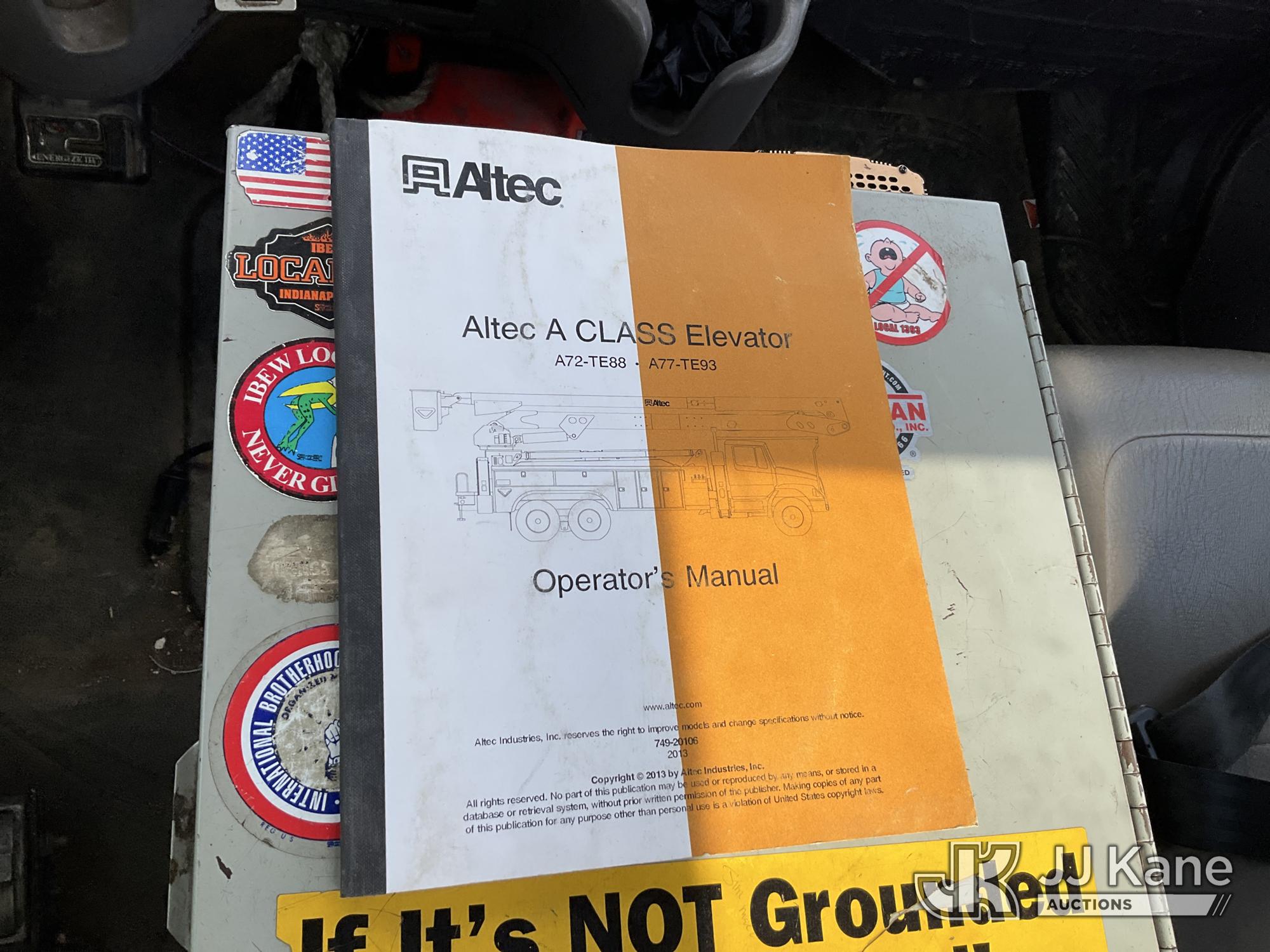 Altec A77T-E93, 98 ft, Articulating & Telescopic Material Handling Elevator Bucket Truck s/n 0313CT1762, with two-man bucket & 4 hyd outriggers, mounted behind cab on 2013 Freightliner M2 106 T/A Utility Truck, 8.3L L6 DIESEL Auto, A/C, (142,559 miles) (Duke Unit) (Runs, Moves & Upper Operates) (Rust Damage) The manufacturer has notified JJ Kane that this equipment is subject to an open recall. CSN 609 Pressure Switch Inspection CSN 612 Trailer Relay Module Circuit Breaker Change CSN 823 Overcenter Blocking Valve Update The equipment should not be operated until this is addressed. Buyer is responsible for reviewing the recall notice and contacting the manufacturer to schedule the recommended corrective actions. Associated costs may be covered by the manufacturer in some cases.) This is a Titled Item*
