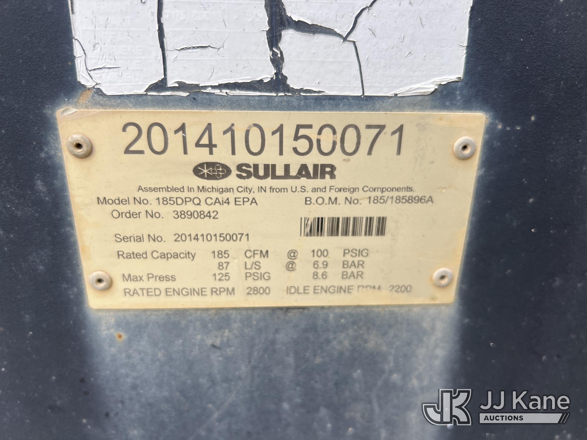 Sullair 175DPQ-185 Air Compressor, s/n 201410150071, Cat diesel, trailer mtd (No Title) (Not Running, Condition Unknown)*