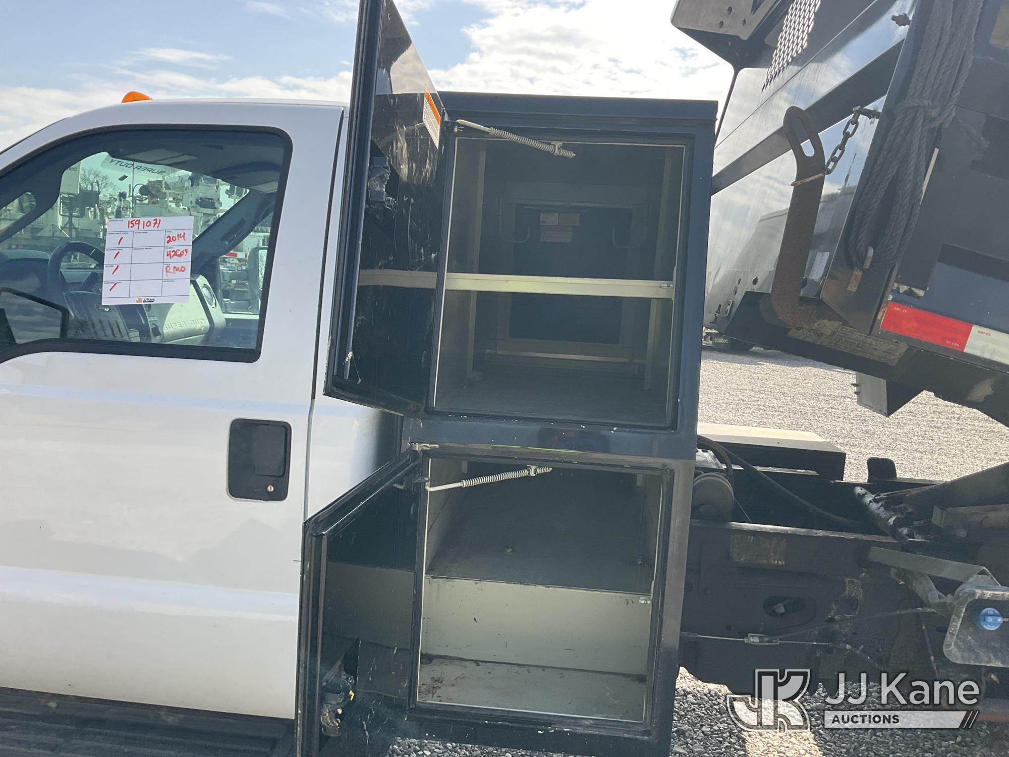 2014 Ford F550 Dump Truck, 6.7L V8 OHV 16V DIESEL RWD, Auto, A/C, with 3-5 yard body, (42,603 miles) (Duke Unit) (Runs, Moves & Dump Operates) (Rust Damage) This is a Titled Item*