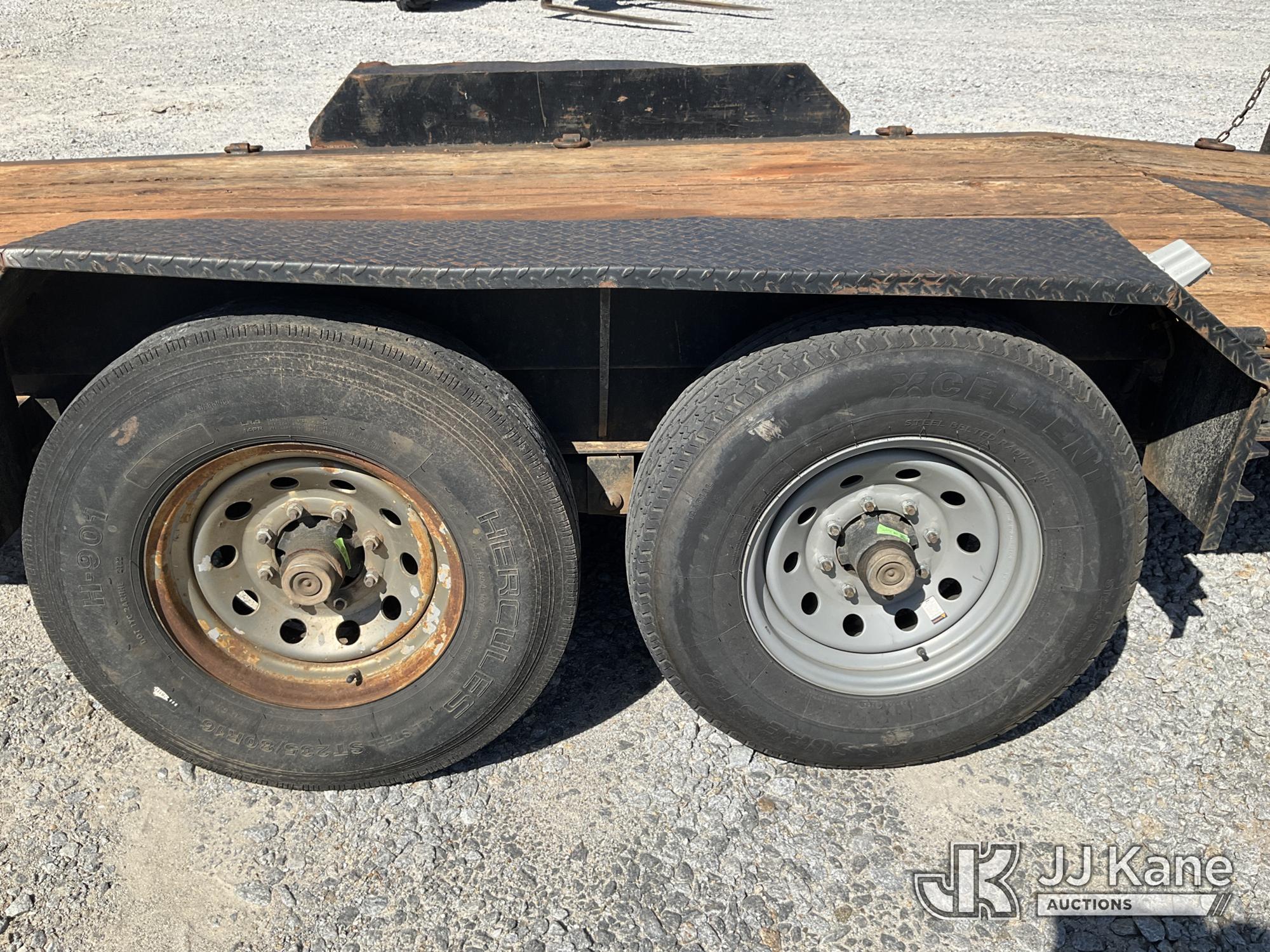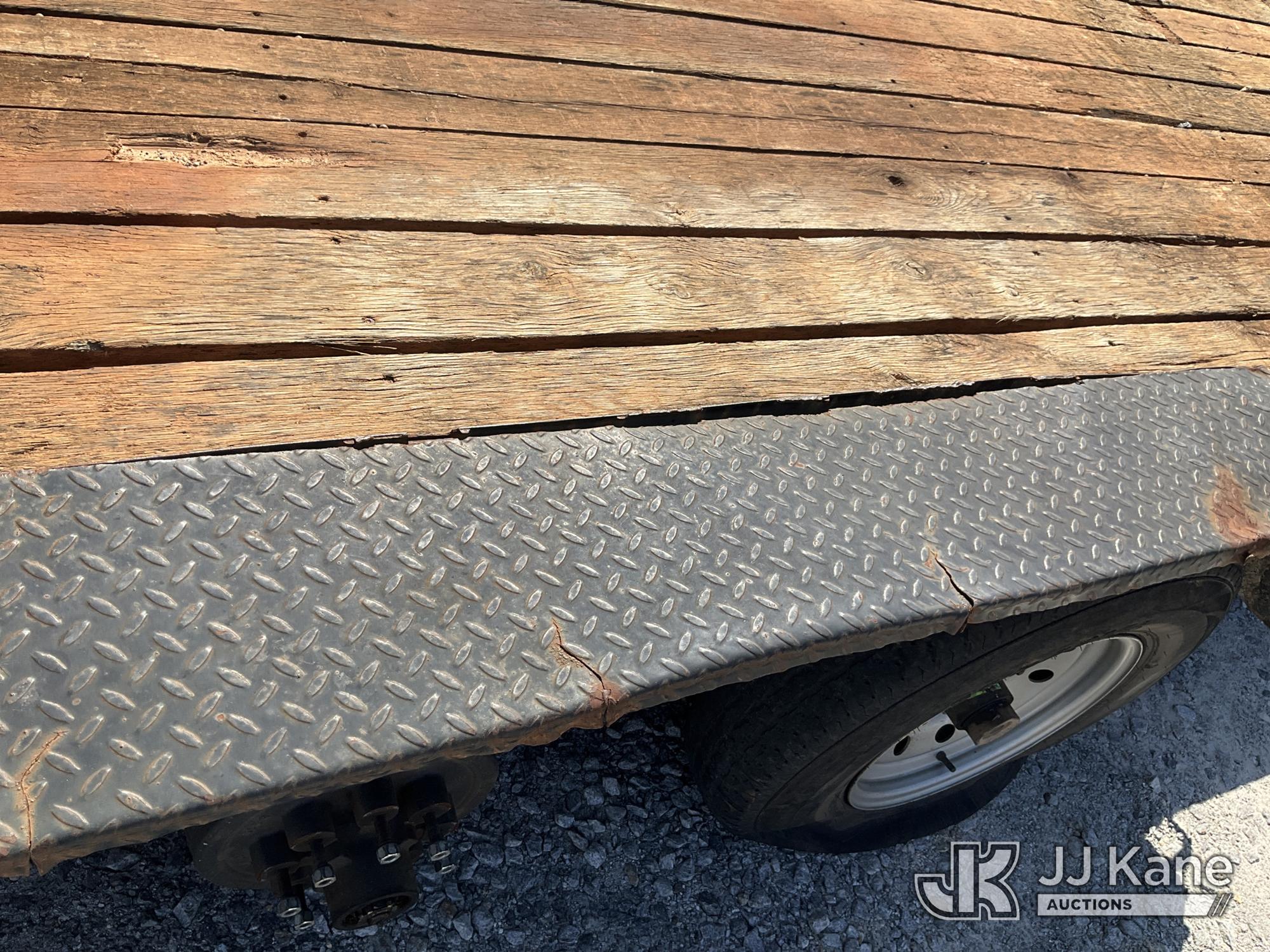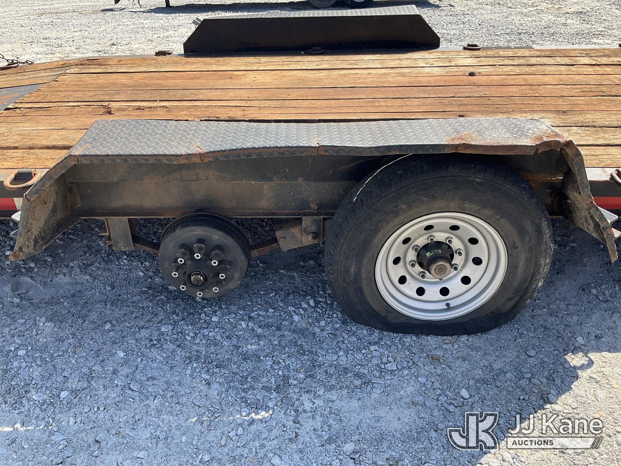 2017 Custom 5-Ton T/A Tagalong Equipment Trailer, with 18 foot level deck between the wheels with beaver tail & ramps, (Missing Wheel On Driver Side Back Axel, Flat Tire) This is a Titled Item*