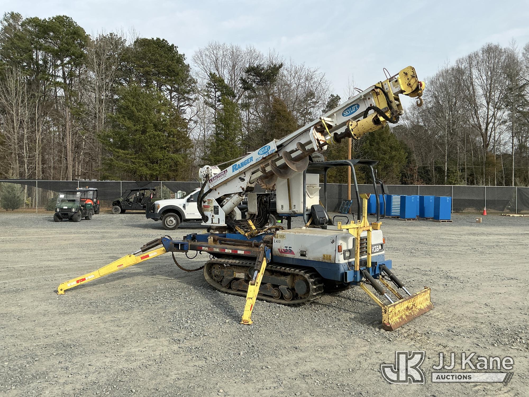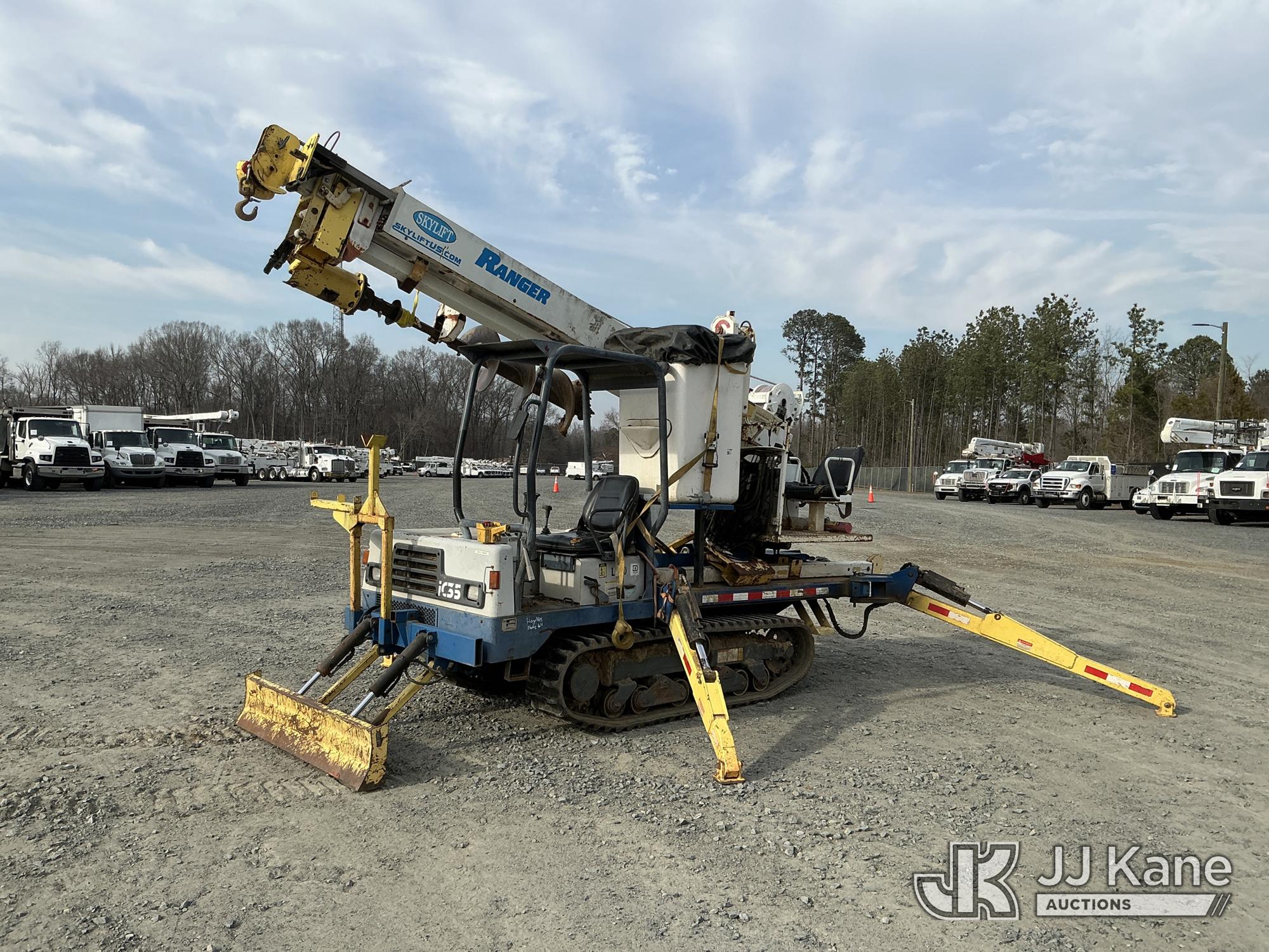 Skylift RG40, 5,000 Lb Back Yard Digger Derrick s/n 1516, with 40 ft. sheave height, 1spd digger, heel winch, detachable pole grabs, pin on bucket, 8 ft. jib, riding console w/remote, rear mounted on 2010 IHI IC35 All-Terrain Track Machine, s/n CJ000184, Kubota diesel, Hydrostatic, with push blade & 2011 T/A Tagalong Support Trailer Vin: 457EA0H94B1022125, To Be Sold With Lot# TG610 (Equipment and trailer price will be split out on invoice to reflect 80/20, equipment to trailer price ratio for tax purposes) (Runs & Moves) (Upper Condition Unknown, Upper Hyd Lines Dry Rotted) (Reads 1,695 hours)*