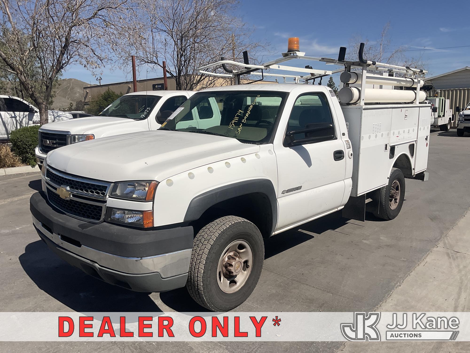 2005 Chevrolet Silverado 2500HD Service Truck, 8-cyl gas, Auto, A/C, (Exempt from Odometer Disclosure - Reads 132,281 miles) (Runs & Moves, Air Bag Light On, Missing Driver Seat Seat Belt, Check Engine Light On ) (Bidding Restricted to Licensed Vehicle Dealers Only), This is a Titled Item*