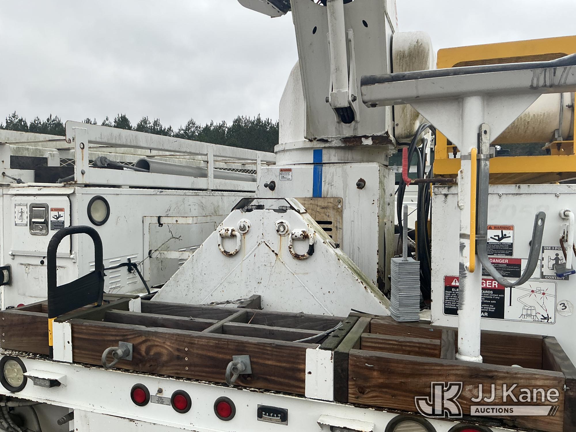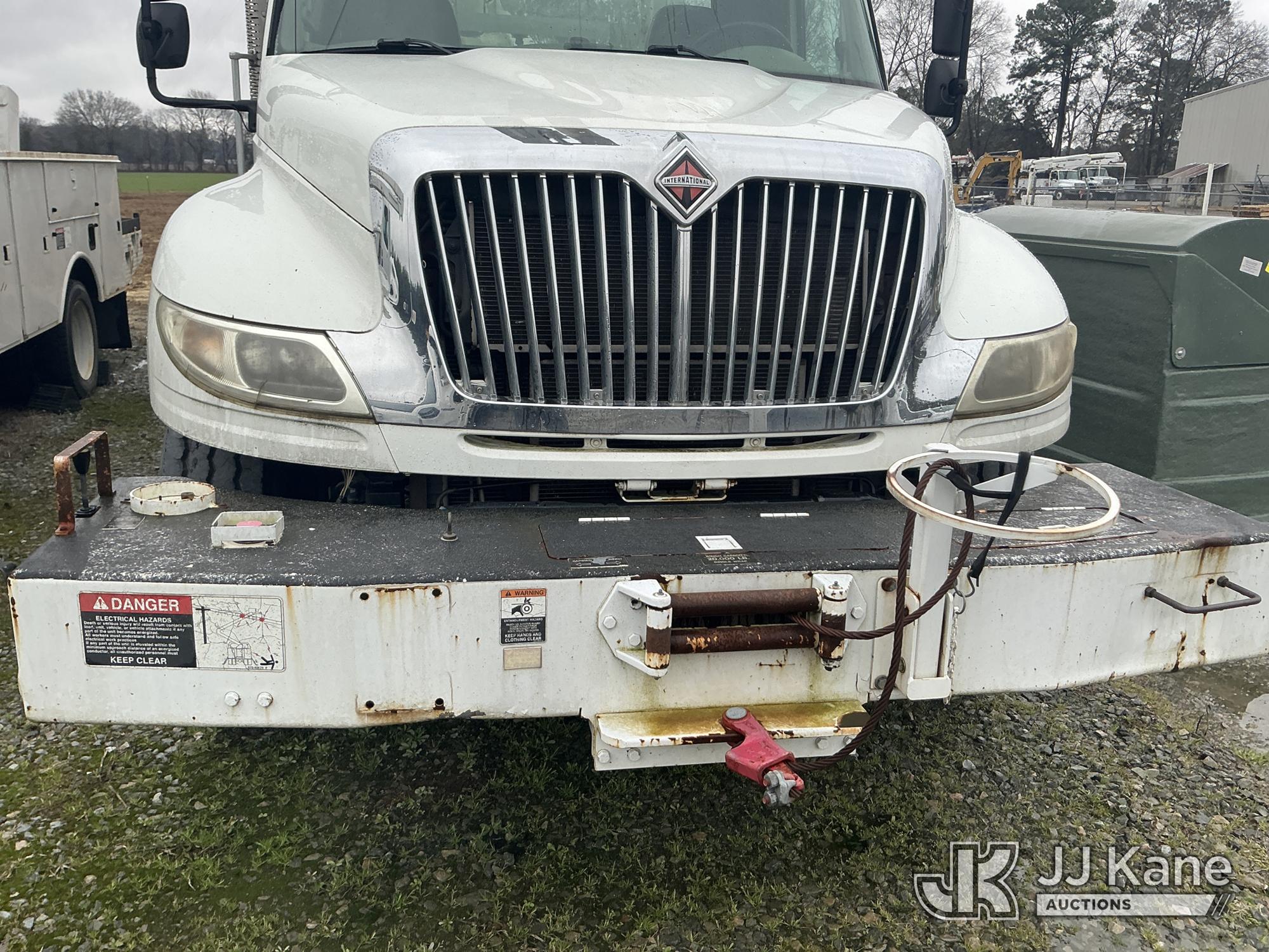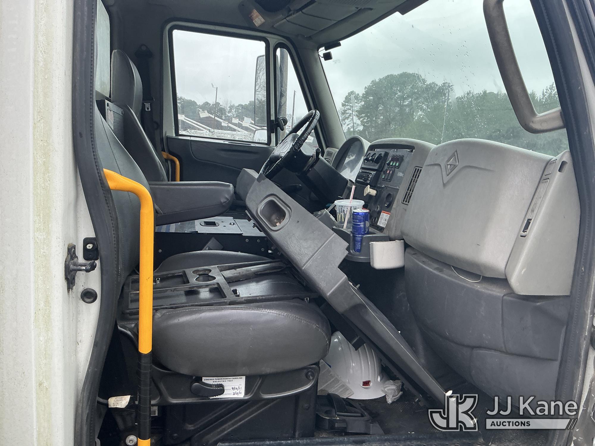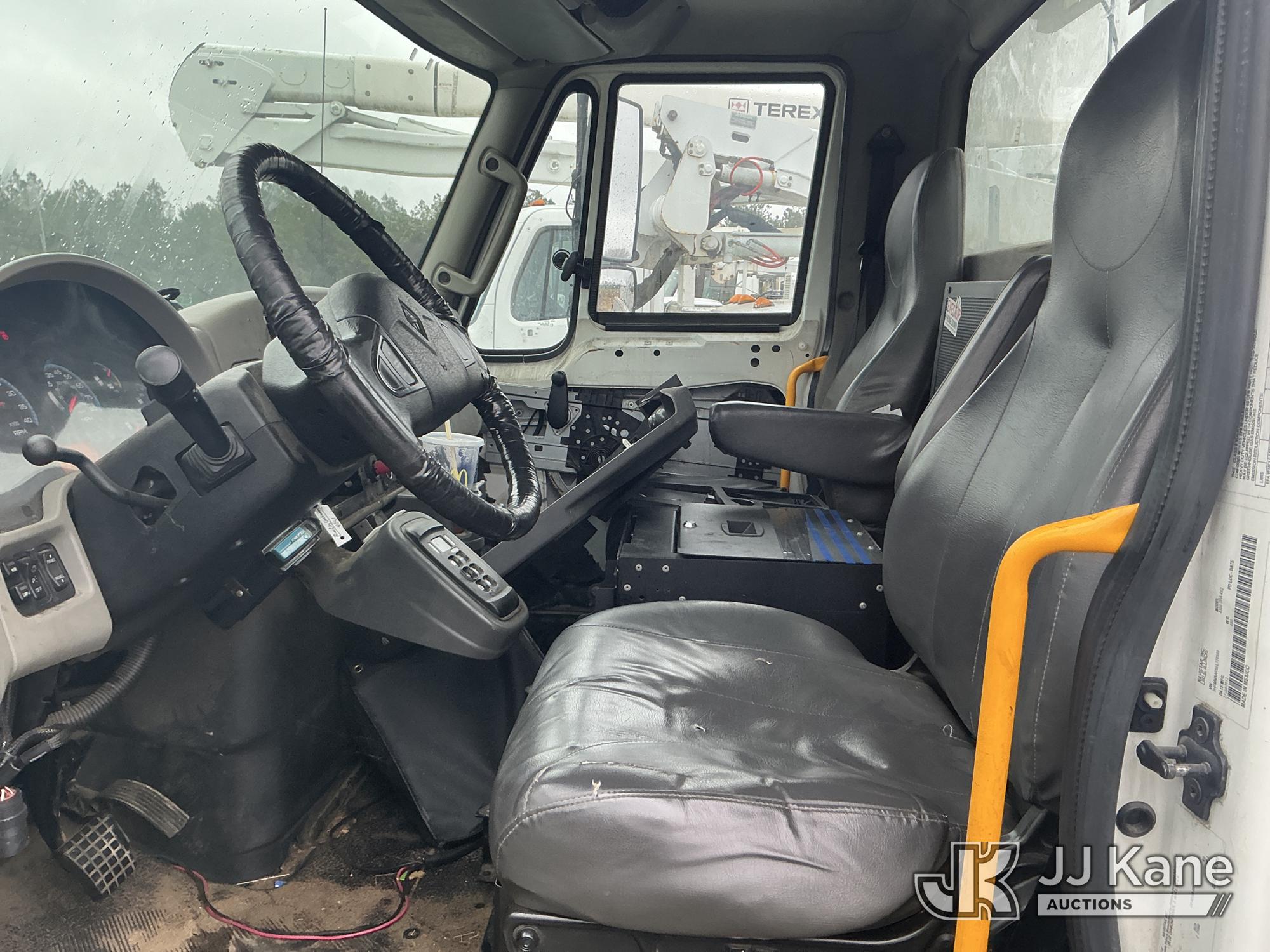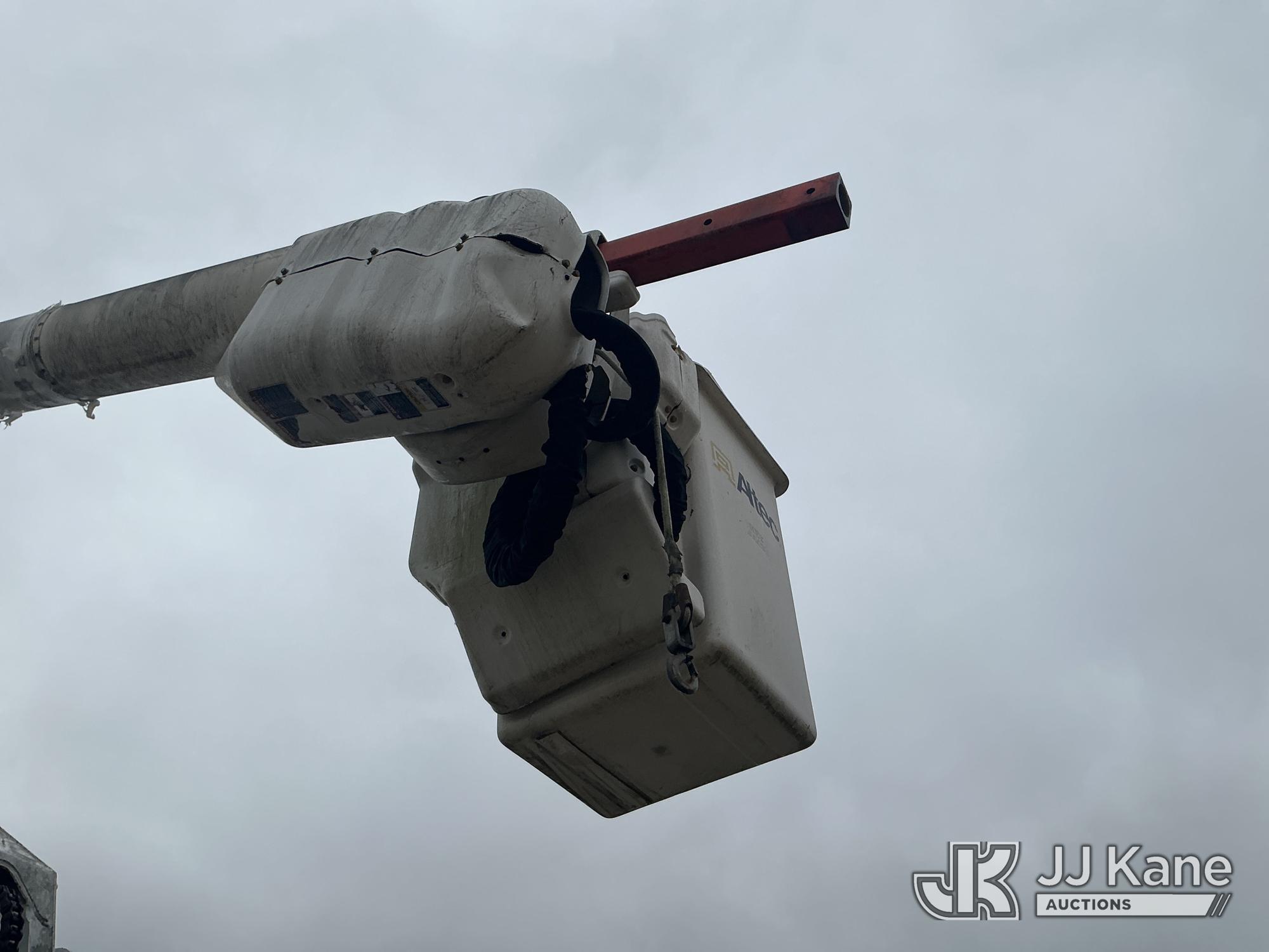 Altec AM55-MH, 60 ft, Over-Center Material Handling Bucket Truck s/n 0813DM4692, with single man bucket & 4 hydraulic outriggers, rear mounted on 2014 International 4300 Utility Truck, 7.6L L6 diesel, Auto, A/C, with front winch, (82,824 miles) (Runs, Moves, Upper Operates) (Missing Upper Plate) This is a Titled Item*
