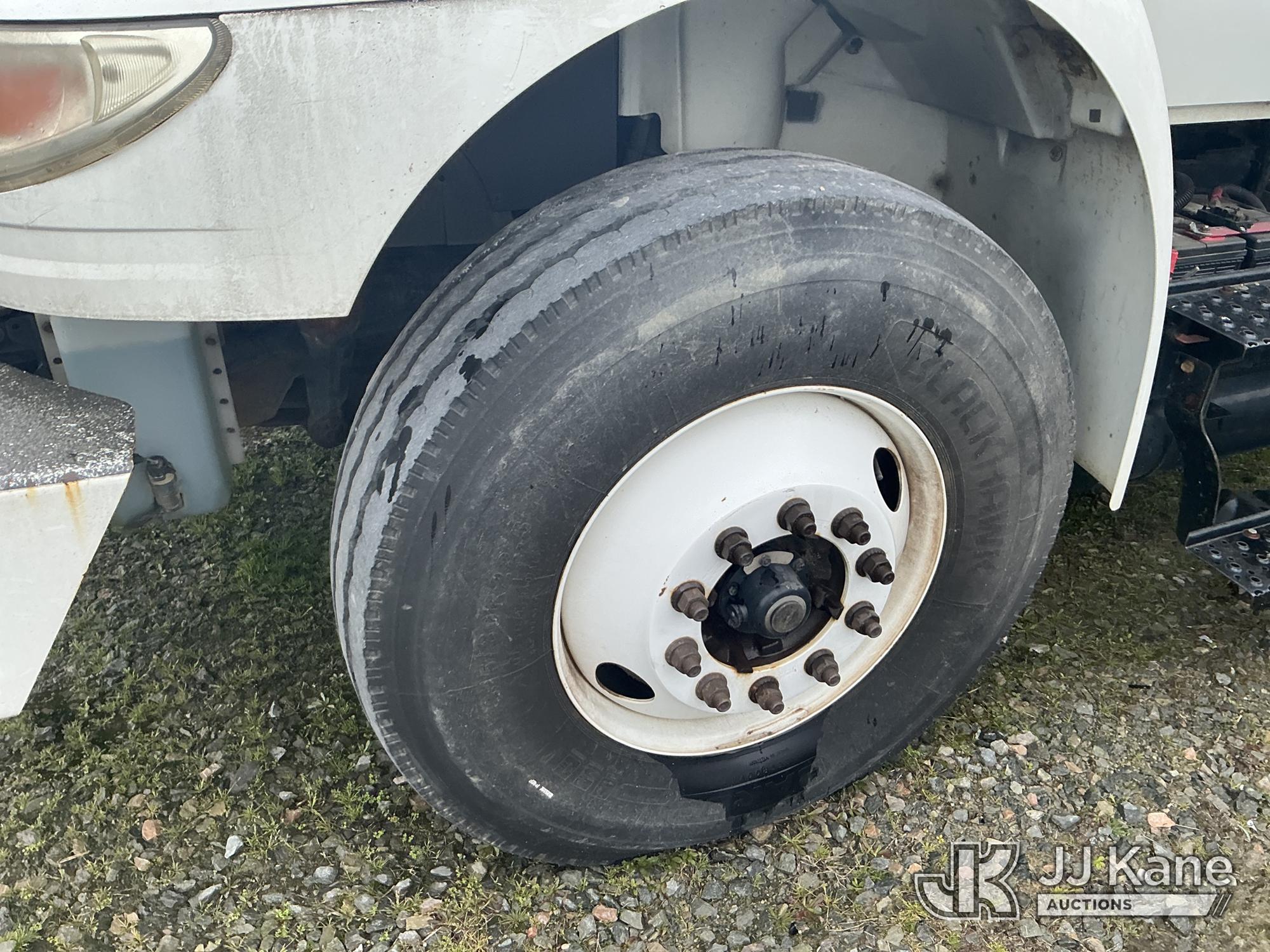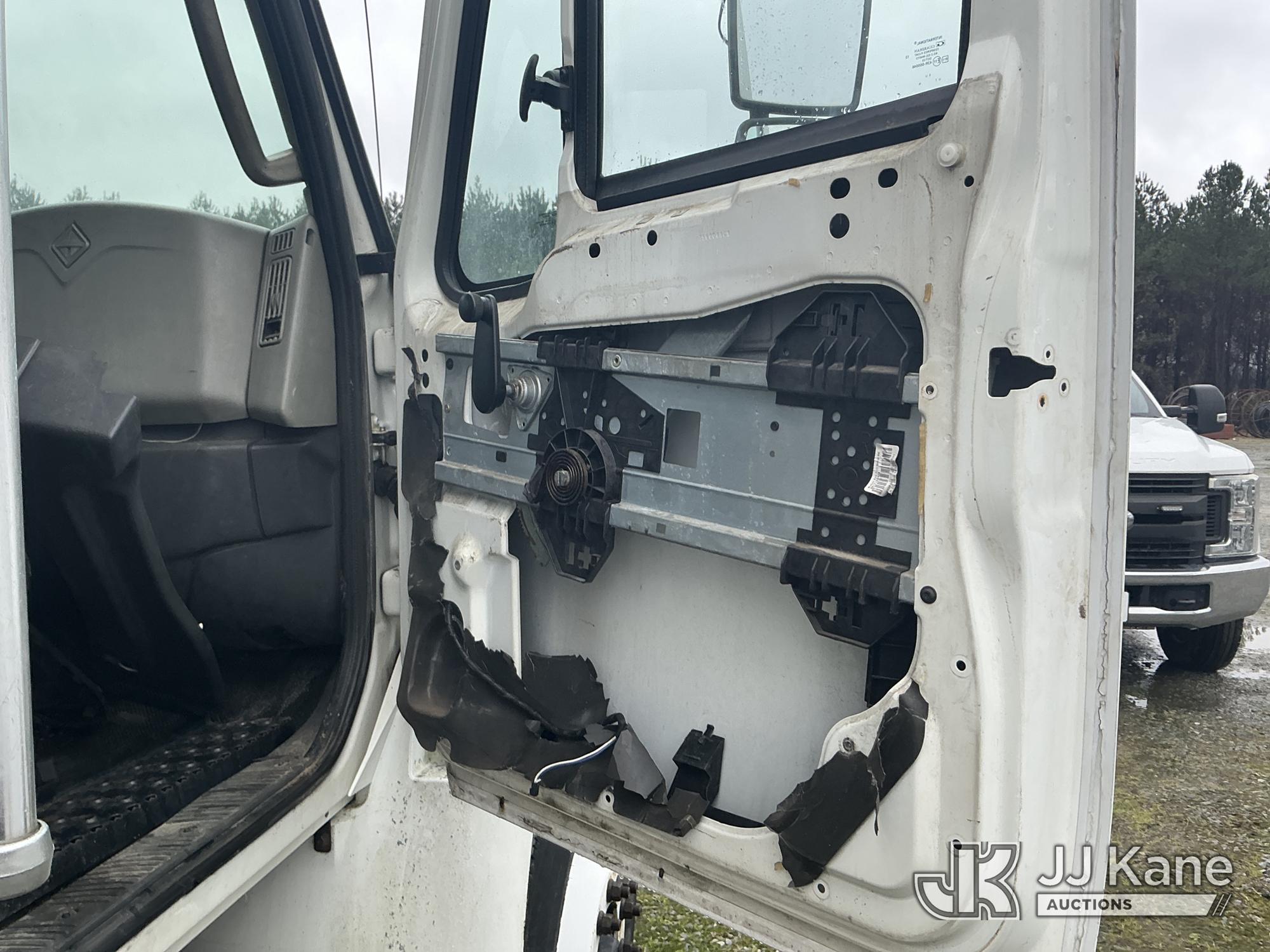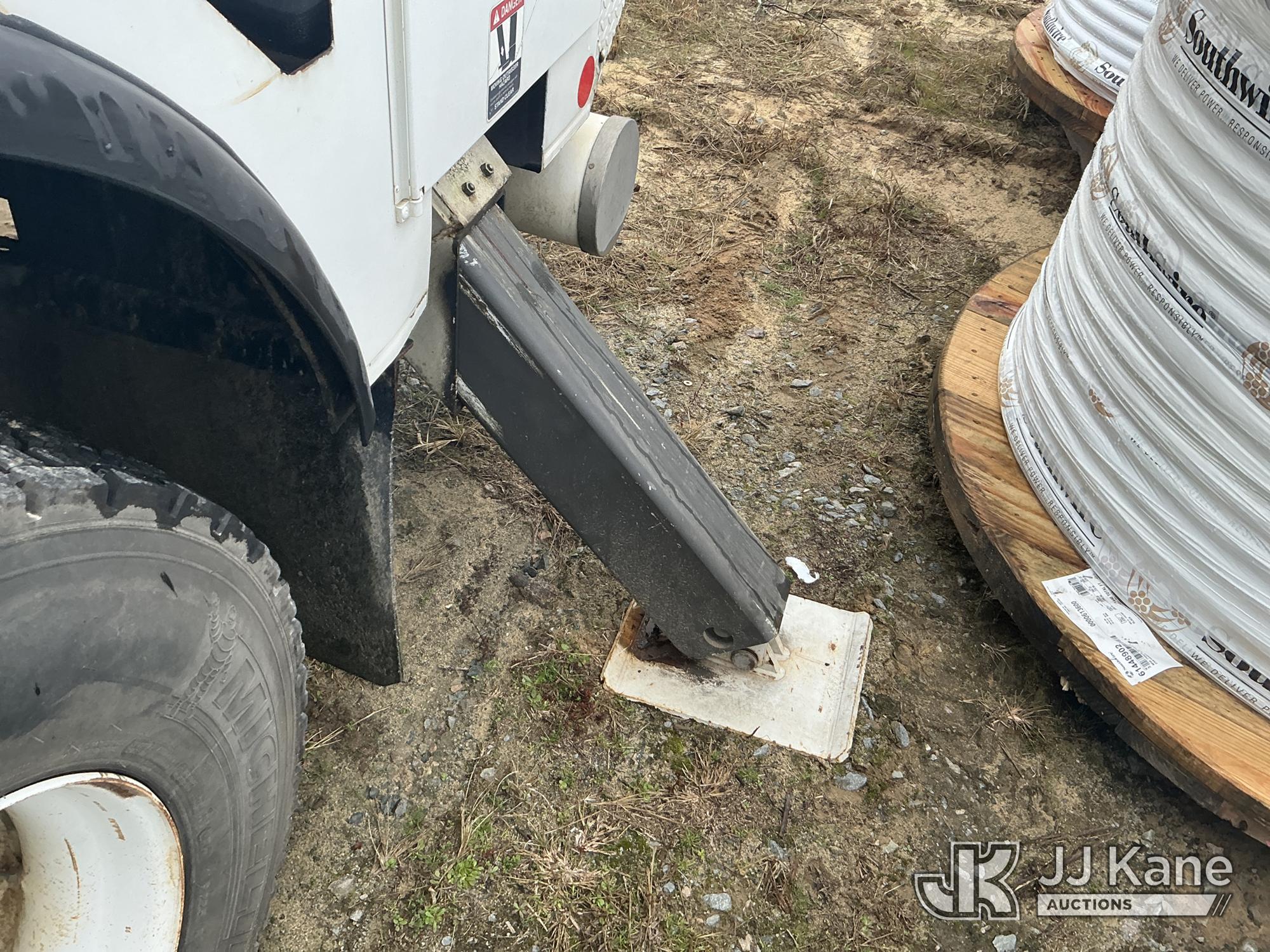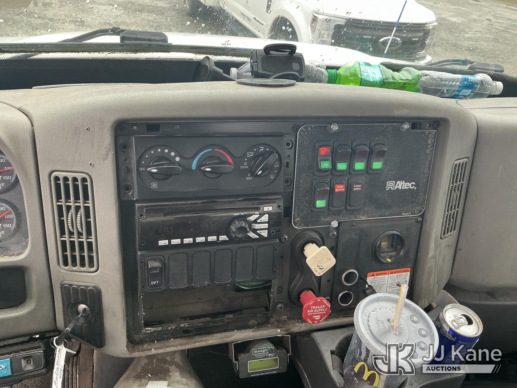 Altec AM55-MH, 60 ft, Over-Center Material Handling Bucket Truck s/n 0813DM4692, with single man bucket & 4 hydraulic outriggers, rear mounted on 2014 International 4300 Utility Truck, 7.6L L6 diesel, Auto, A/C, with front winch, (82,824 miles) (Runs, Moves, Upper Operates) (Missing Upper Plate) This is a Titled Item*