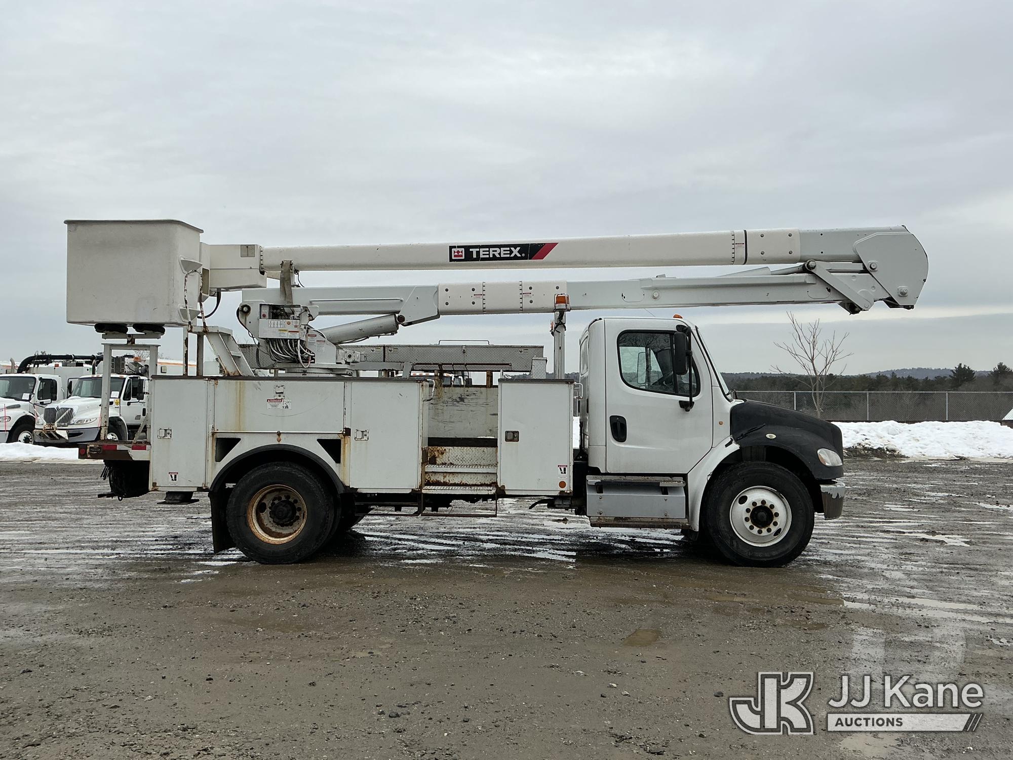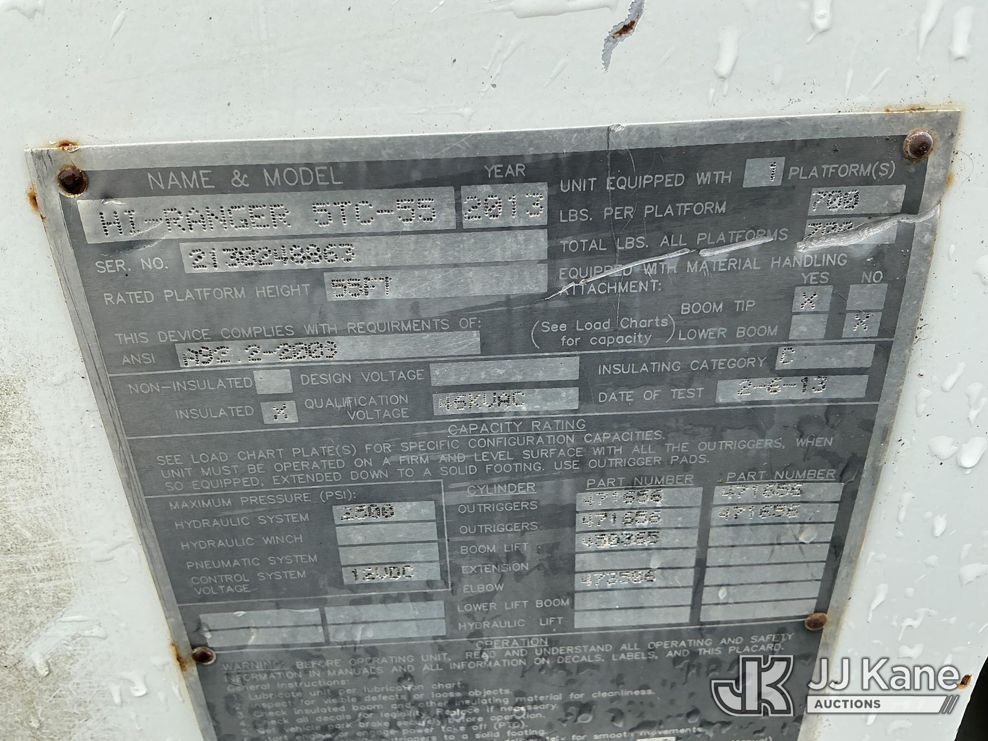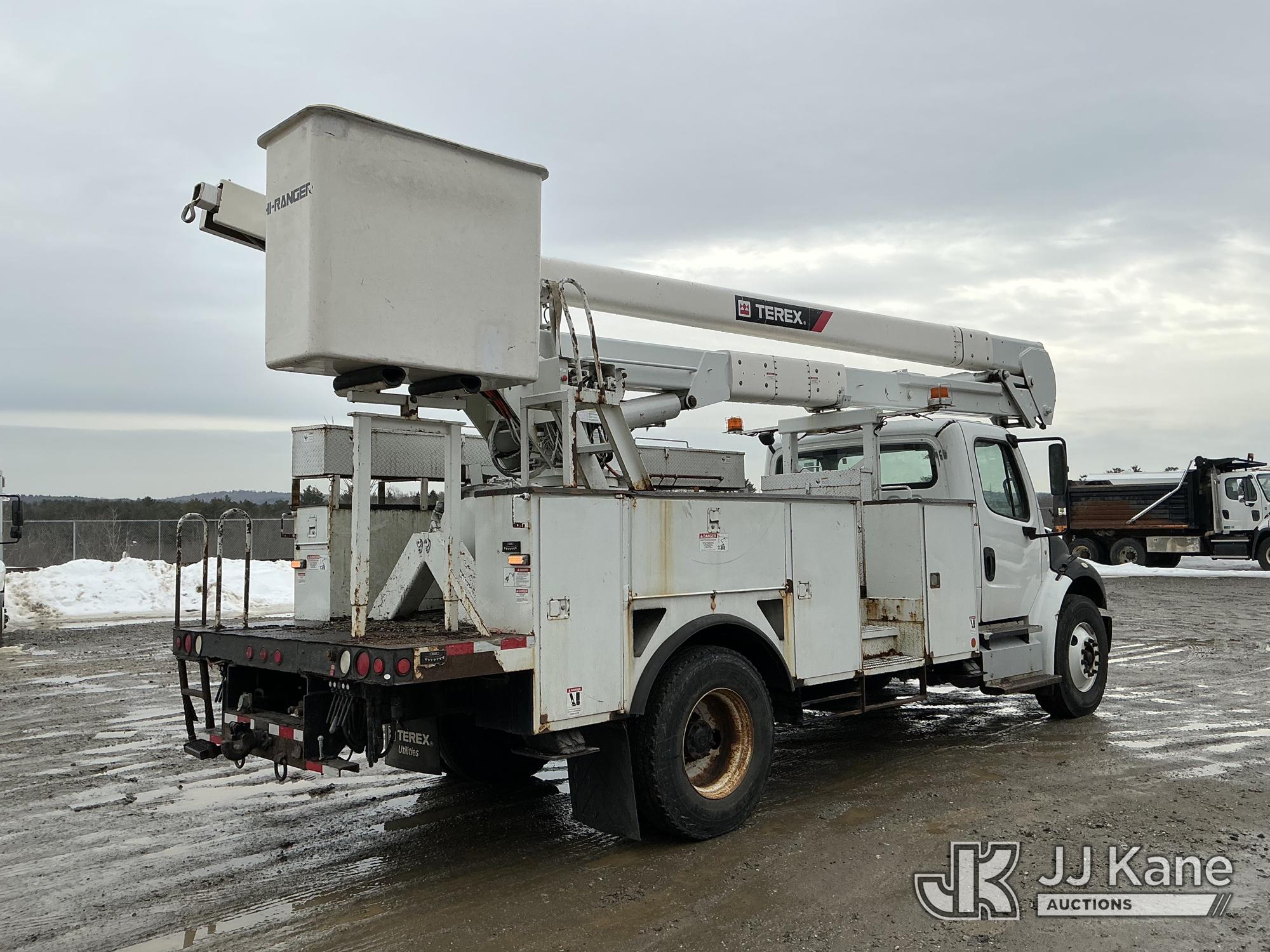 Terex HiRanger TC55-MH, 60 ft, Material Handling Bucket Truck s/n 2130248863, with two-man bucket & 4 hyd outriggers, mounted behind cab on 2013 Freightliner M2 106 Utility Truck, Cummins 6.7L 4X2, diesel, Auto, A/C, (48,969 miles) (Runs, Moves & Upper Operates) (Check Engine Light On) (Reads 6,361 hours) This is a Titled Item*