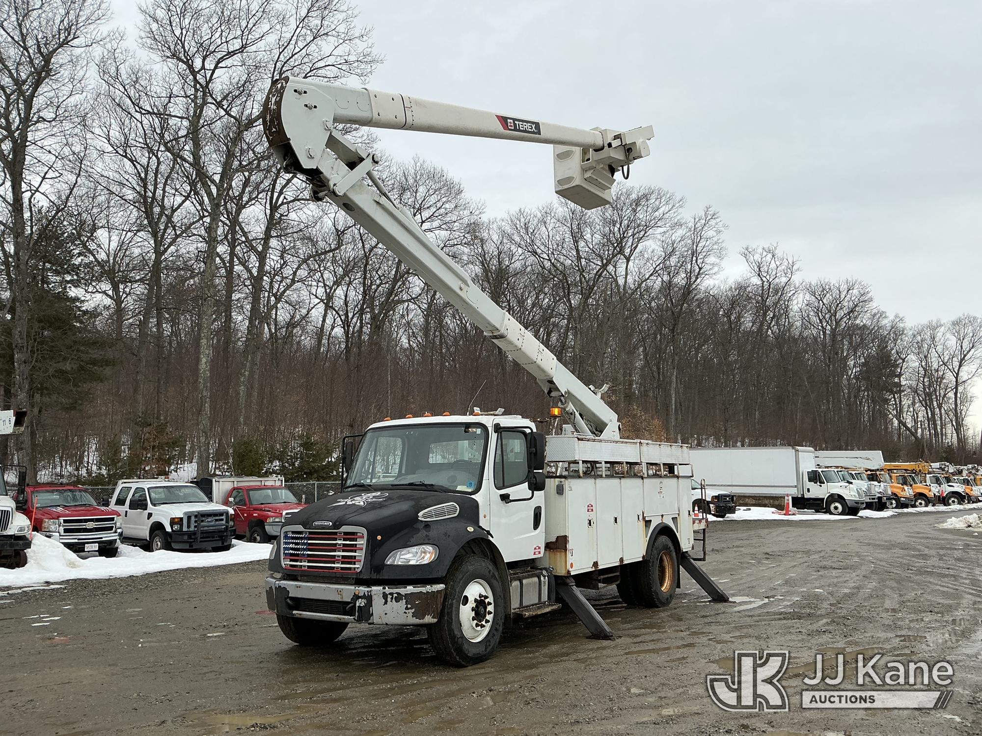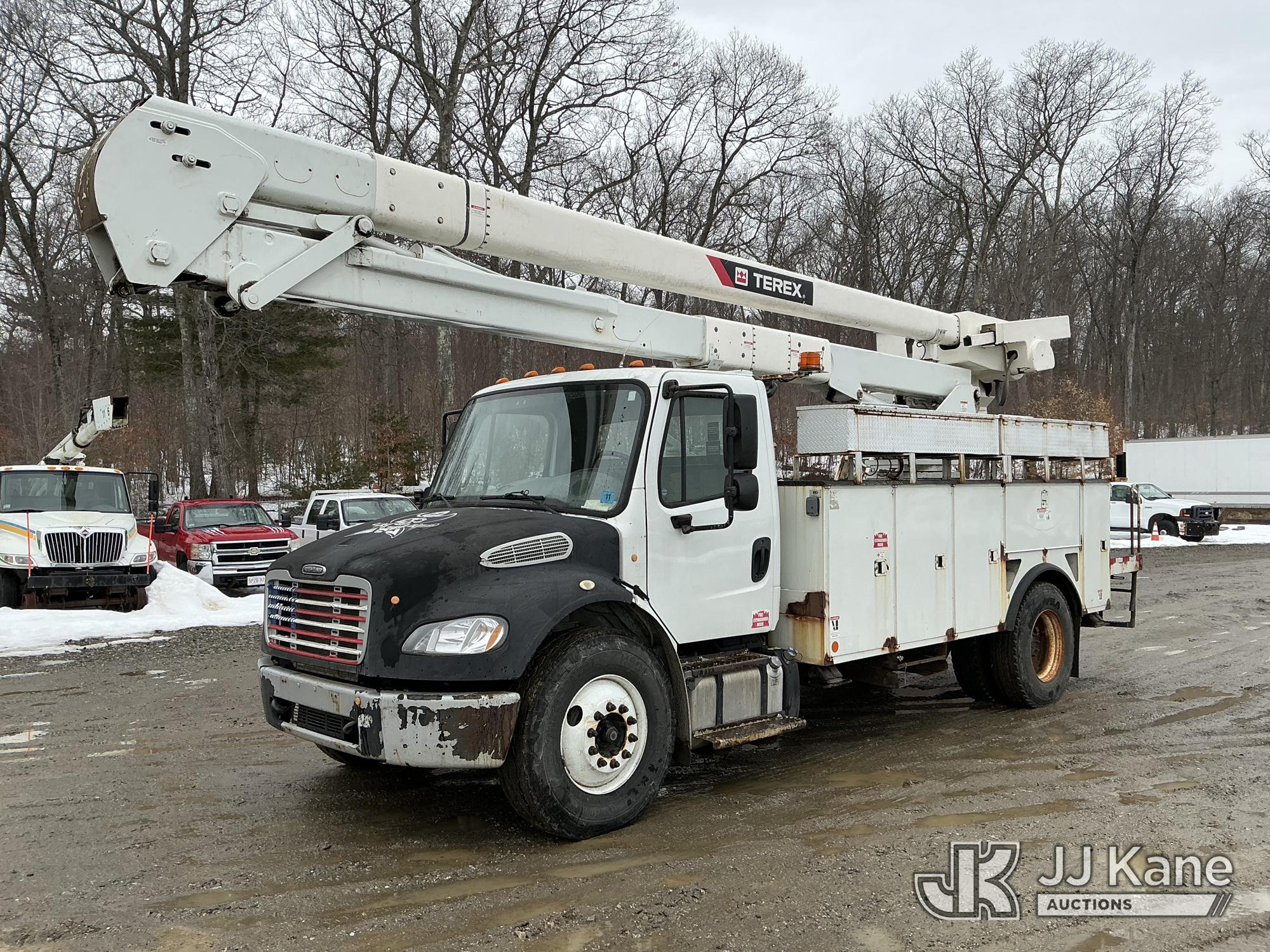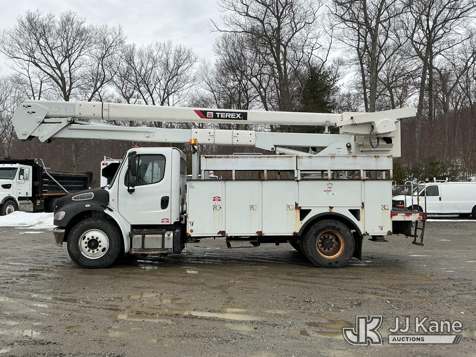 Terex HiRanger TC55-MH, 60 ft, Material Handling Bucket Truck s/n 2130248863, with two-man bucket & 4 hyd outriggers, mounted behind cab on 2013 Freightliner M2 106 Utility Truck, Cummins 6.7L 4X2, diesel, Auto, A/C, (48,969 miles) (Runs, Moves & Upper Operates) (Check Engine Light On) (Reads 6,361 hours) This is a Titled Item*