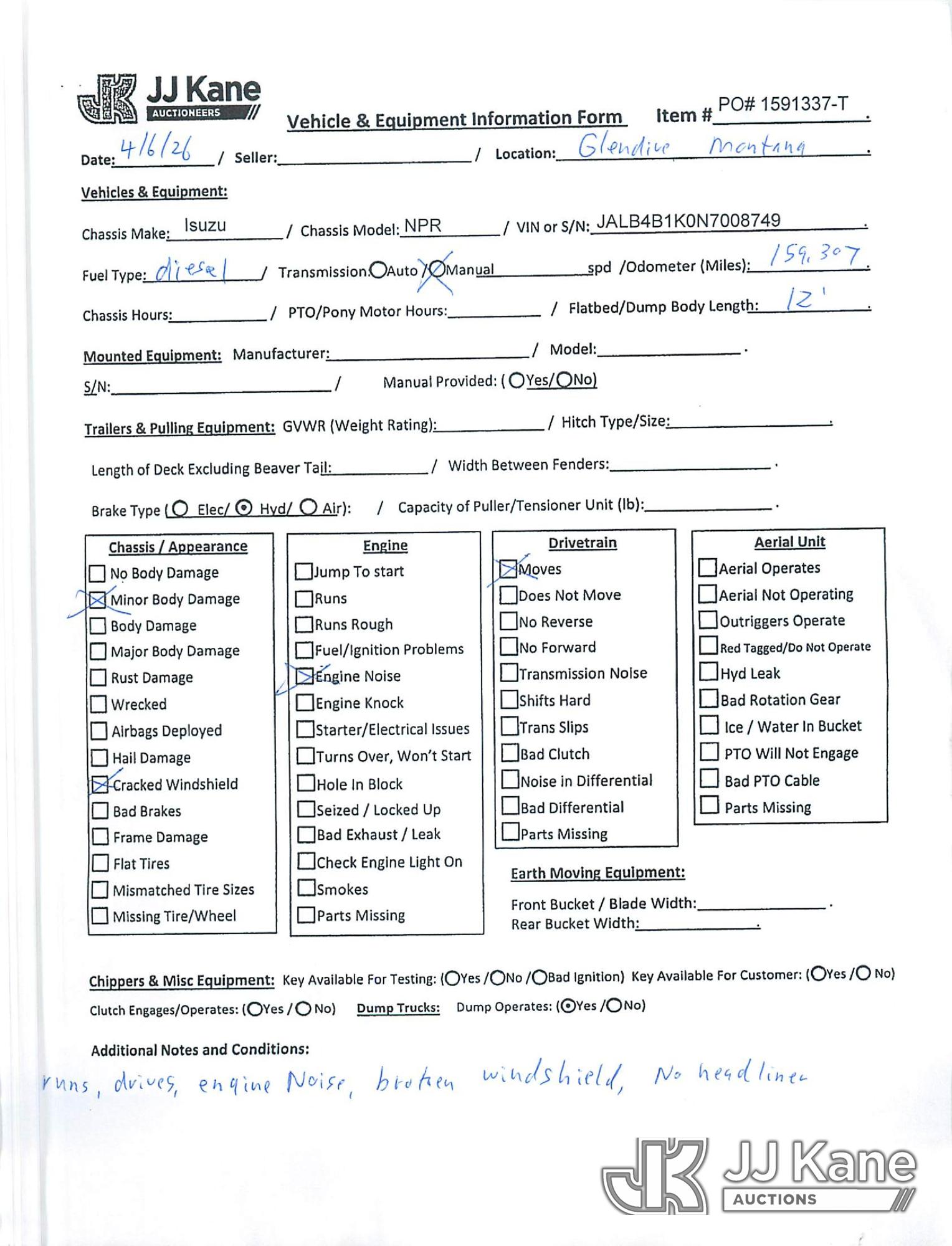 1992 Isuzu NPR Flatbed Truck, 3.9L diesel, Auto, (Exempt from Odometer Disclosure - Reads 159,307 miles) (Runs & Moves) (Engine Noise, Broken Windshield, No Headliner) This is a Titled Item*