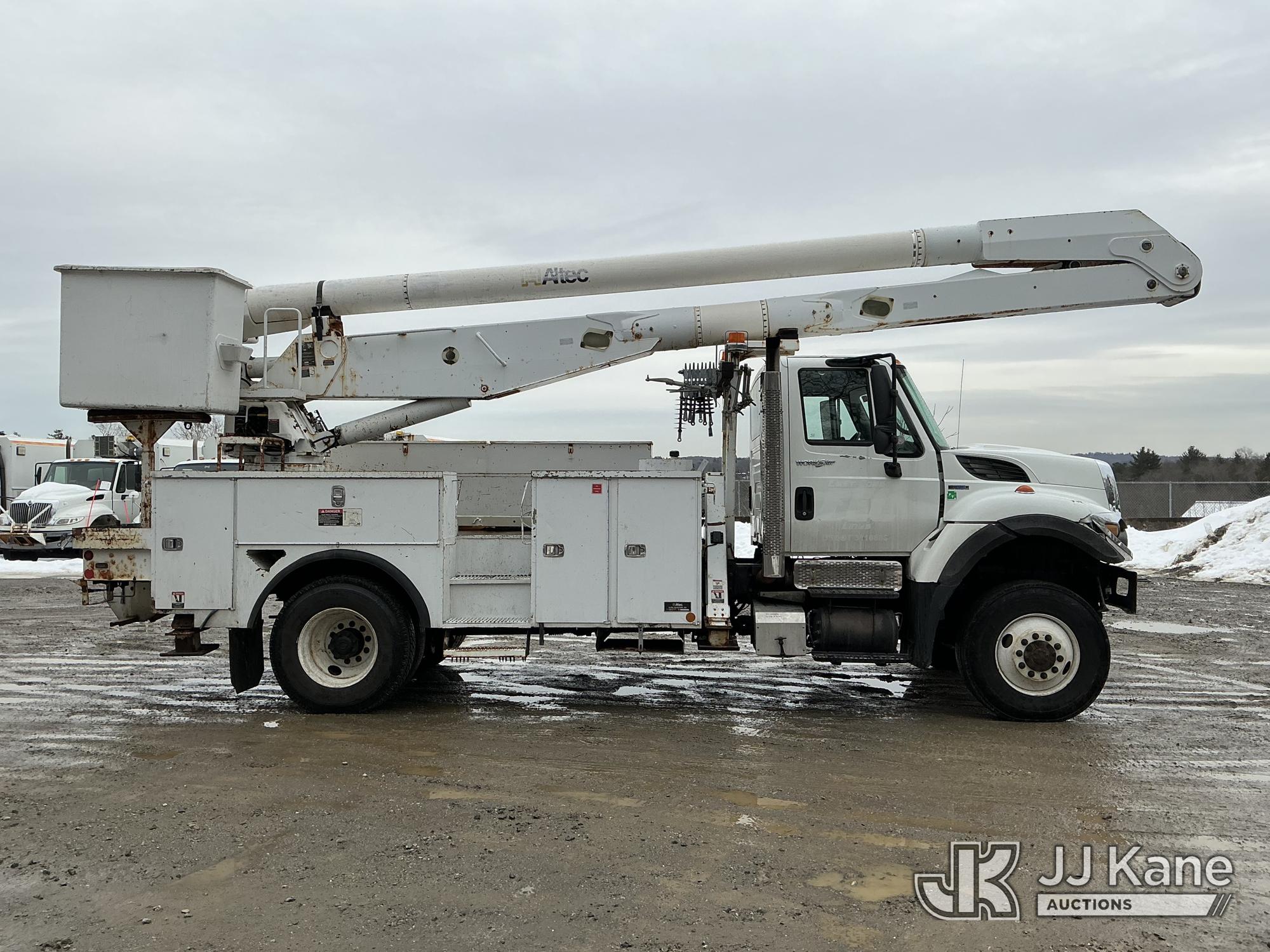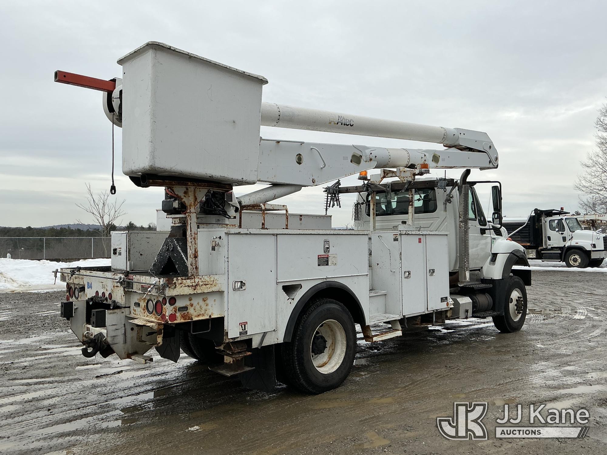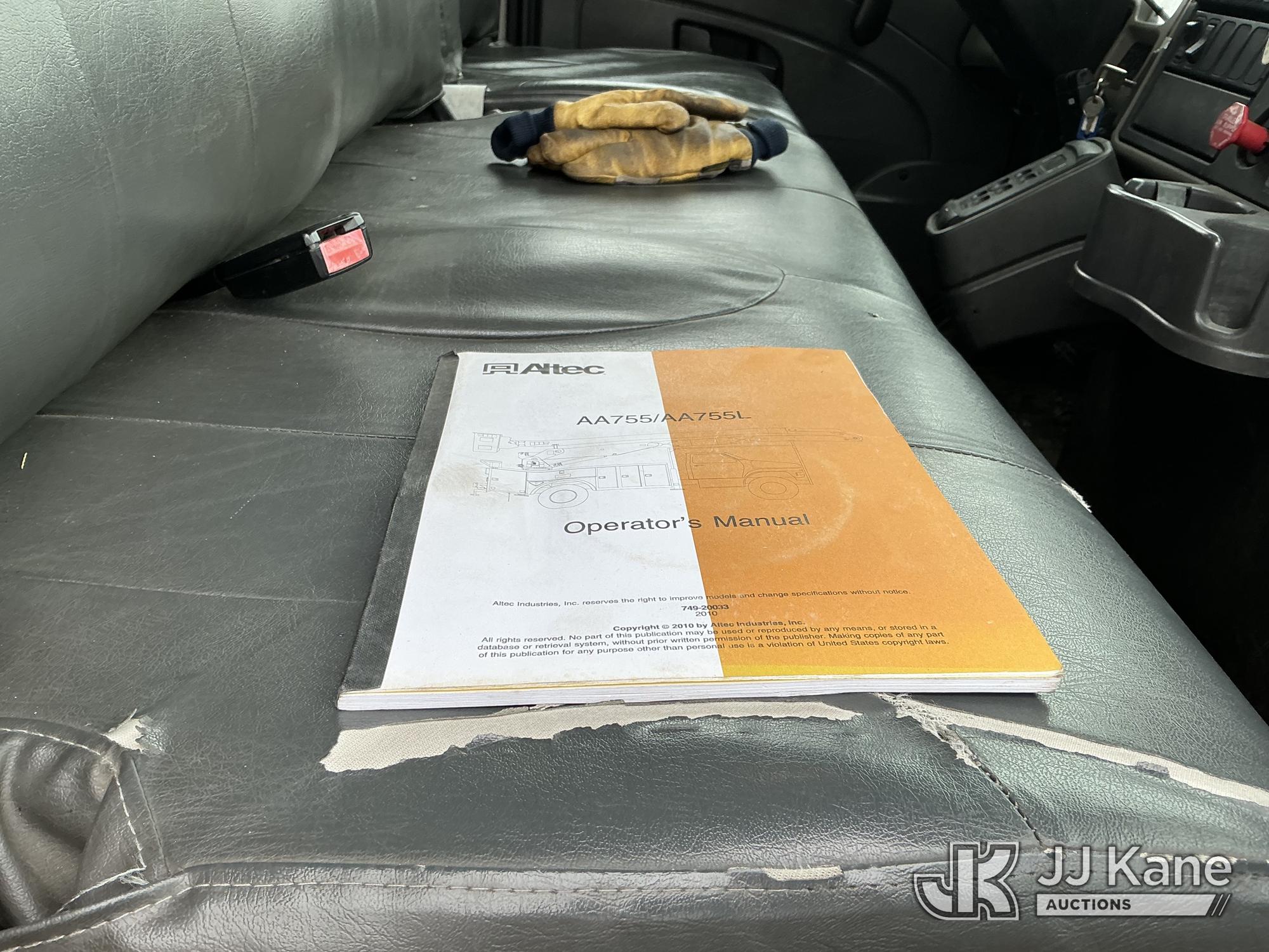 Altec AA755L, 60 ft, Material Handling Bucket Truck s/n 0810BZ6163, with two-man bucket & 4 hyd outriggers, rear mounted on 2011 International 7400 Utility Truck, MaxxForce 7.6L 4X4, diesel, Auto, A/C, (135,689 miles) (Runs & Moves) (PTO Not Engaging, Upper Condition Unknown, ABS Light On) () (Reads 10,324 hours) This is a Titled Item*