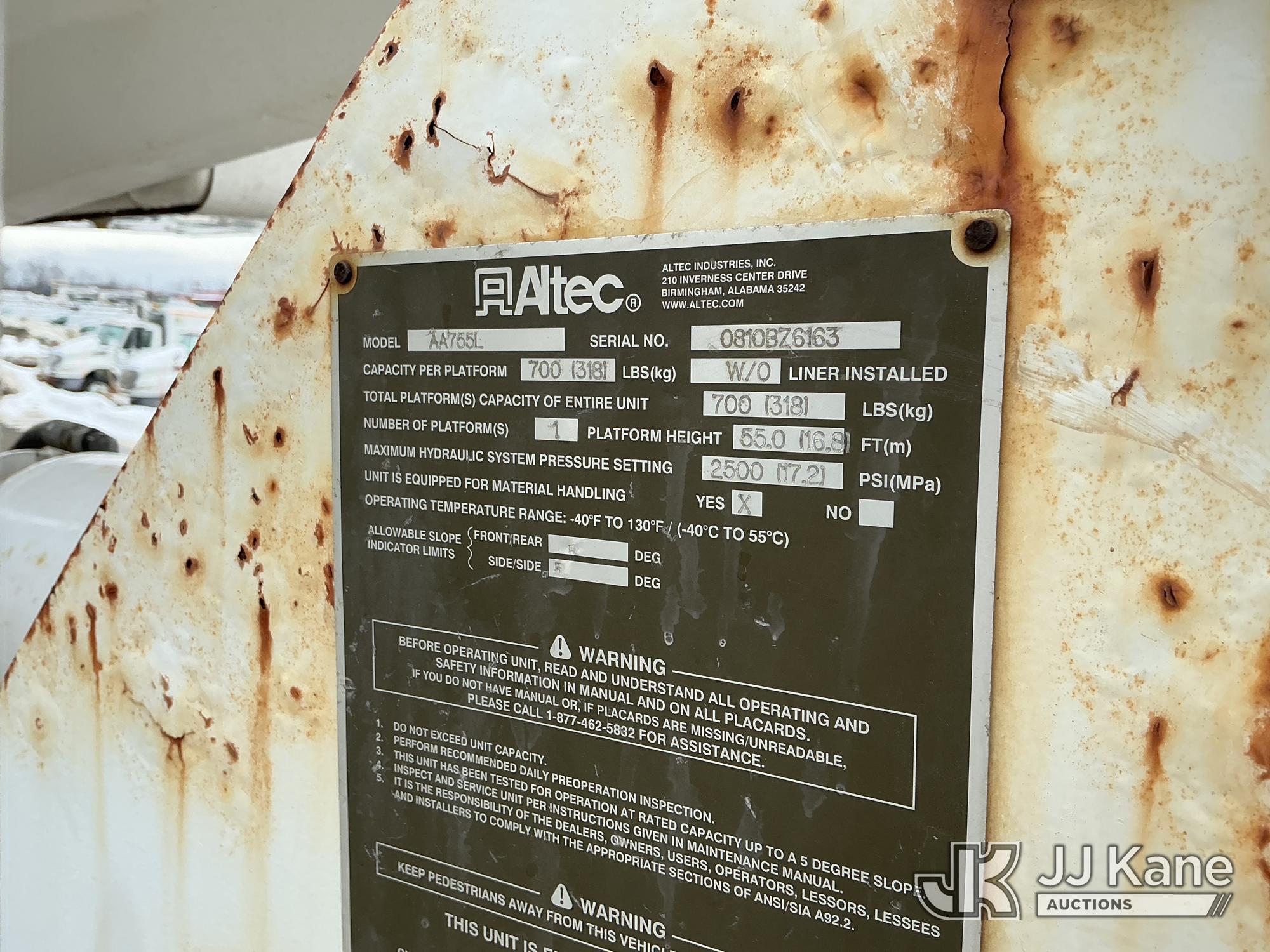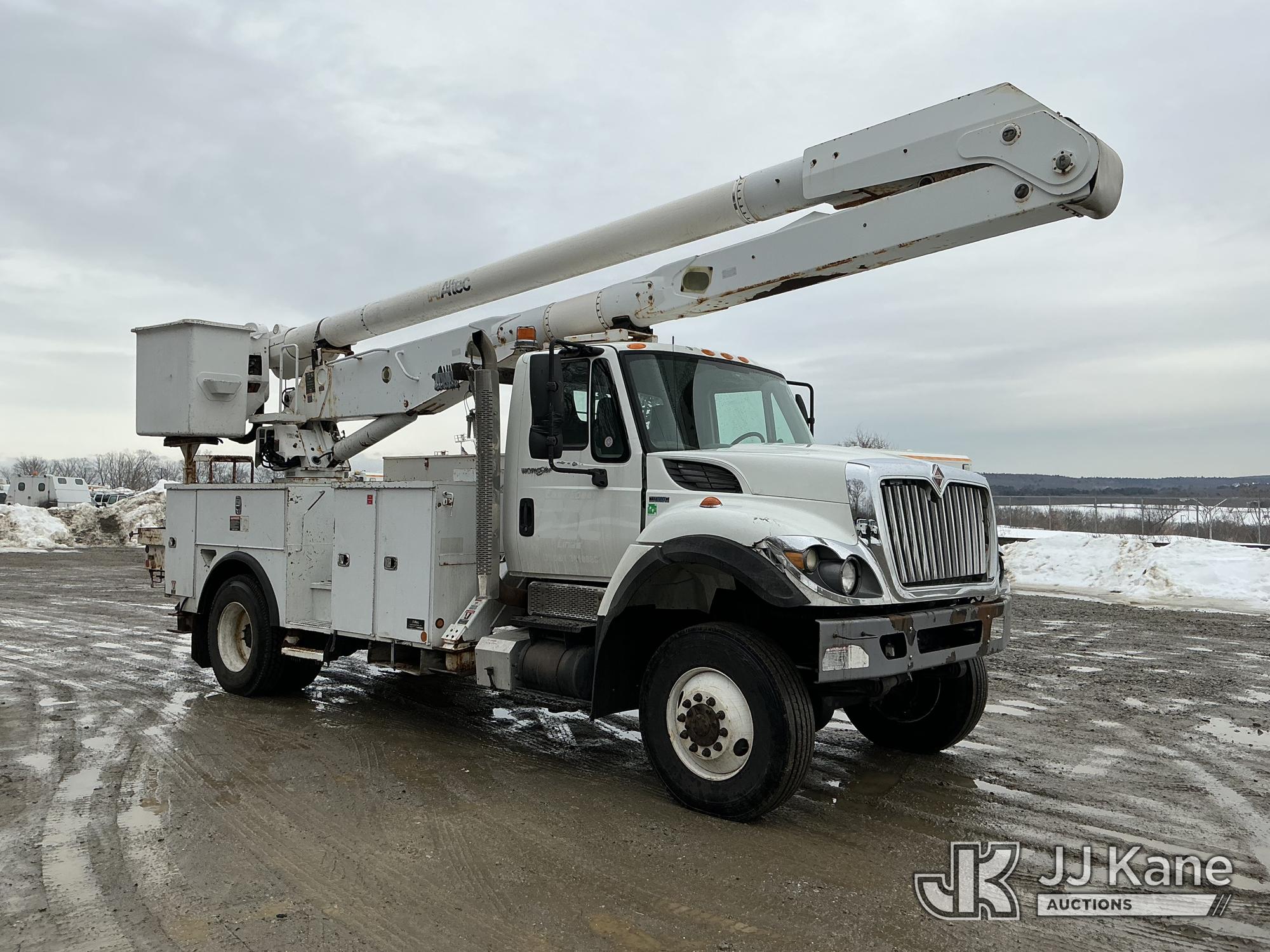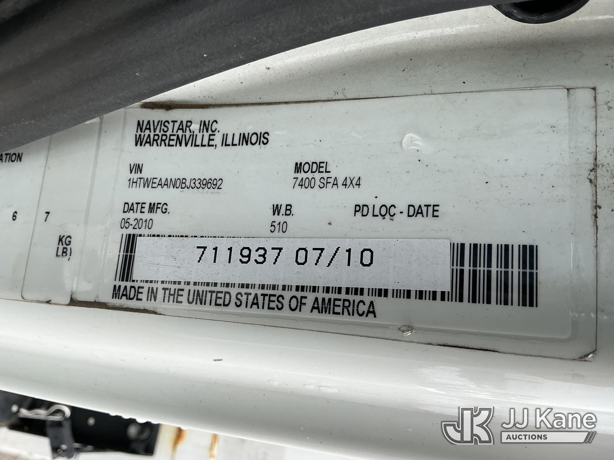 Altec AA755L, 60 ft, Material Handling Bucket Truck s/n 0810BZ6163, with two-man bucket & 4 hyd outriggers, rear mounted on 2011 International 7400 Utility Truck, MaxxForce 7.6L 4X4, diesel, Auto, A/C, (135,689 miles) (Runs & Moves) (PTO Not Engaging, Upper Condition Unknown, ABS Light On) () (Reads 10,324 hours) This is a Titled Item*