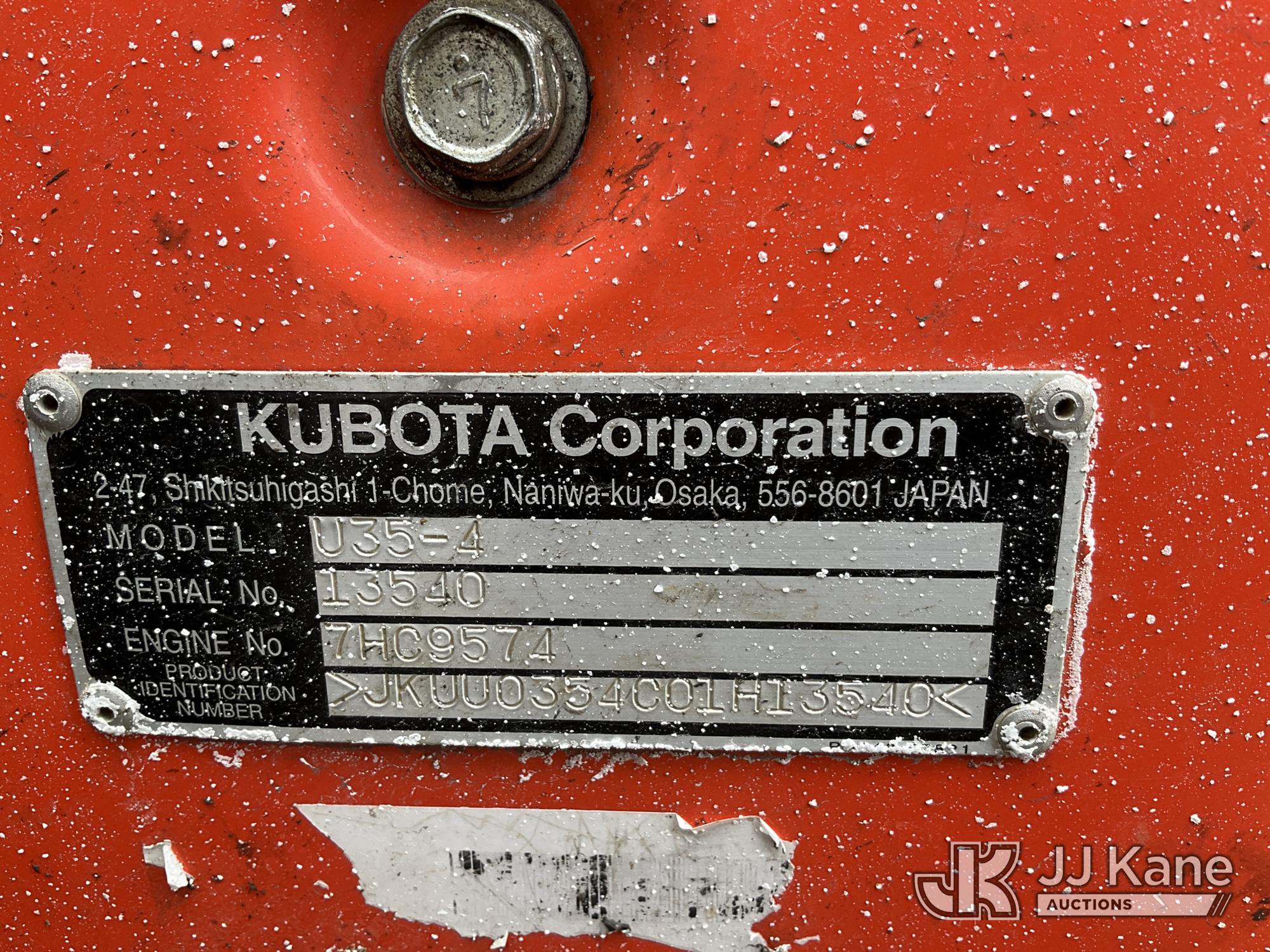 2017 Kubota U35-4 Mini Hydraulic Excavator, s/n JKUU0354001H13540, Kubota diesel, Hydraulic Driven, with rubber tracks, backfill blade, digging bucket & ROPS, (Runs, Moves, Operates) (Reads 4,089 hours)*