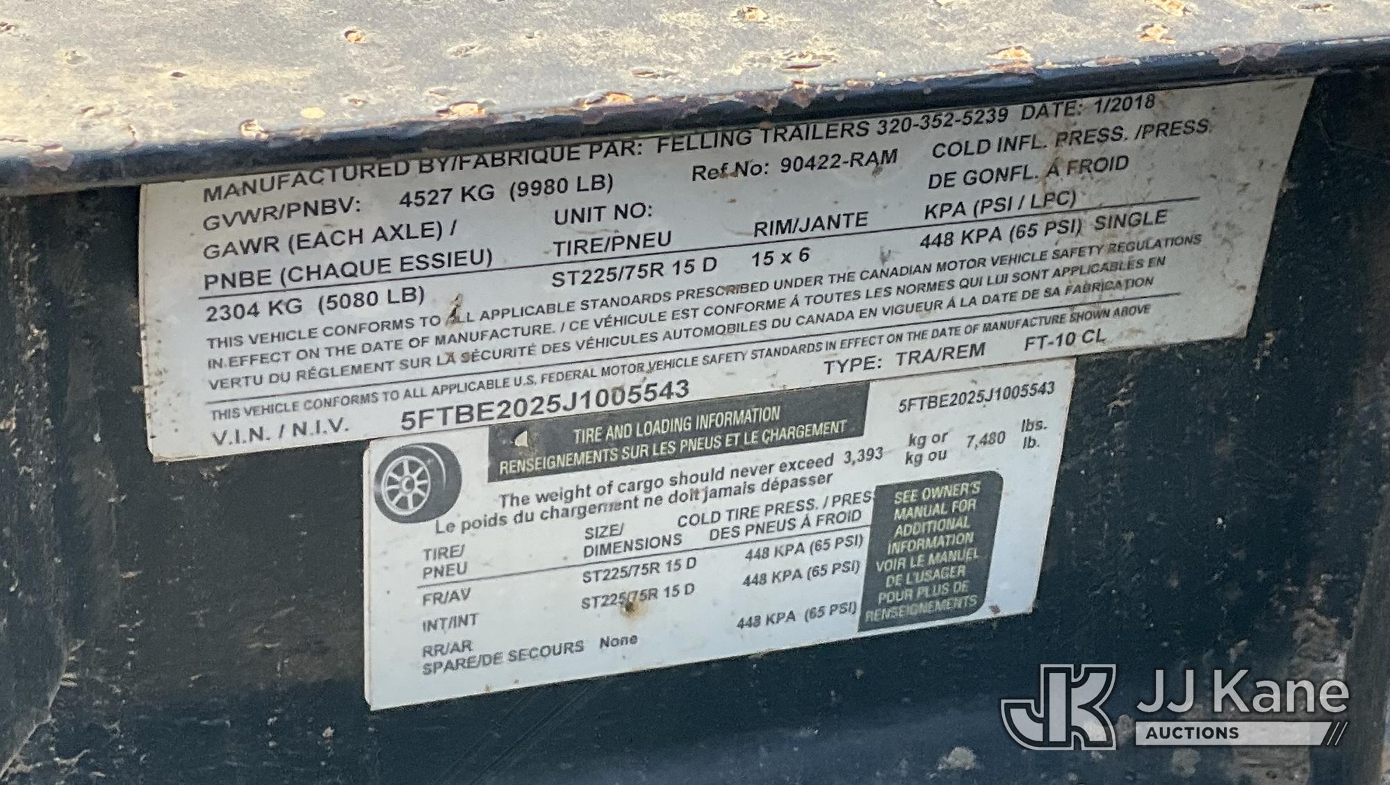 2018 Felling Trailers FT-10CL T/A Tagalong Equipment Trailer, with pintle hitch, trailer length = 14ft 3in, trailer width = 6ft 10in, This is a Titled Item*