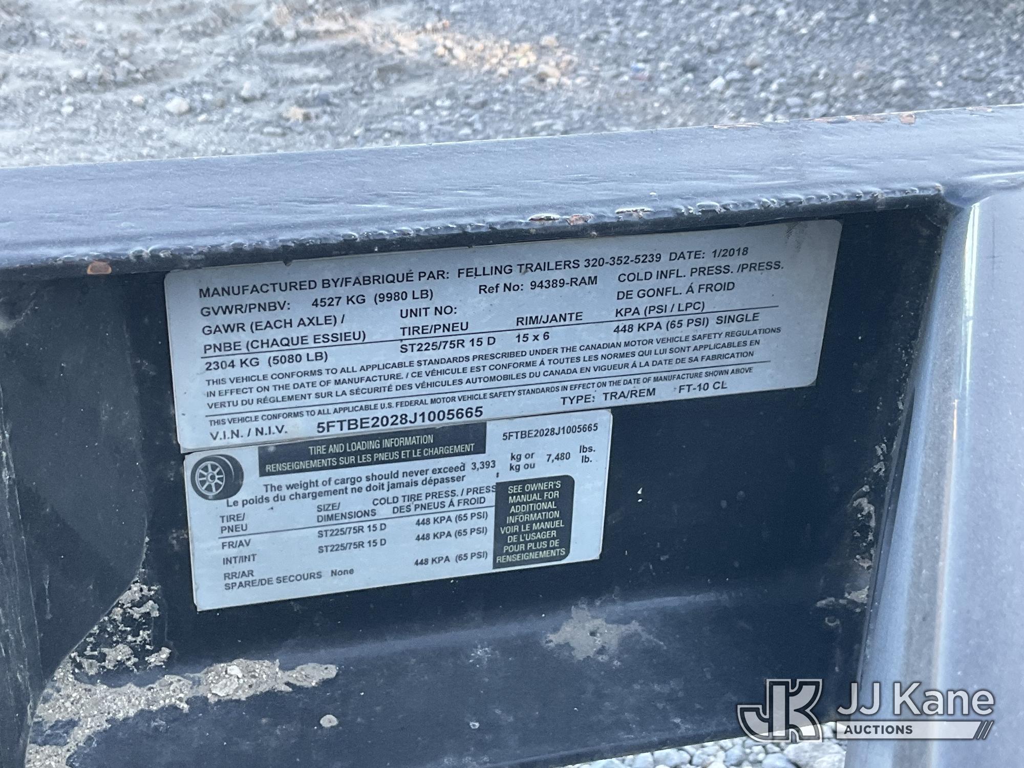 2018 Felling Trailers FT-10CL T/A Tagalong Equipment Trailer, with pintle hitch, trailer length = 14ft 3in, trailer width = 6ft 10in, This is a Titled Item*