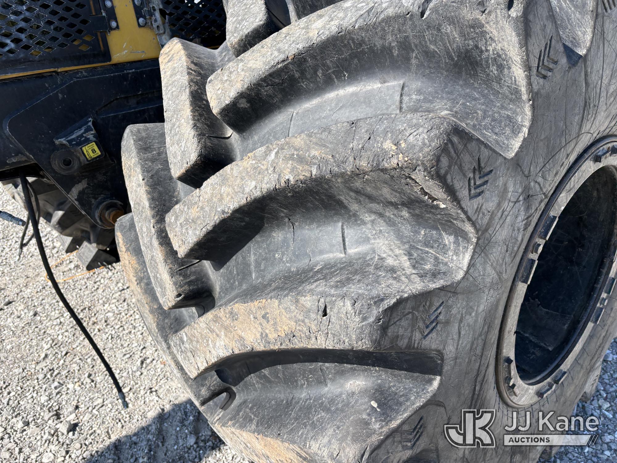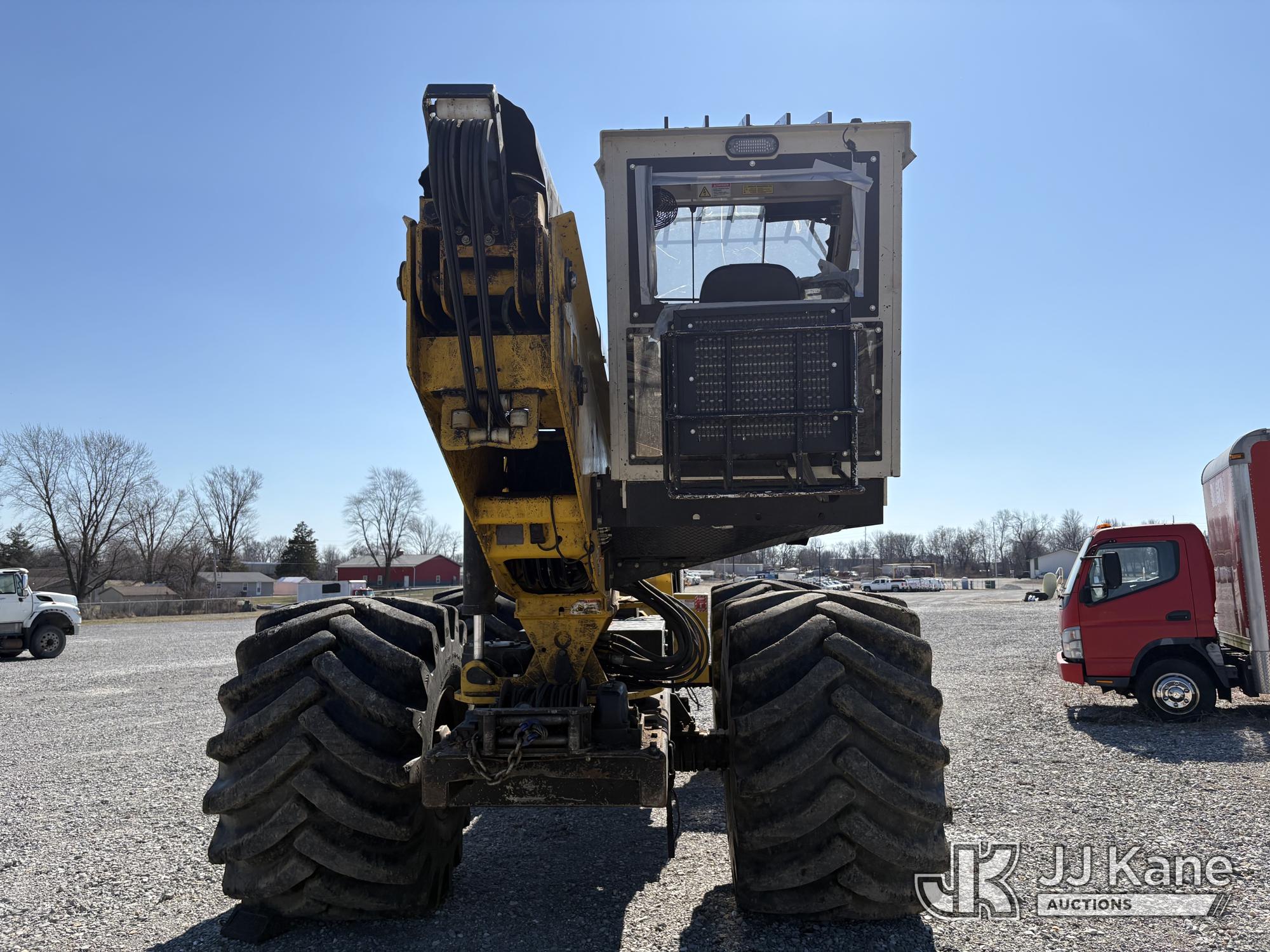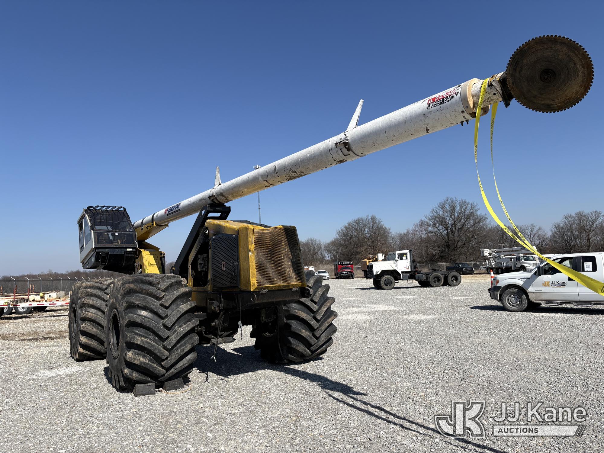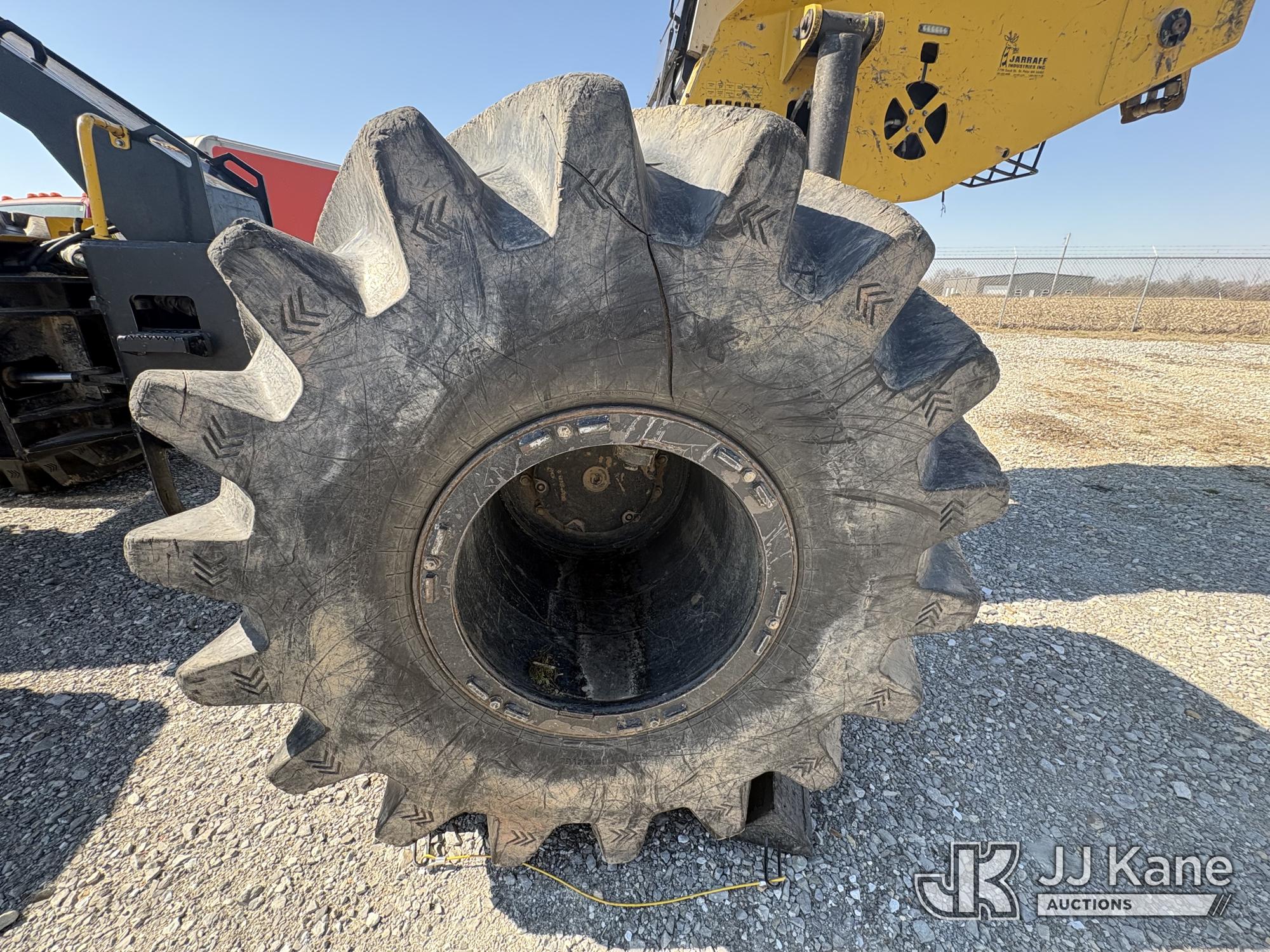 Jarraff Articulating Rubber Tired Tree Saw, s/n JWH750820A1796, diesel, Hydrostatic, with rear winch, (Not Running, Condition Unknown, Engine Damage, Paint & Body Damage, Unit Does Free Roll) (Seller States: Bad Engine Blow Hole in Block, Buyer Responsible for all Loading/Removal of Unit.)*