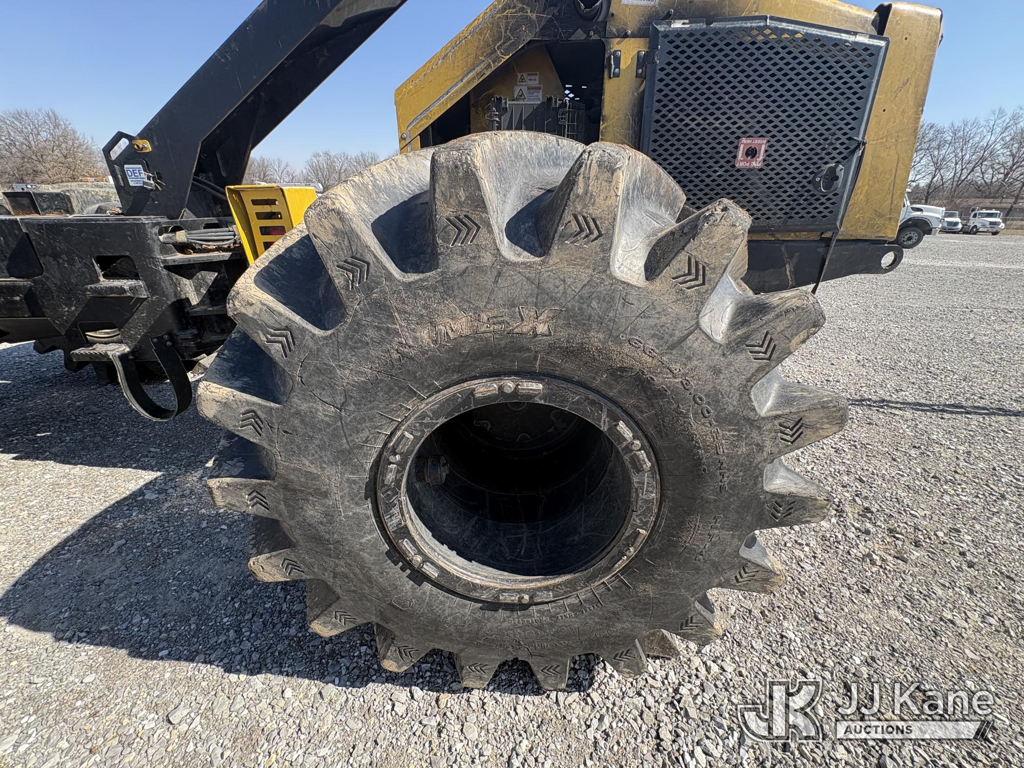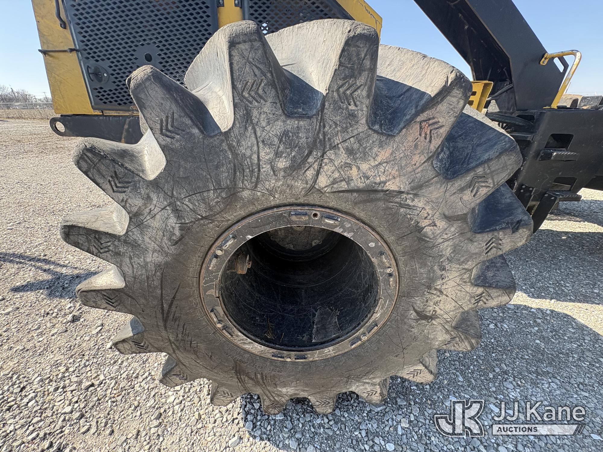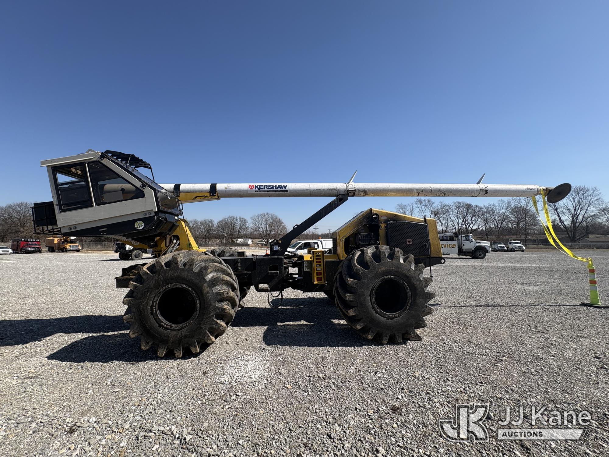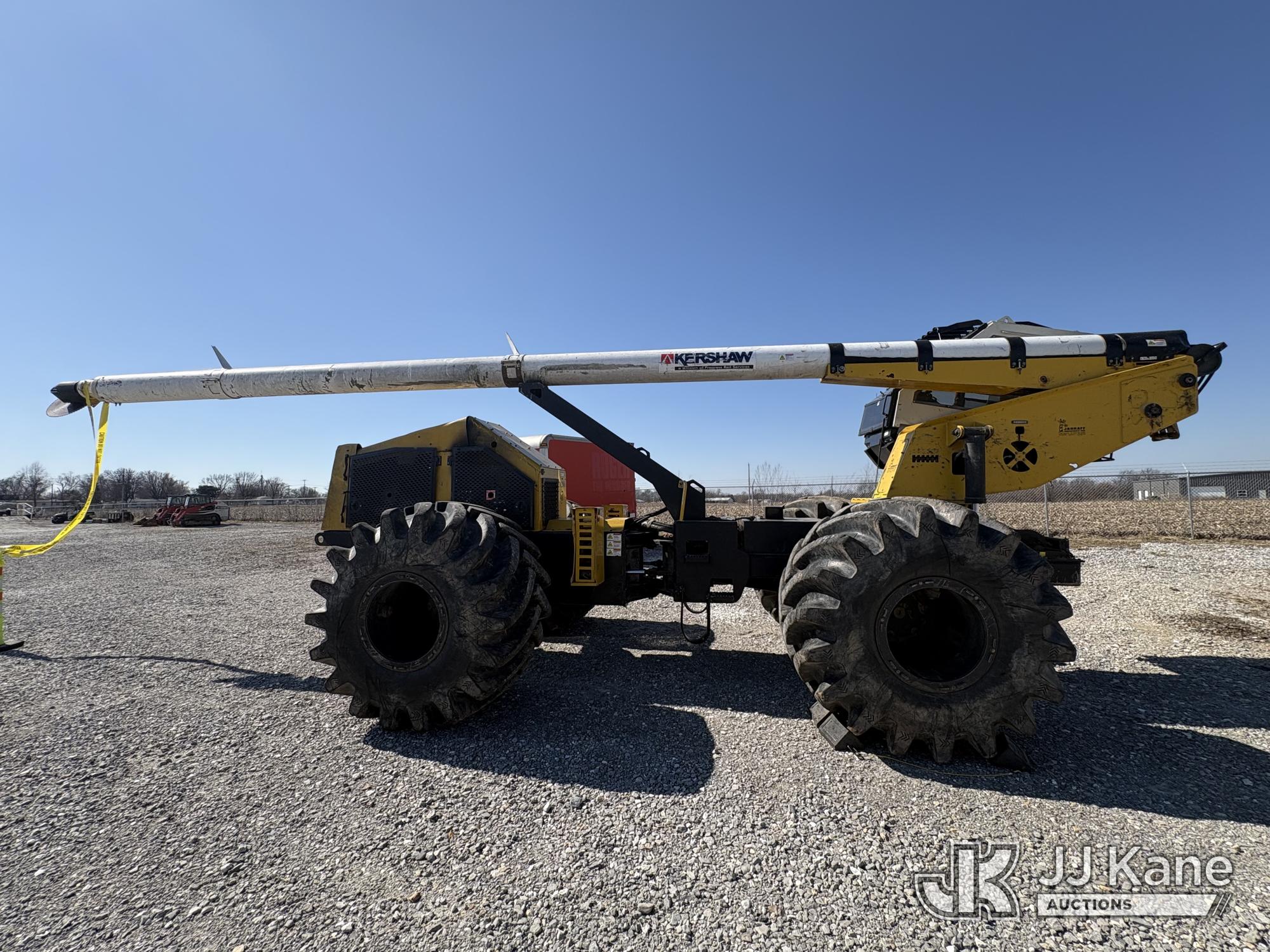 Jarraff Articulating Rubber Tired Tree Saw, s/n JWH750820A1796, diesel, Hydrostatic, with rear winch, (Not Running, Condition Unknown, Engine Damage, Paint & Body Damage, Unit Does Free Roll) (Seller States: Bad Engine Blow Hole in Block, Buyer Responsible for all Loading/Removal of Unit.)*