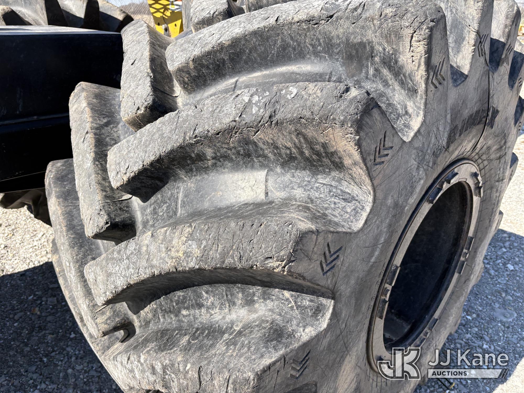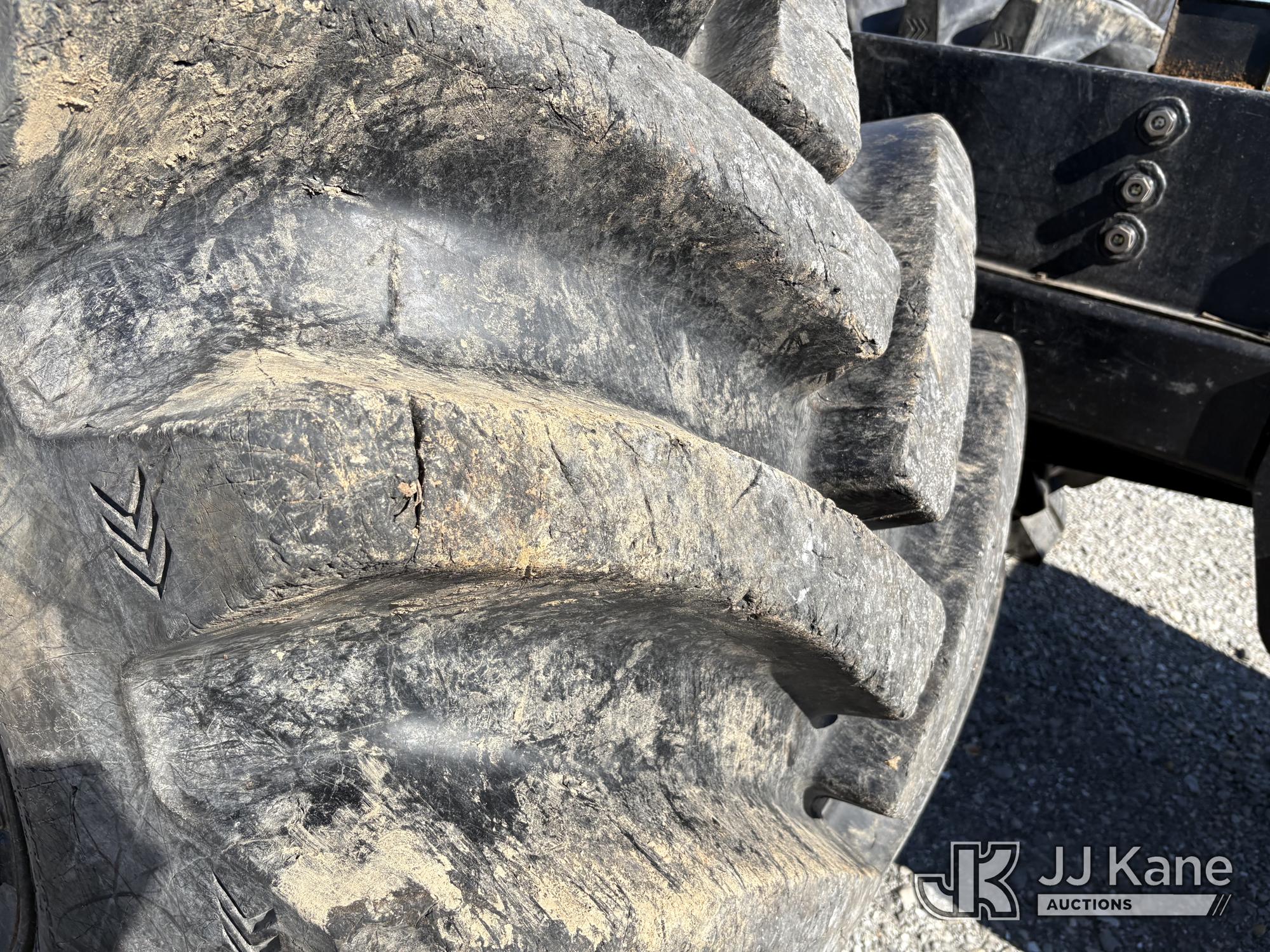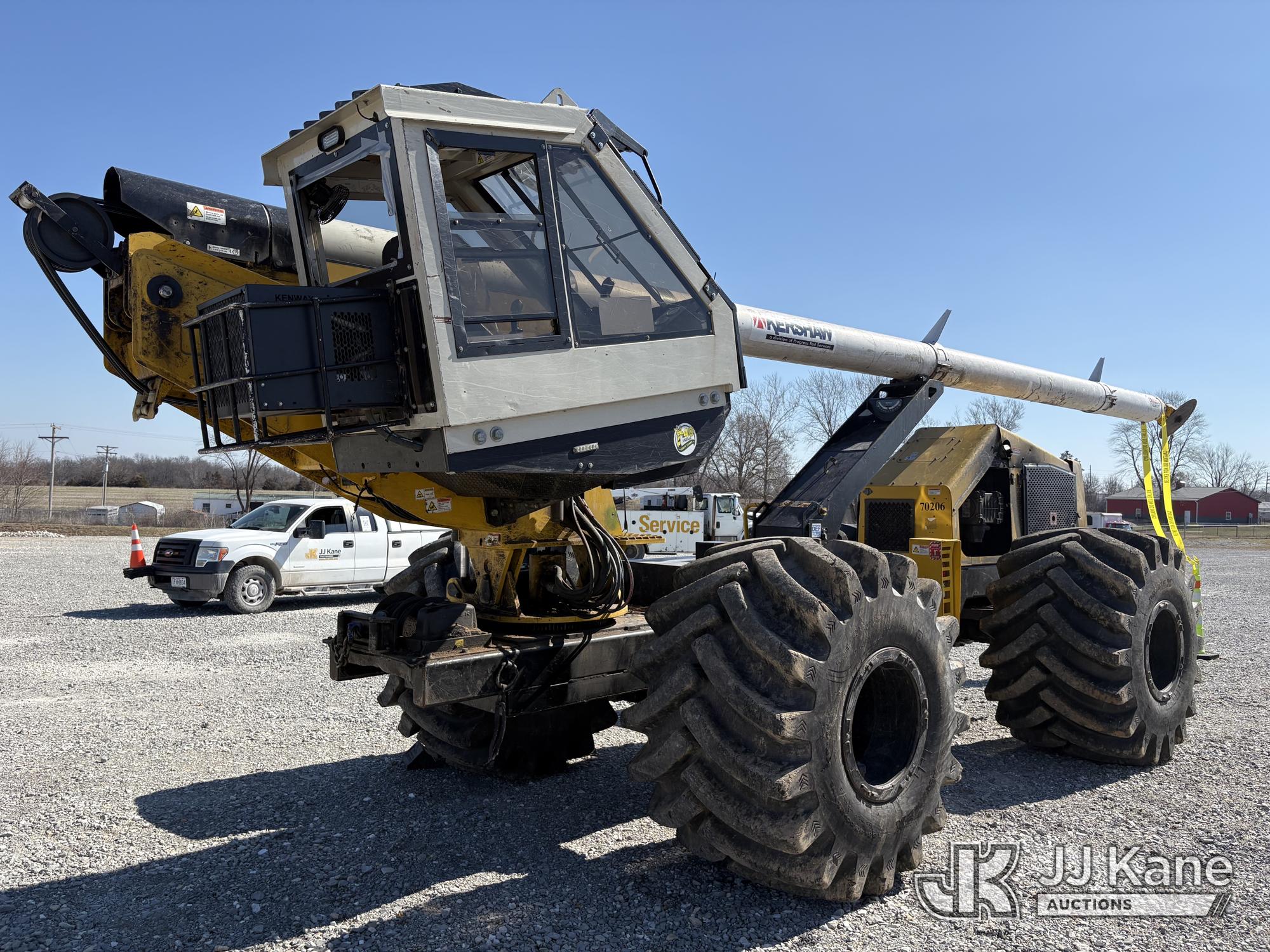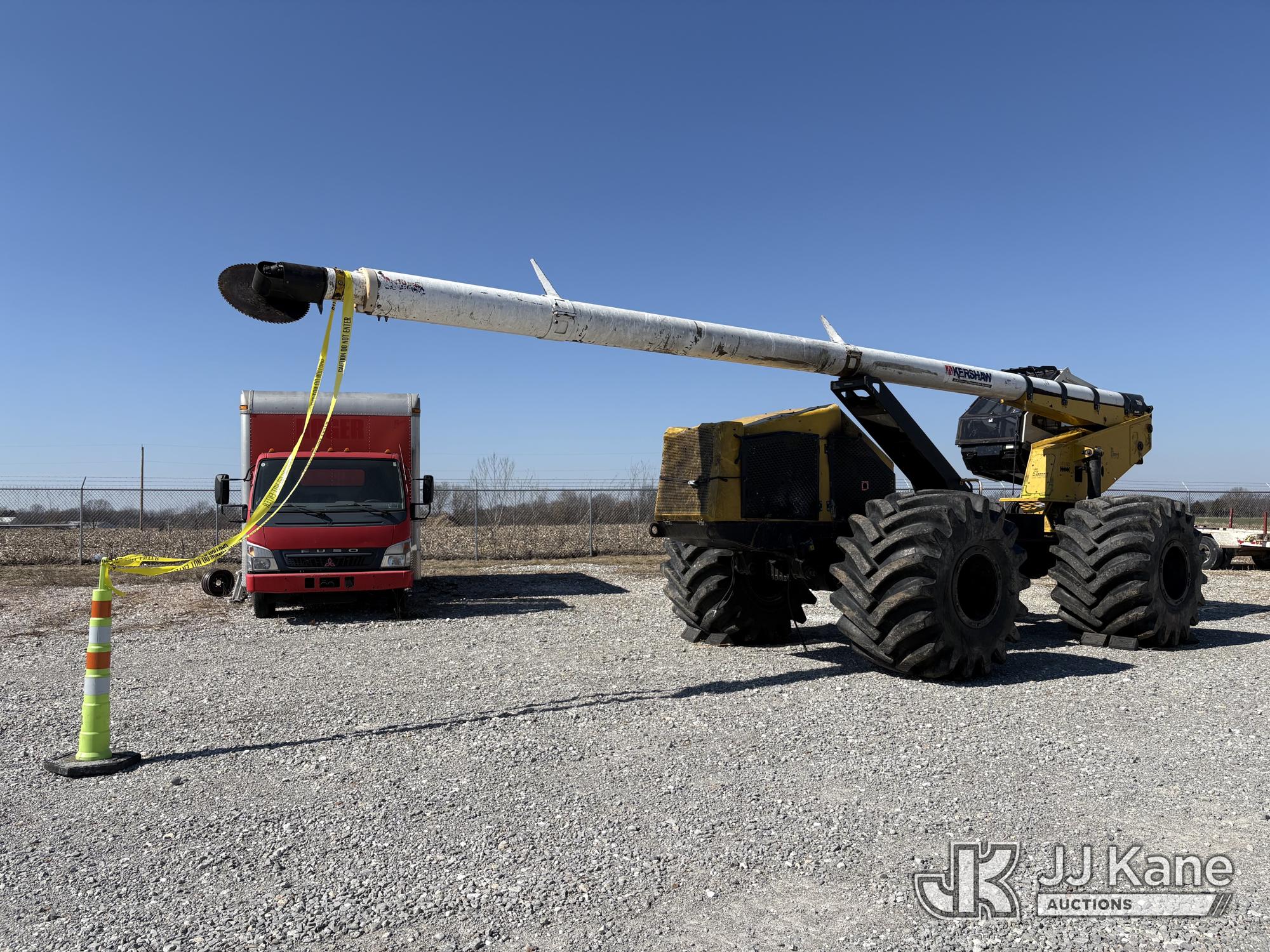 Jarraff Articulating Rubber Tired Tree Saw, s/n JWH750820A1796, diesel, Hydrostatic, with rear winch, (Not Running, Condition Unknown, Engine Damage, Paint & Body Damage, Unit Does Free Roll) (Seller States: Bad Engine Blow Hole in Block, Buyer Responsible for all Loading/Removal of Unit.)*