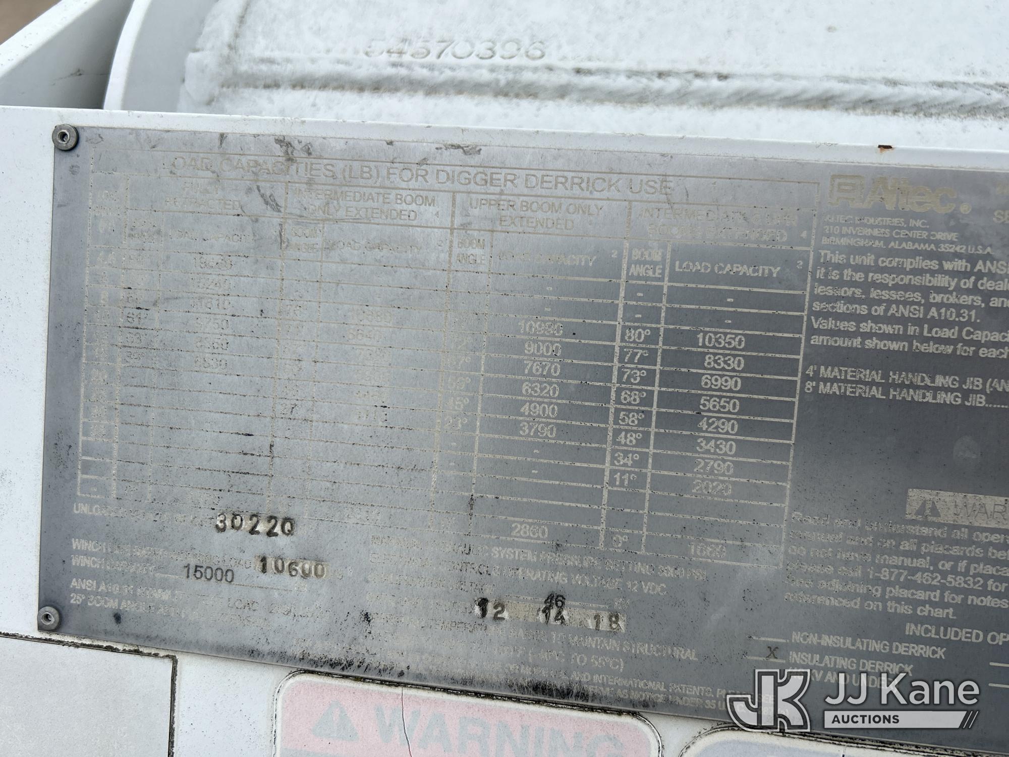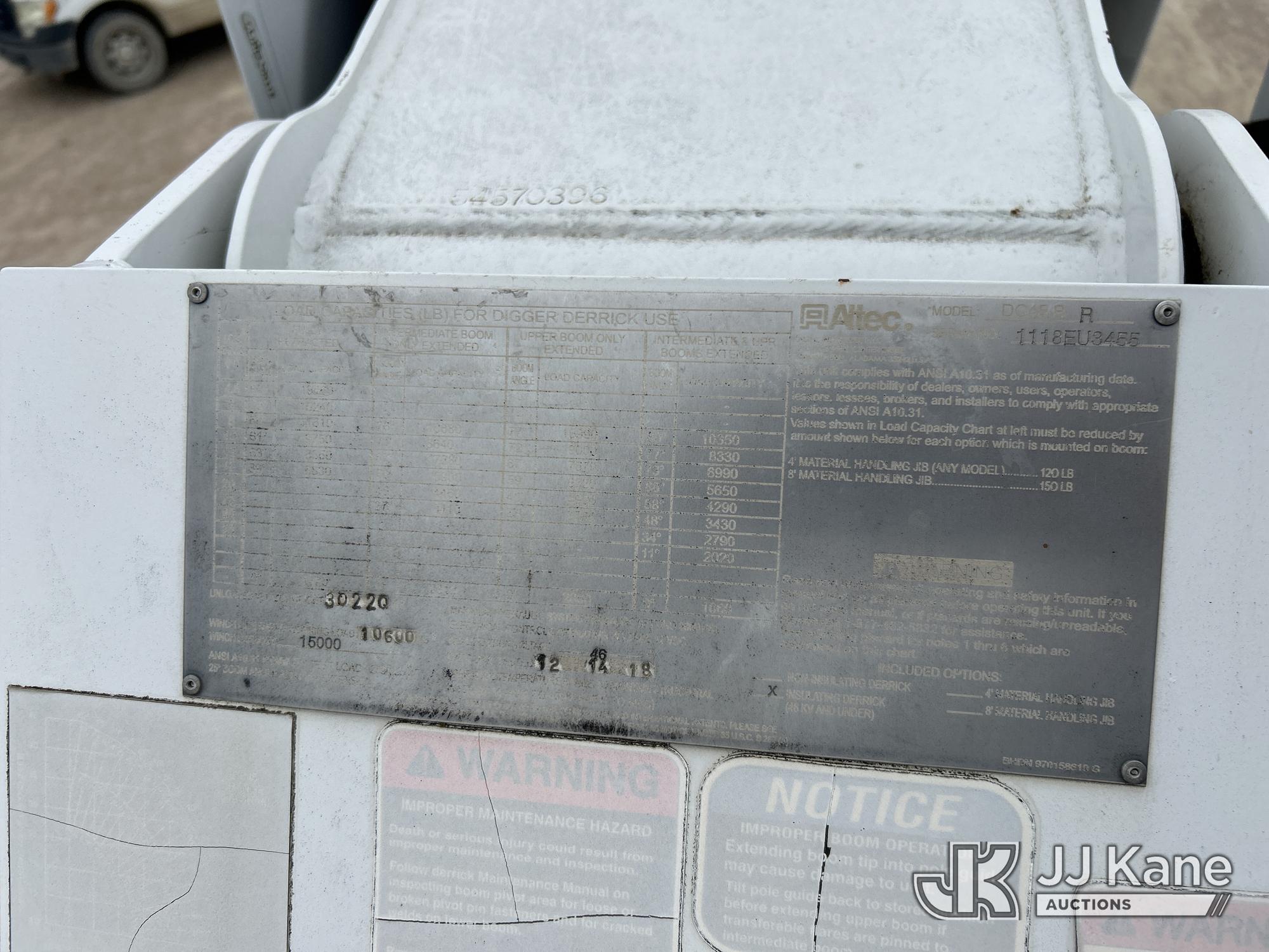 Altec DC45BR, 19,480 Lb Digger Derrick s/n 1118EU3455, with 45ft sheave height, 2spd digger, pole guides, tip winch, riding console, rear mounted on 2019 Freightliner M2 Utility Truck, Cummins L9 diesel, Auto, A/C, (26,522 miles) (Runs, Moves & Upper Operates) (Jump To Start) (Reads 3,212 hours) This is a Titled Item*