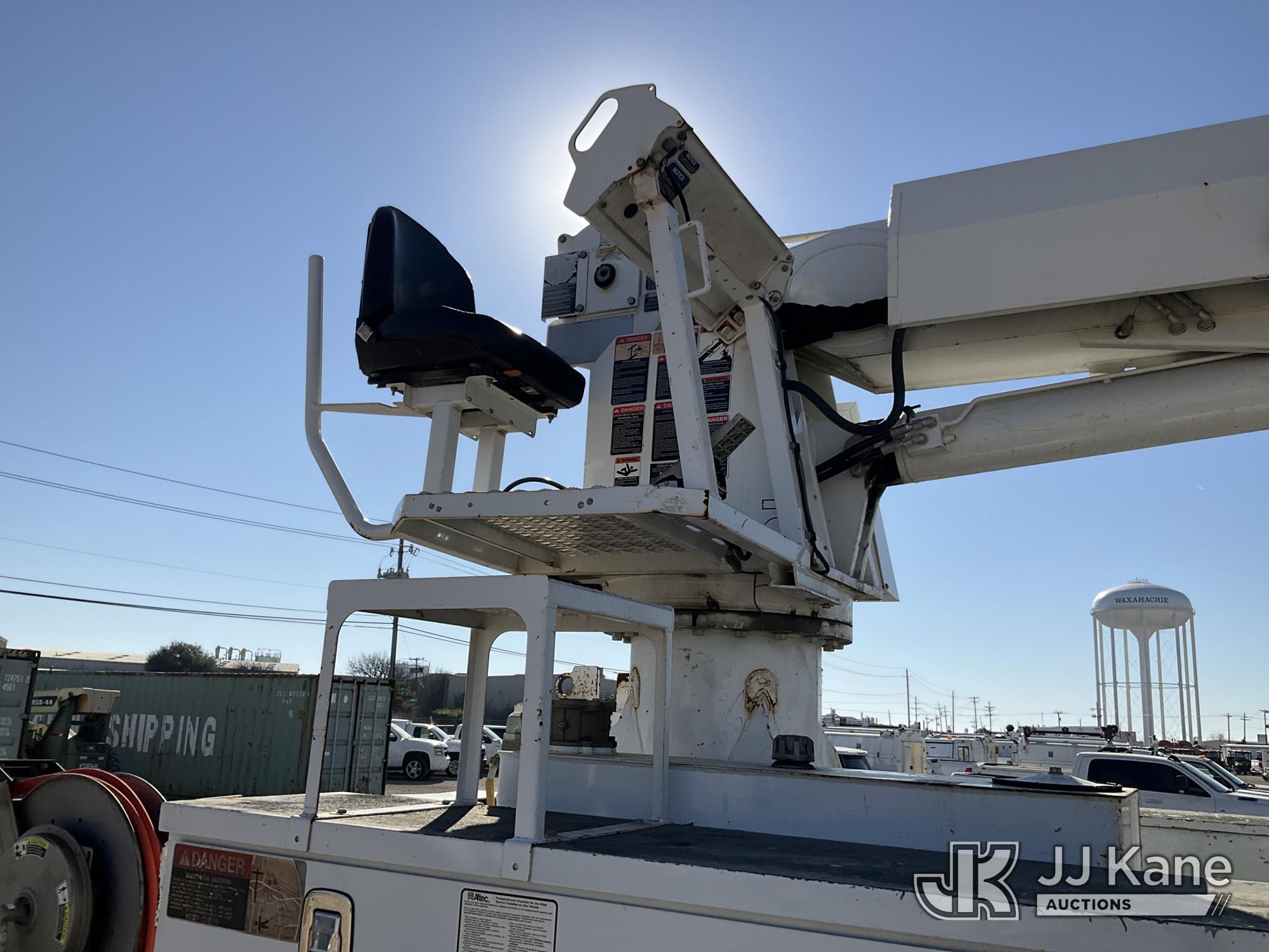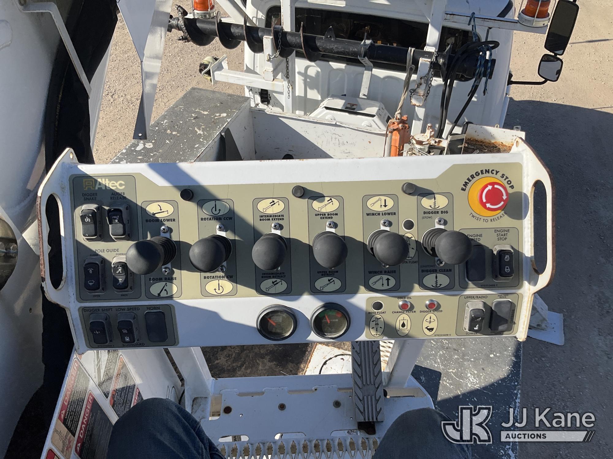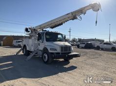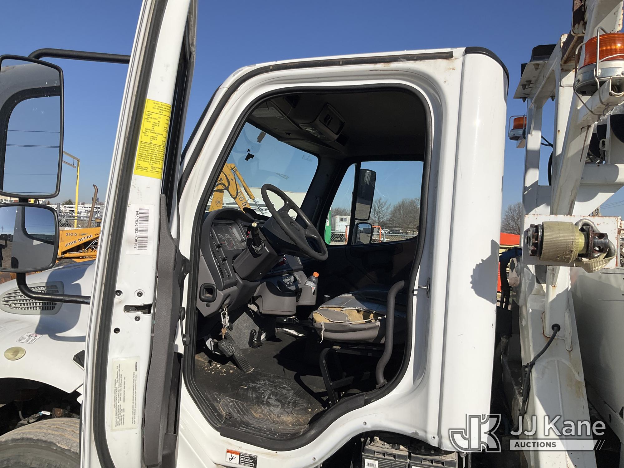 Altec DM47B-TR, 23,790 Lb Derrick Digger s/n 0218FR3889, with 47 ft sheave height, 2 spd digger, upper controls, heel winch, pole grabs & riding console, rear mounted on 2019 Freightliner M2 106 Utility Truck, Cummins ISB6.7 Diesel Auto, A/C, with Front Bumper Winch and Capstan Winch, (114,209 miles) (Runs, Moves & Operates) (Jump To Start, Driver Door Does Not Open From Outside ) (Reads 8,724 hours) This is a Titled Item*