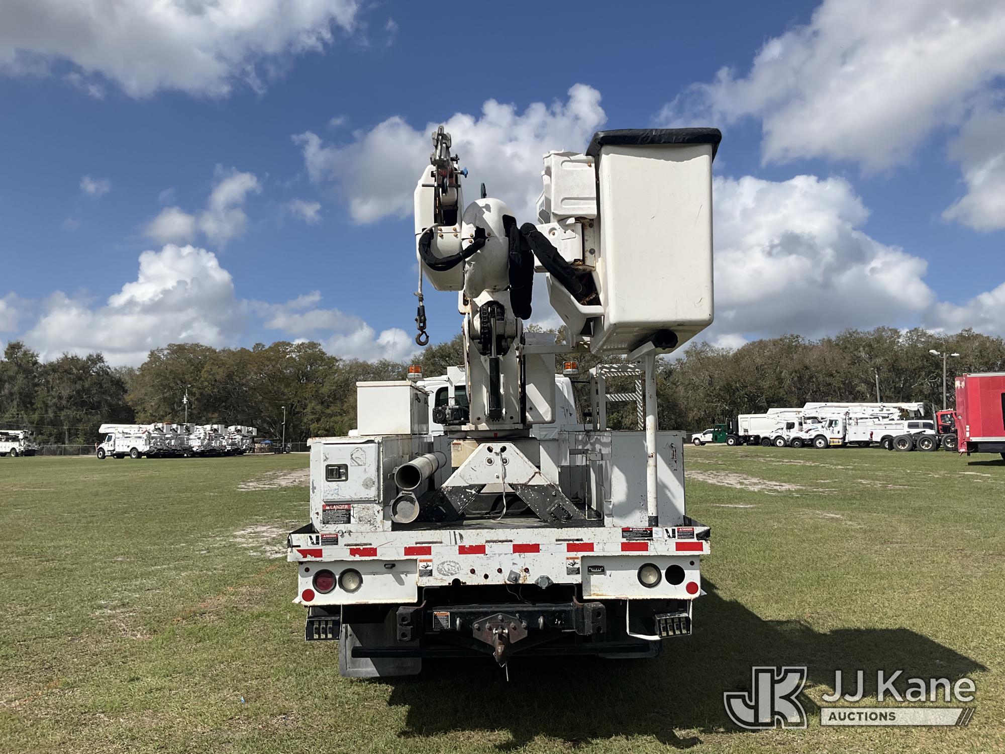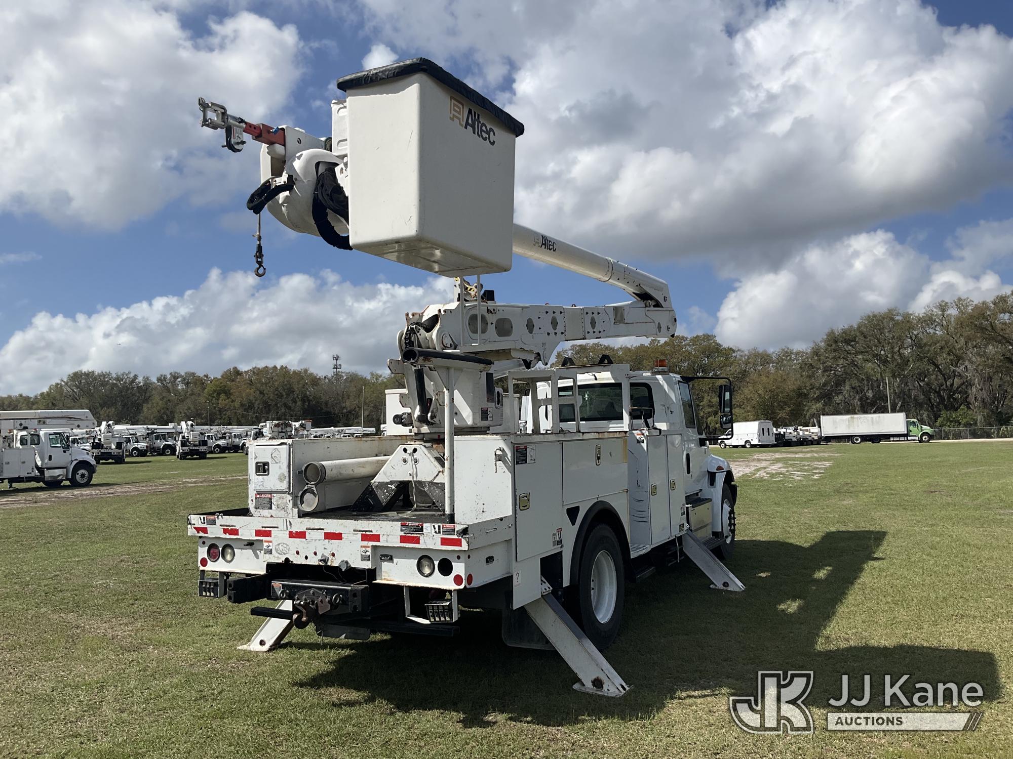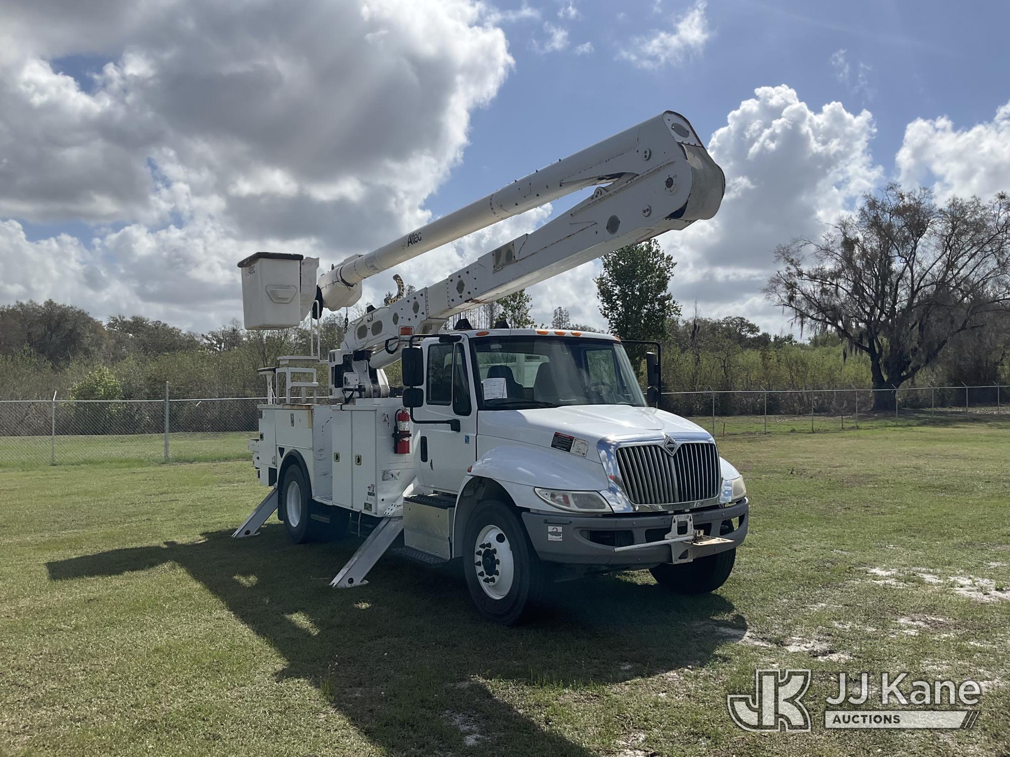 Altec AA55, 60 ft, Material Handling Bucket Truck s/n 1016FH3677, with two-man bucket & 4 hyd outriggers, rear mounted on 2017 International 4300 Utility Truck, 6.7L Diesel, 4X2, Auto, A/C, (91,148 miles) (Runs, Moves, Upper Operates) (Check Engine Light On, Radio Not Included, Missing Upper Plate) (FL Residents Purchasing Titled Items – tax, title & registration fees will be collected at the maximum rate of $400.00 under 25,999 and $800.00 for Over 26,000 and $250.00 trailers – Proof of insurance is mandatory; Out of State Residents Purchasing Title Items – tax will be collected based upon your state rate.) (Reads 11,863 hours) This is a Titled Item*