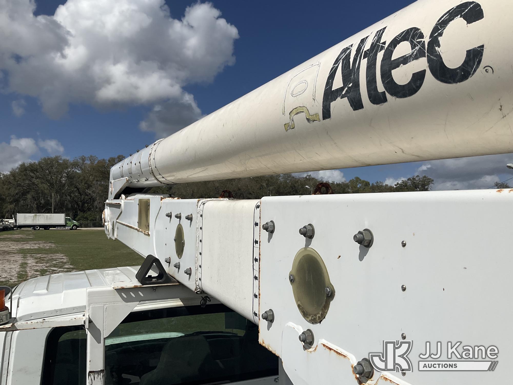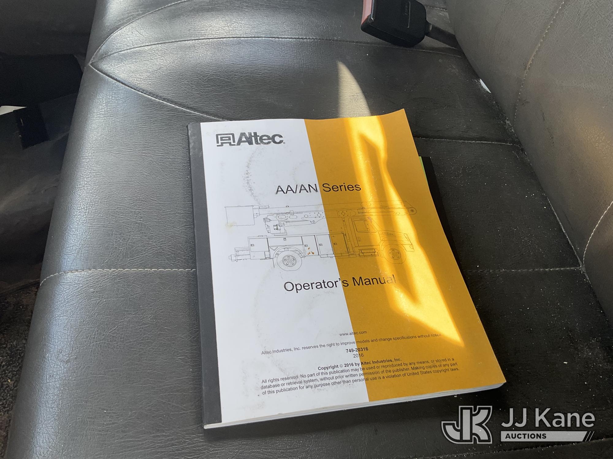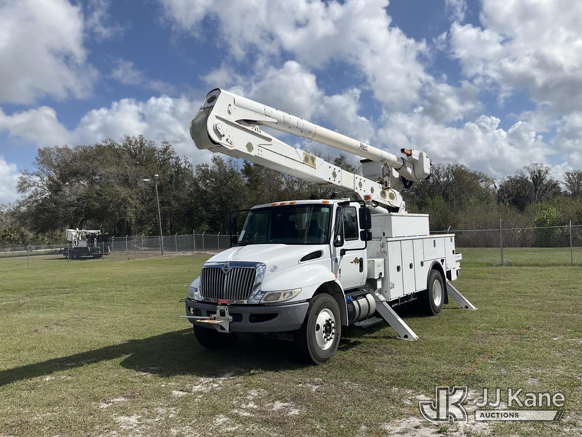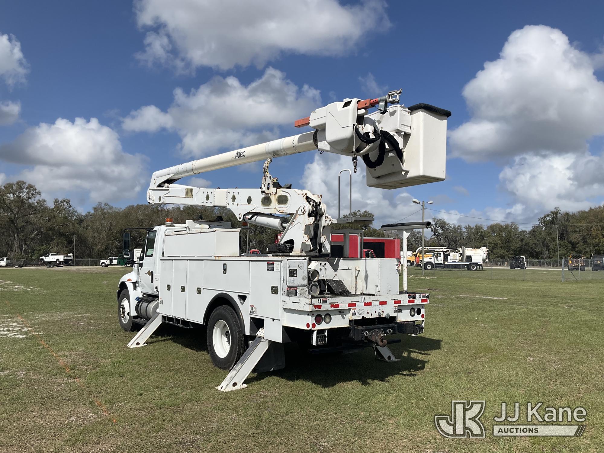 Altec AA55, 60 ft, Material Handling Bucket Truck s/n 1016FH3677, with two-man bucket & 4 hyd outriggers, rear mounted on 2017 International 4300 Utility Truck, 6.7L Diesel, 4X2, Auto, A/C, (91,148 miles) (Runs, Moves, Upper Operates) (Check Engine Light On, Radio Not Included, Missing Upper Plate) (FL Residents Purchasing Titled Items – tax, title & registration fees will be collected at the maximum rate of $400.00 under 25,999 and $800.00 for Over 26,000 and $250.00 trailers – Proof of insurance is mandatory; Out of State Residents Purchasing Title Items – tax will be collected based upon your state rate.) (Reads 11,863 hours) This is a Titled Item*