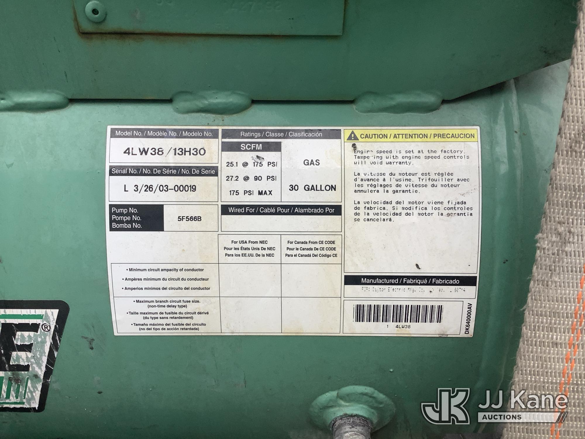 | Conditions / Miscellaneous: | Speedaire 4LW38 30 Gallon Gas-powered AIr Compressor |