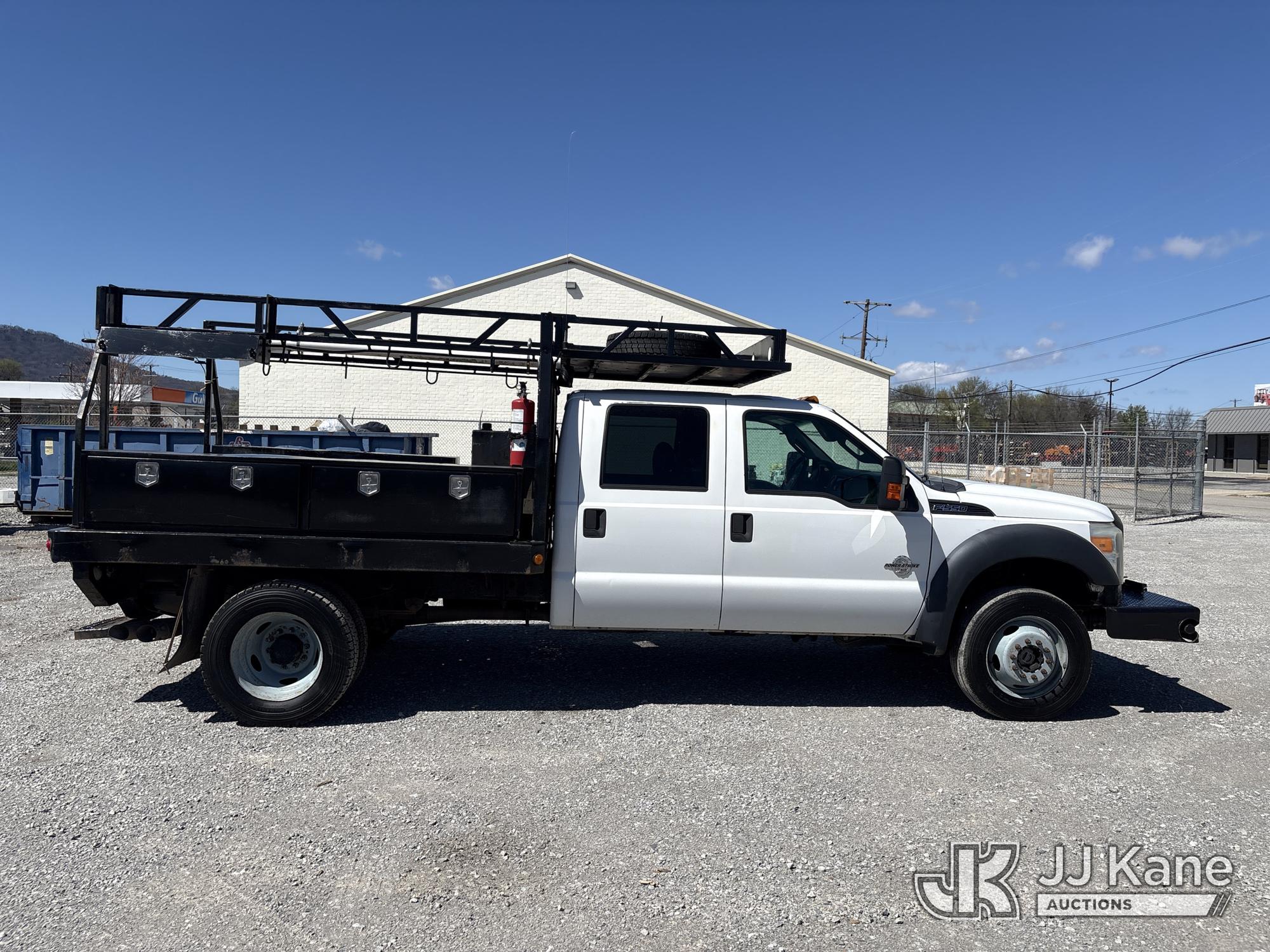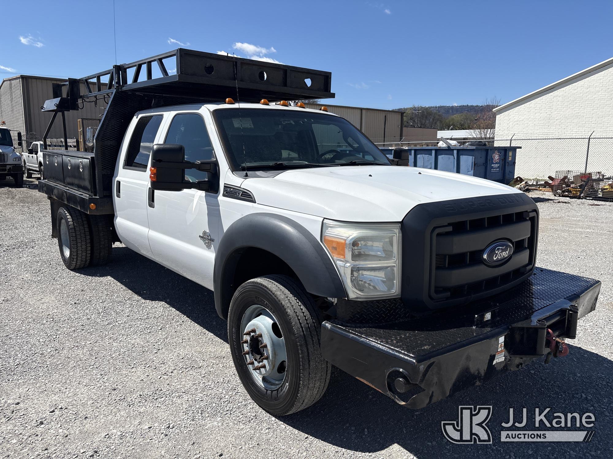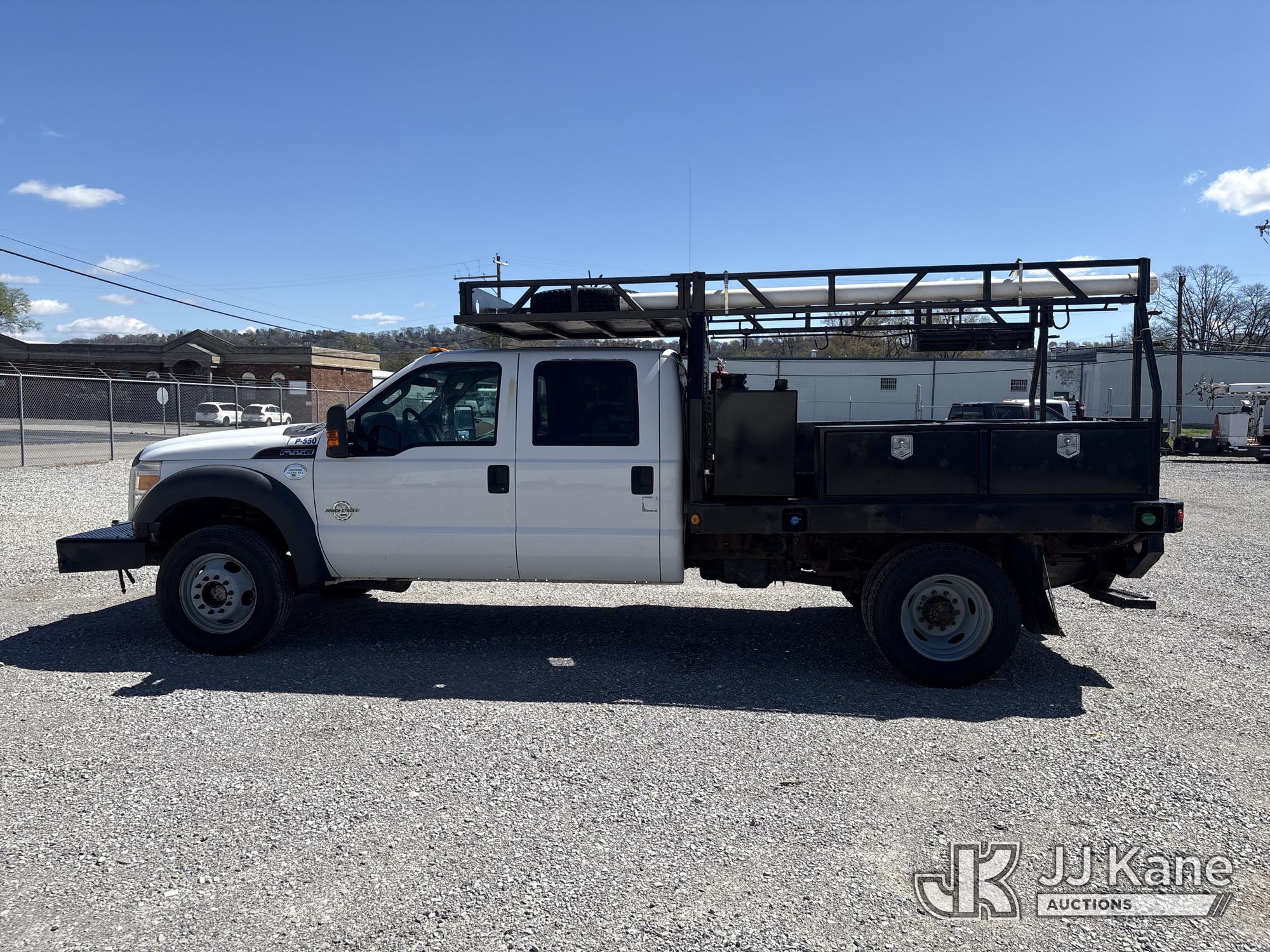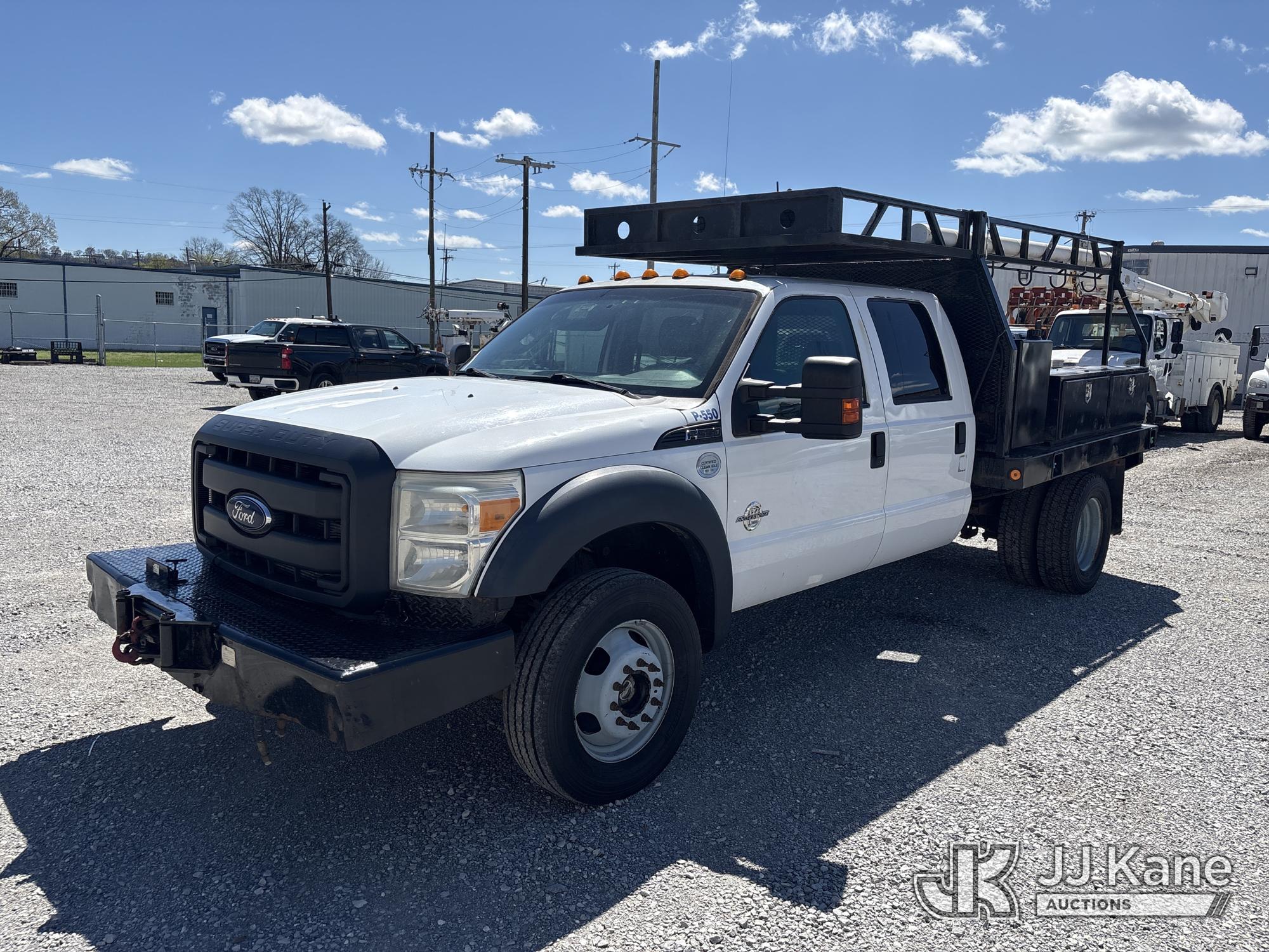 2013 Ford F-550 Crew-Cab Flatbed/Service Truck, 6.7L diesel, 4WD, Auto, A/C, with front winch, (202,459 miles) (Runs & Moves) (Check Engine Light On) This is a Titled Item*