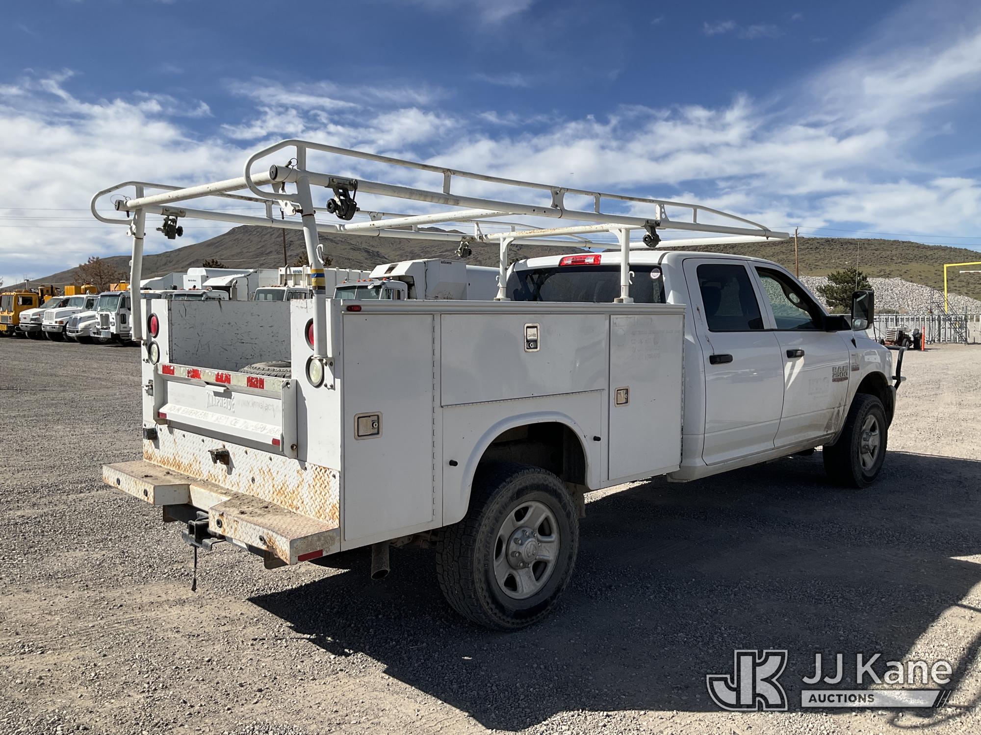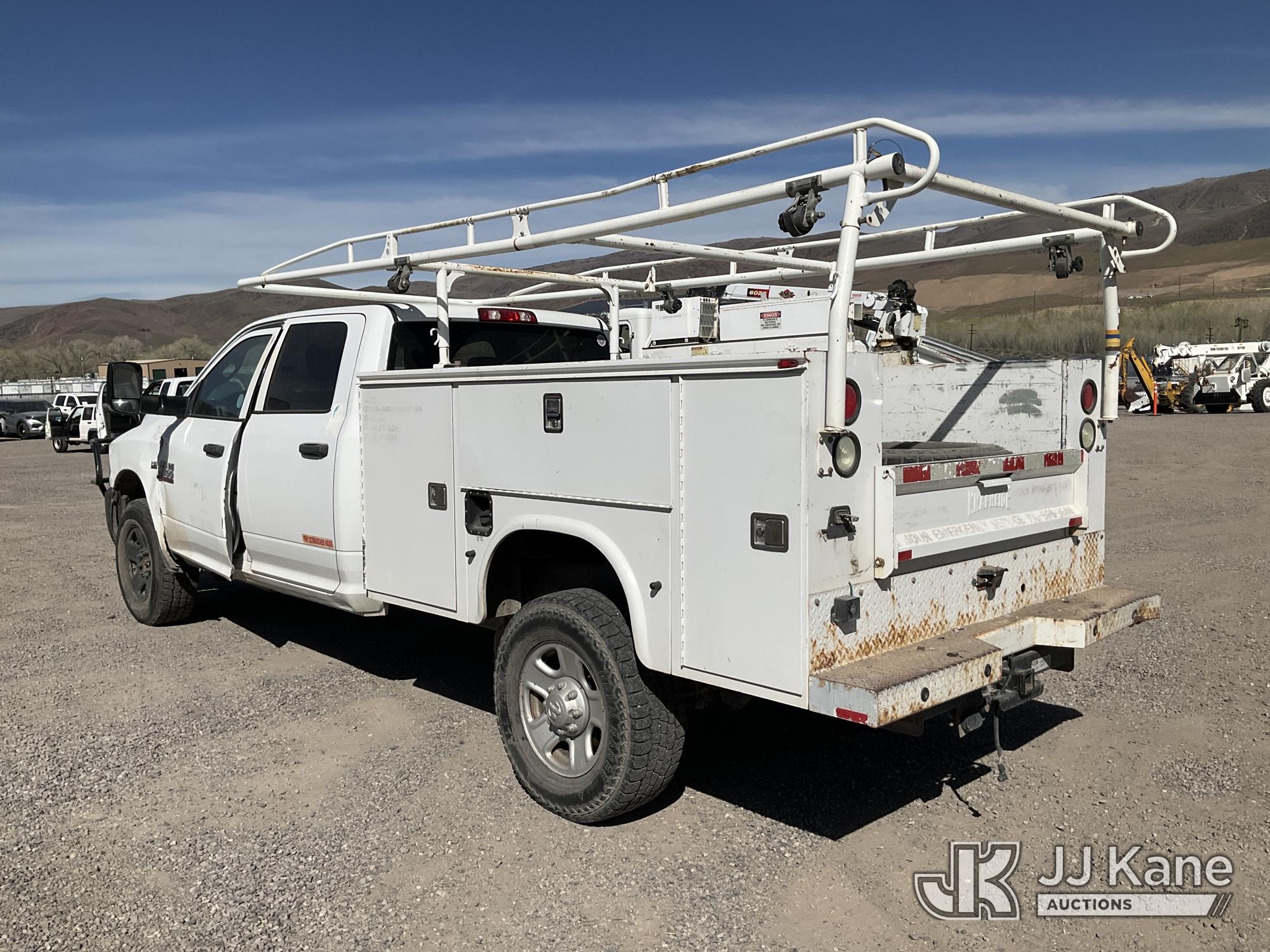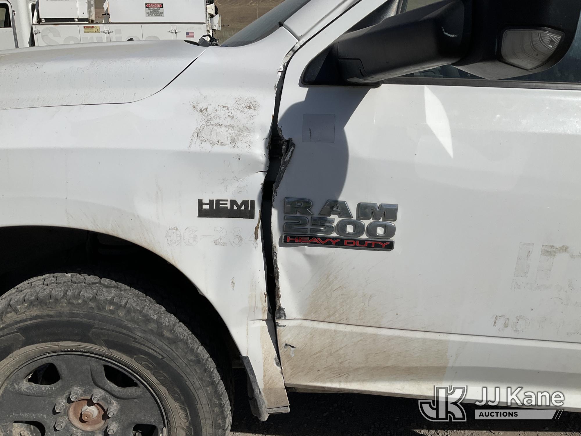2014 RAM 2500 Crew-Cab Service Truck, 8-cyl gas, 4WD, 6-Speed Automatic, A/C, with Heavy Duty Front Bumper w/ Grill Guard, (192,651 miles (unverified)) (Runs & Moves) (Missing Some Interior Trim, Drivers Door & Fender Damage, Engine Light On) This is a Titled Item*