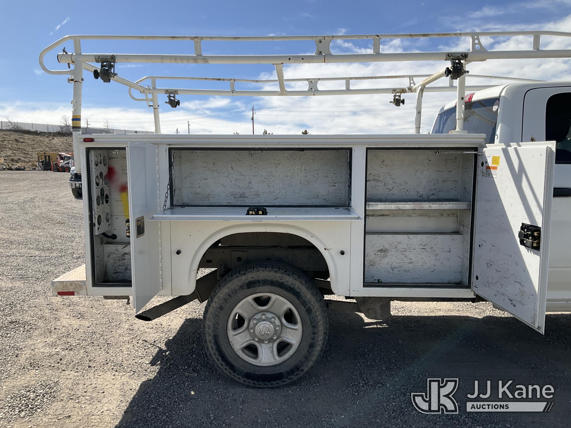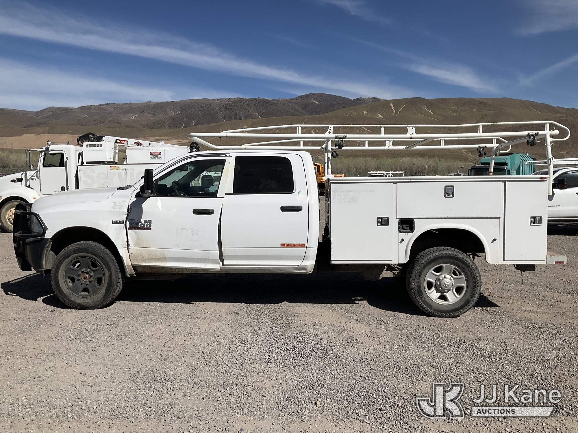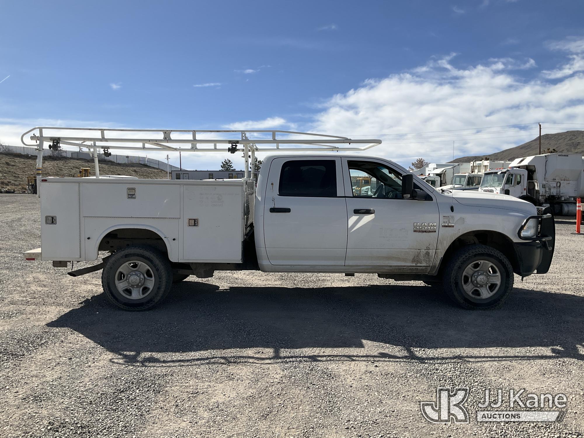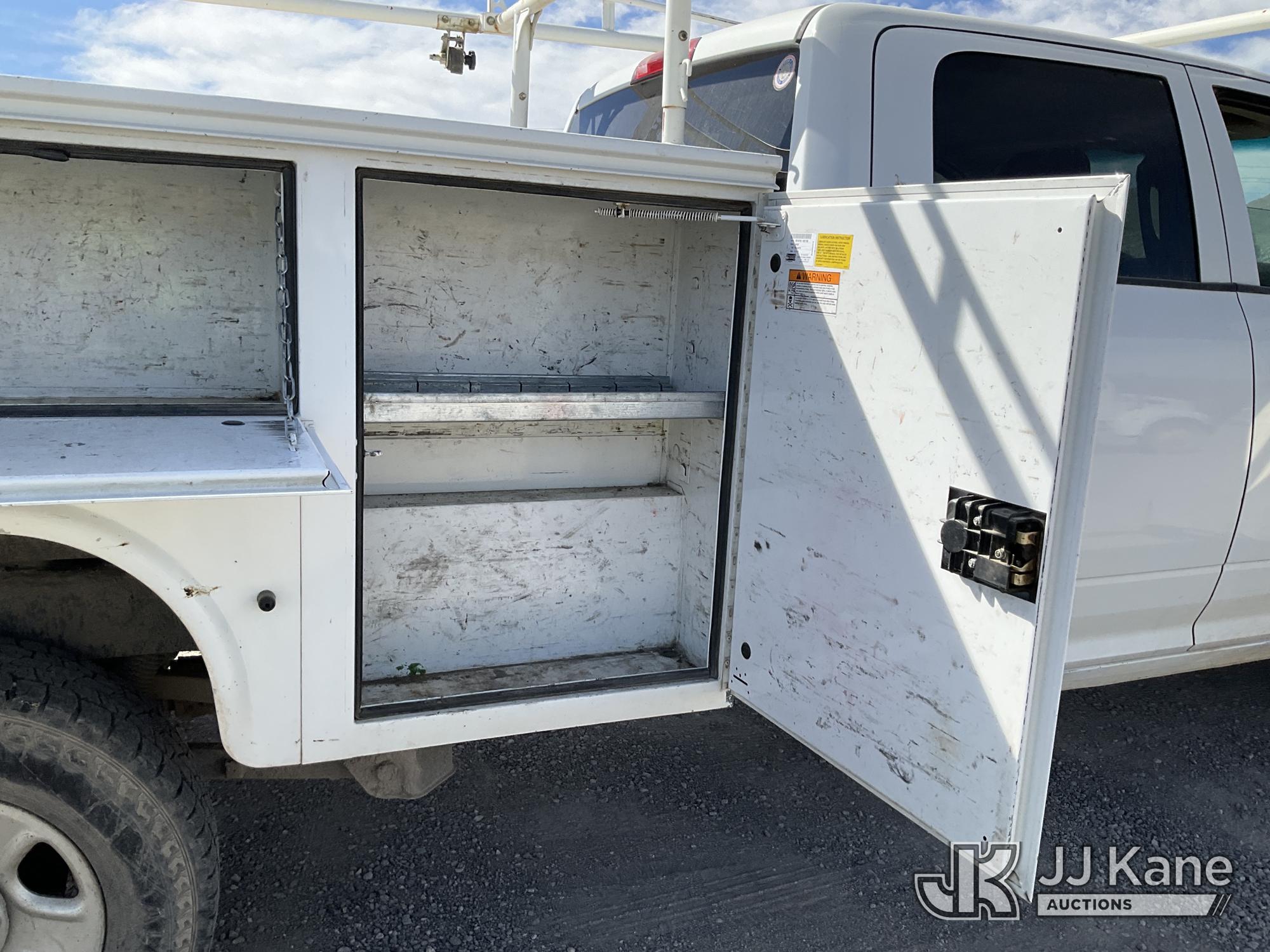 2014 RAM 2500 Crew-Cab Service Truck, 8-cyl gas, 4WD, 6-Speed Automatic, A/C, with Heavy Duty Front Bumper w/ Grill Guard, (192,651 miles (unverified)) (Runs & Moves) (Missing Some Interior Trim, Drivers Door & Fender Damage, Engine Light On) This is a Titled Item*