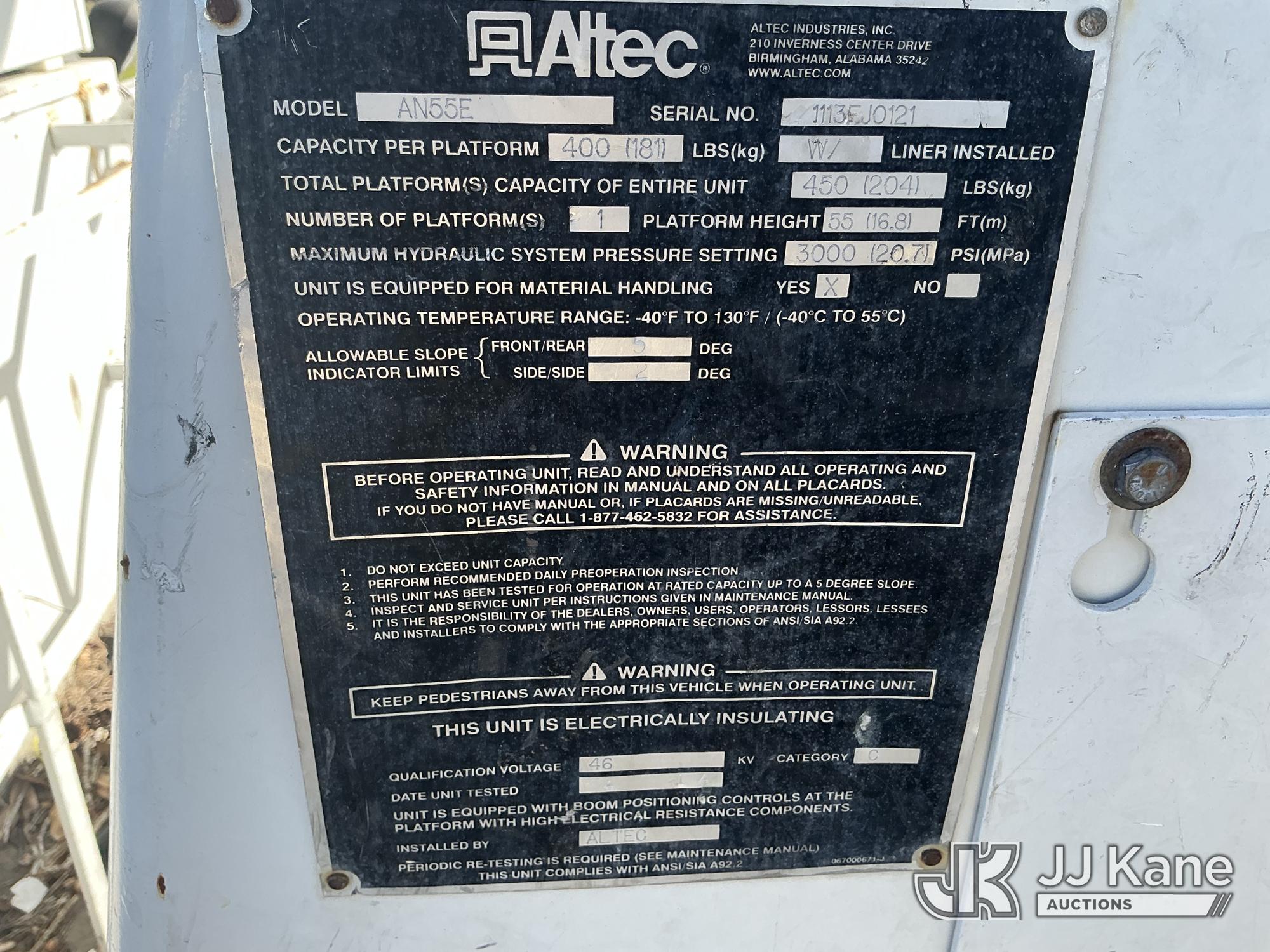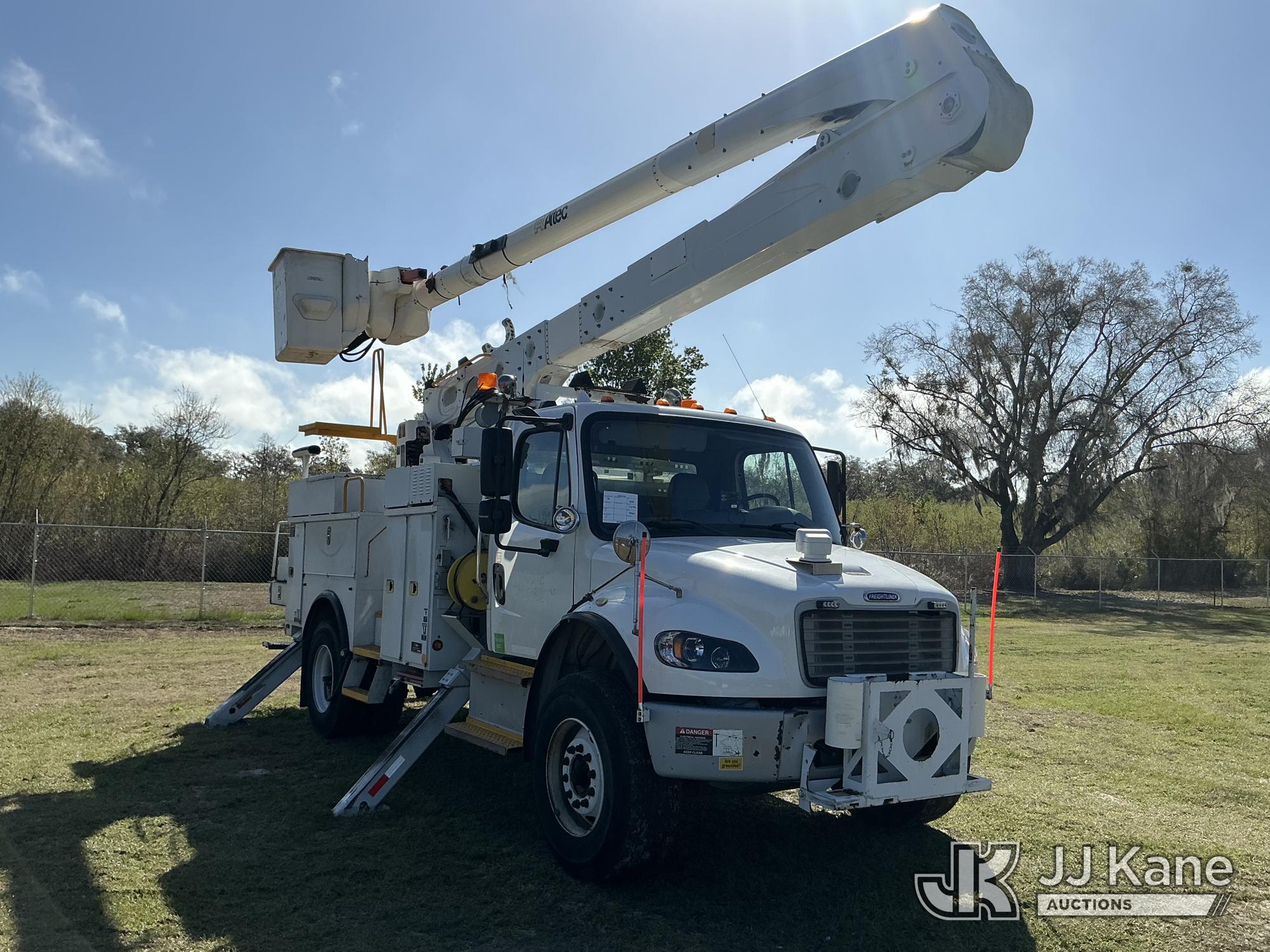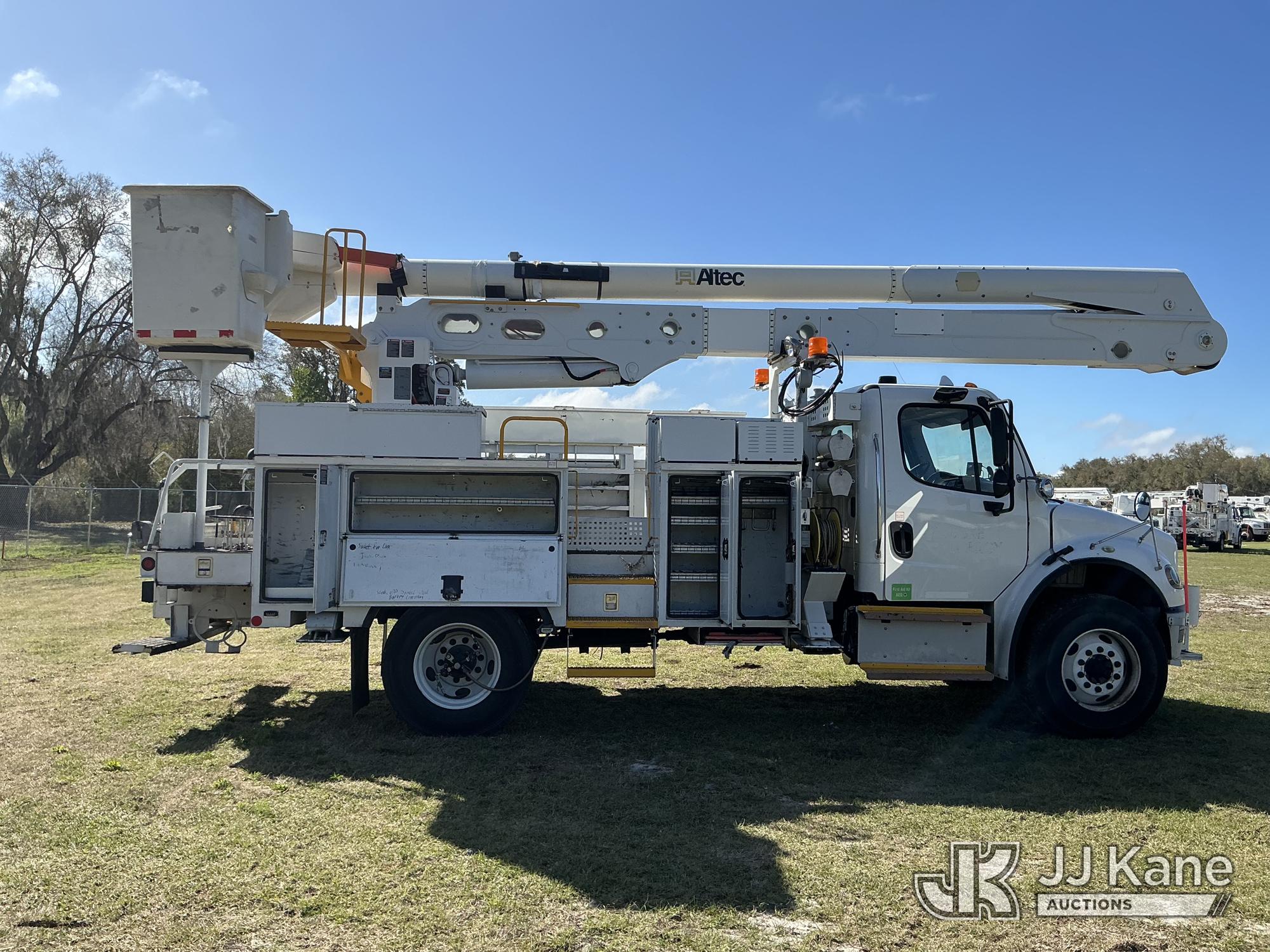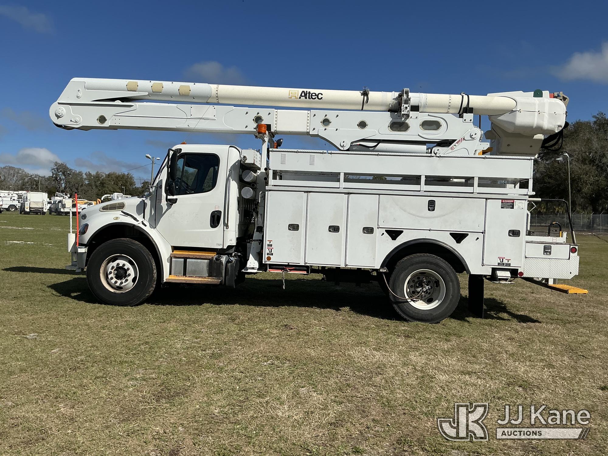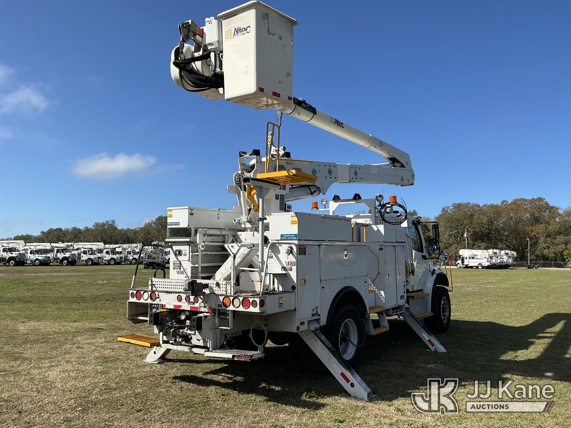 Altec AN55E, 60 ft, Material Handling Bucket Truck s/n 1113FJ0121, with Single-Man Bucket, 4 Hydraulic Outriggers, rear mounted on 2014 Freightliner M2 106 Utility Truck, Cummins ISB Diesel Auto, A/C, (63,440 miles) Duke ACS (Runs, Moves & Upper Operates ) (Reads 6,501 hours) This is a Titled Item*